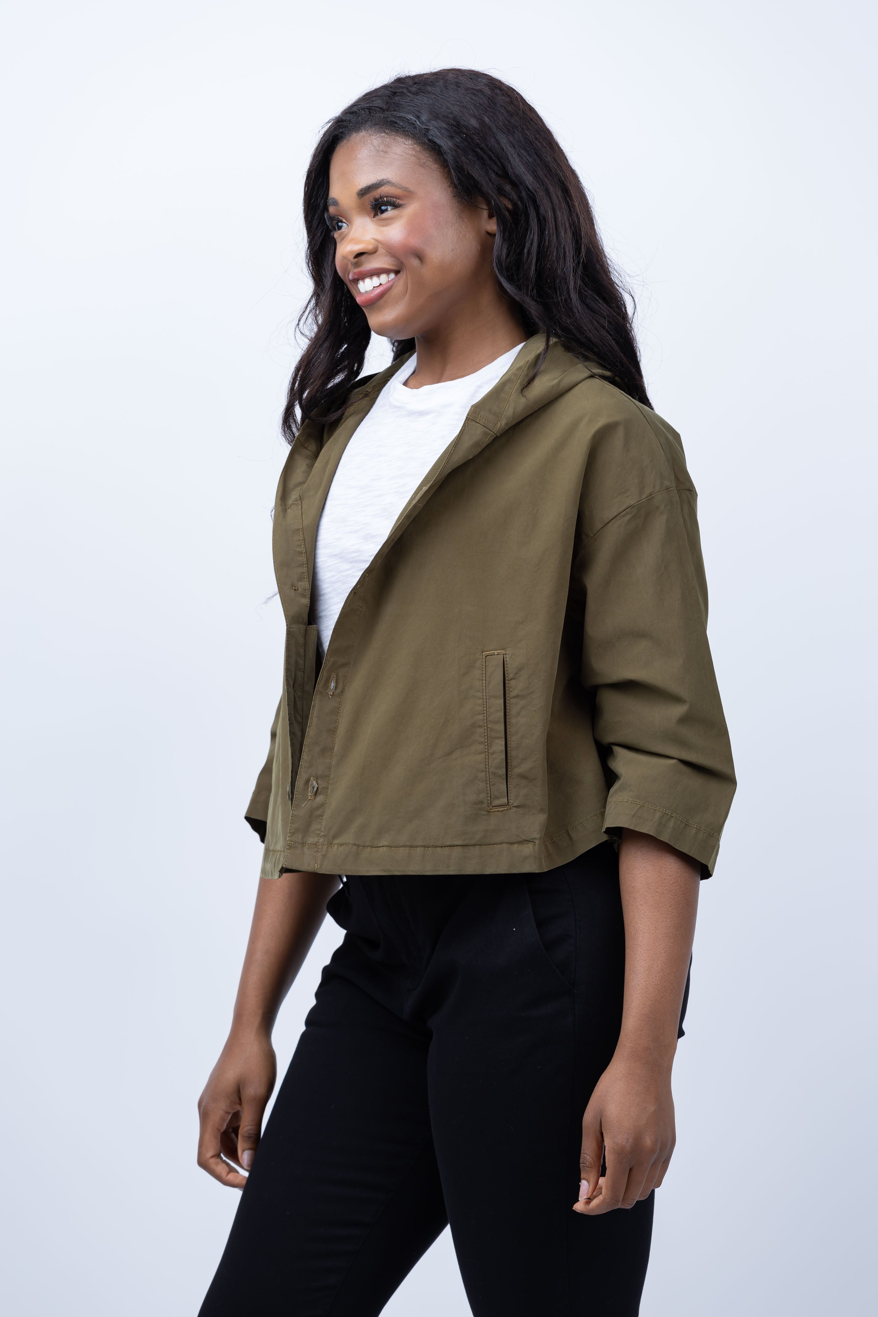 Introducing the L'AGENCE Devi Hooded Swing Coat, a chic update to the traditional hooded jacket. With strategic back pleating and three-quarter sleeves, this cropped jacket creates a figure-balancing swing silhouette. Perfect for travel, it features slant welt pockets and a front button closure. Effortlessly stylish and practical!
