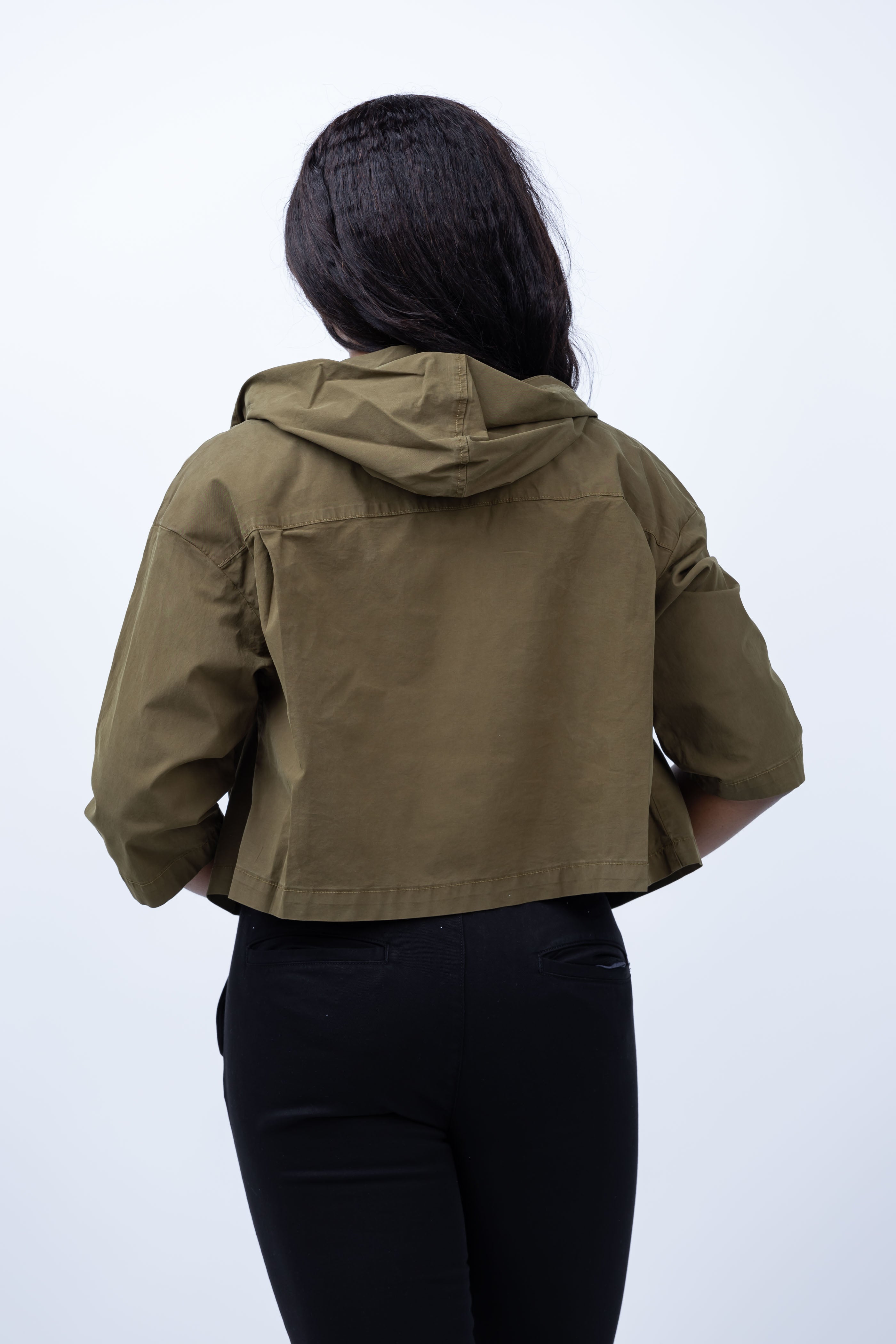 L'AGENCE Devi Hooded Swing Coat in British Khaki