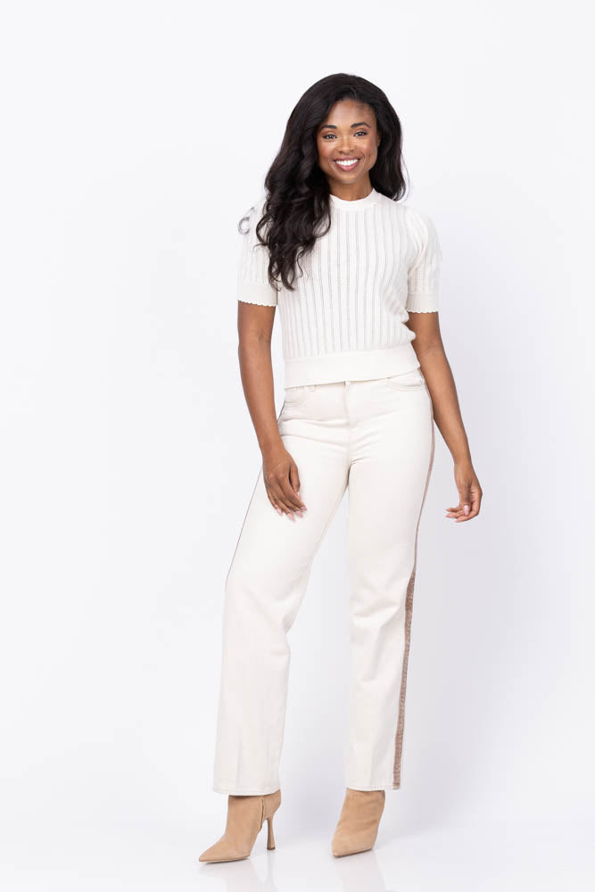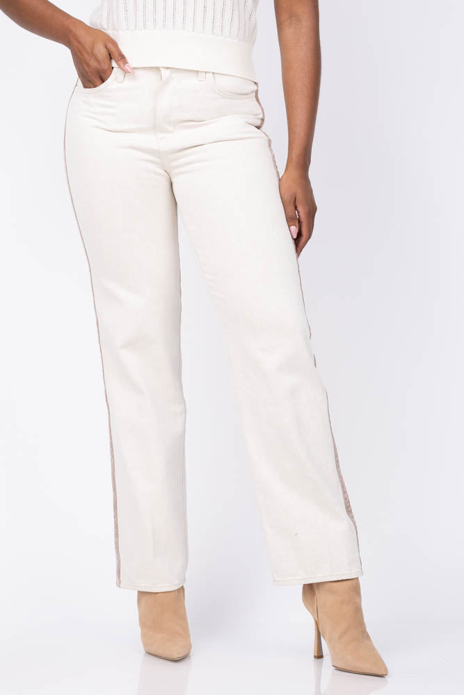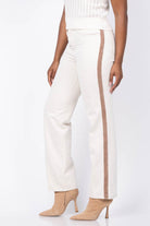 These L'Agence Jones Ultra High Rise Stovepipe Jeans combine timeless style with modern versatility. Featuring a flattering stovepipe fit, they offer a sleek silhouette that complements any look. The neutral desert tan shade is enhanced by a distinctive tan side stripe, adding subtle detail without overpowering your outfit. Perfect for dressing up or down, these jeans provide both comfort and effortless sophistication for your wardrobe.
