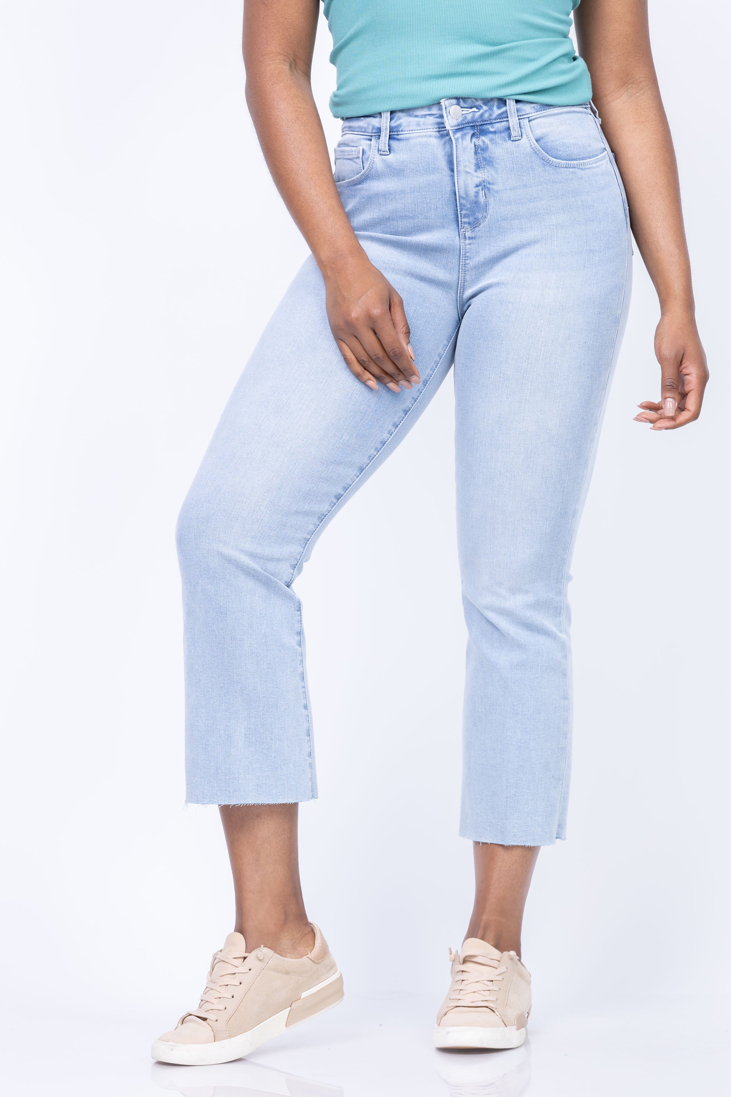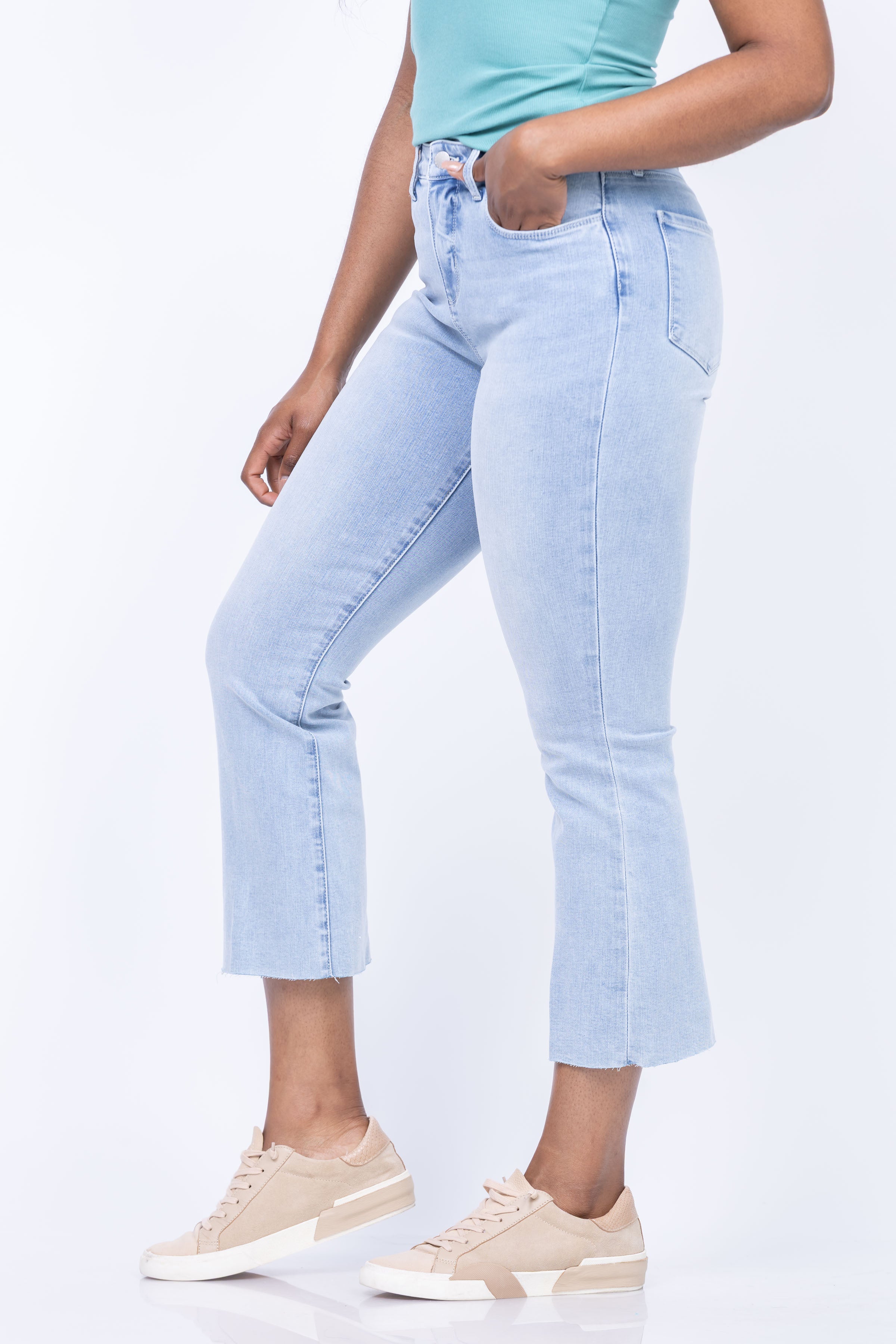 Elevate your style with the L'Agence Kendra Jean! Made with sustainable fibers, this high rise cropped-flare is perfect for petites and features a trendy light wash. 5-pocket construction, raw hem, zip fly and button closure add convenience and style. Get ready to rock an effortlessly chic look!