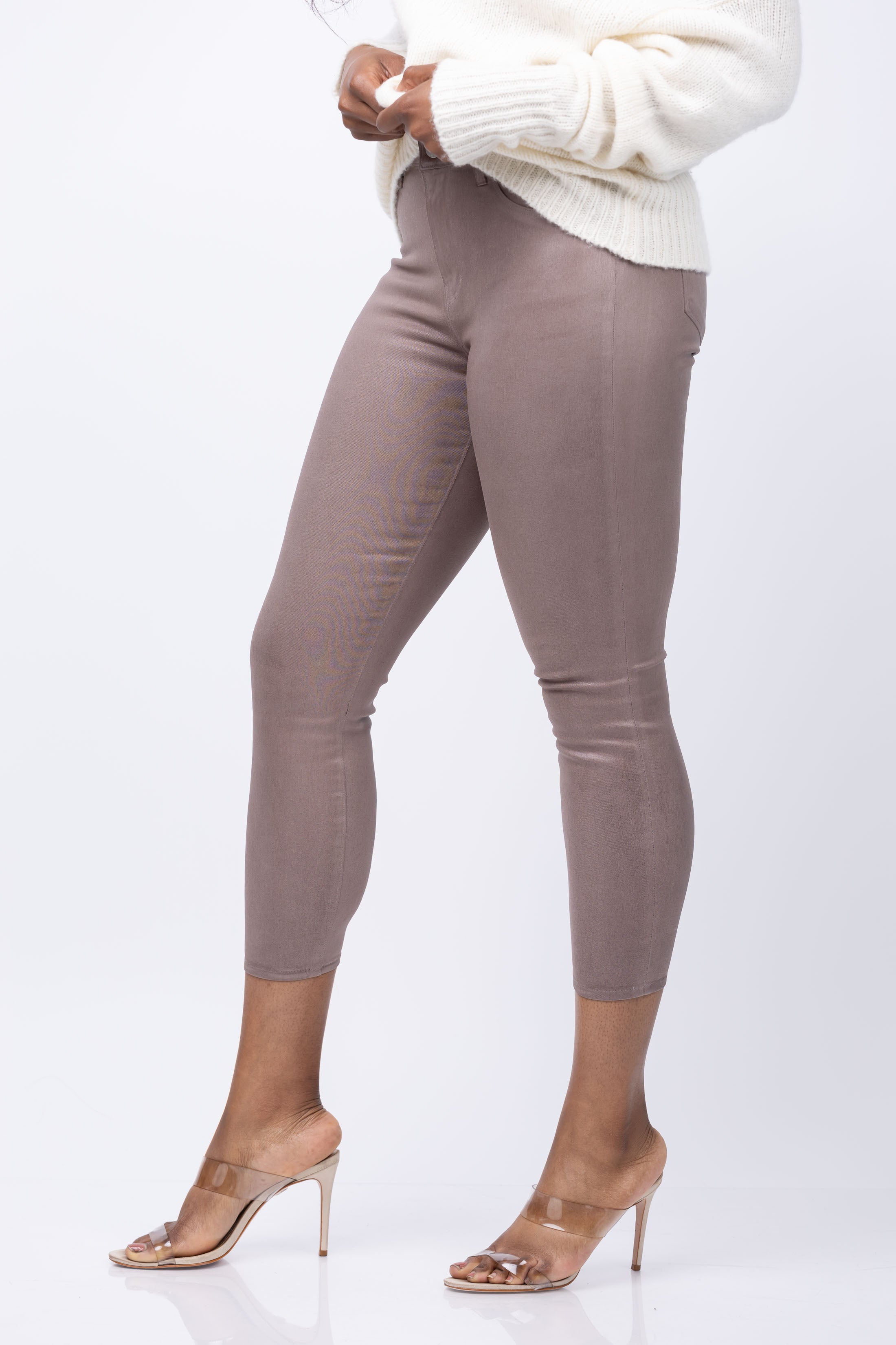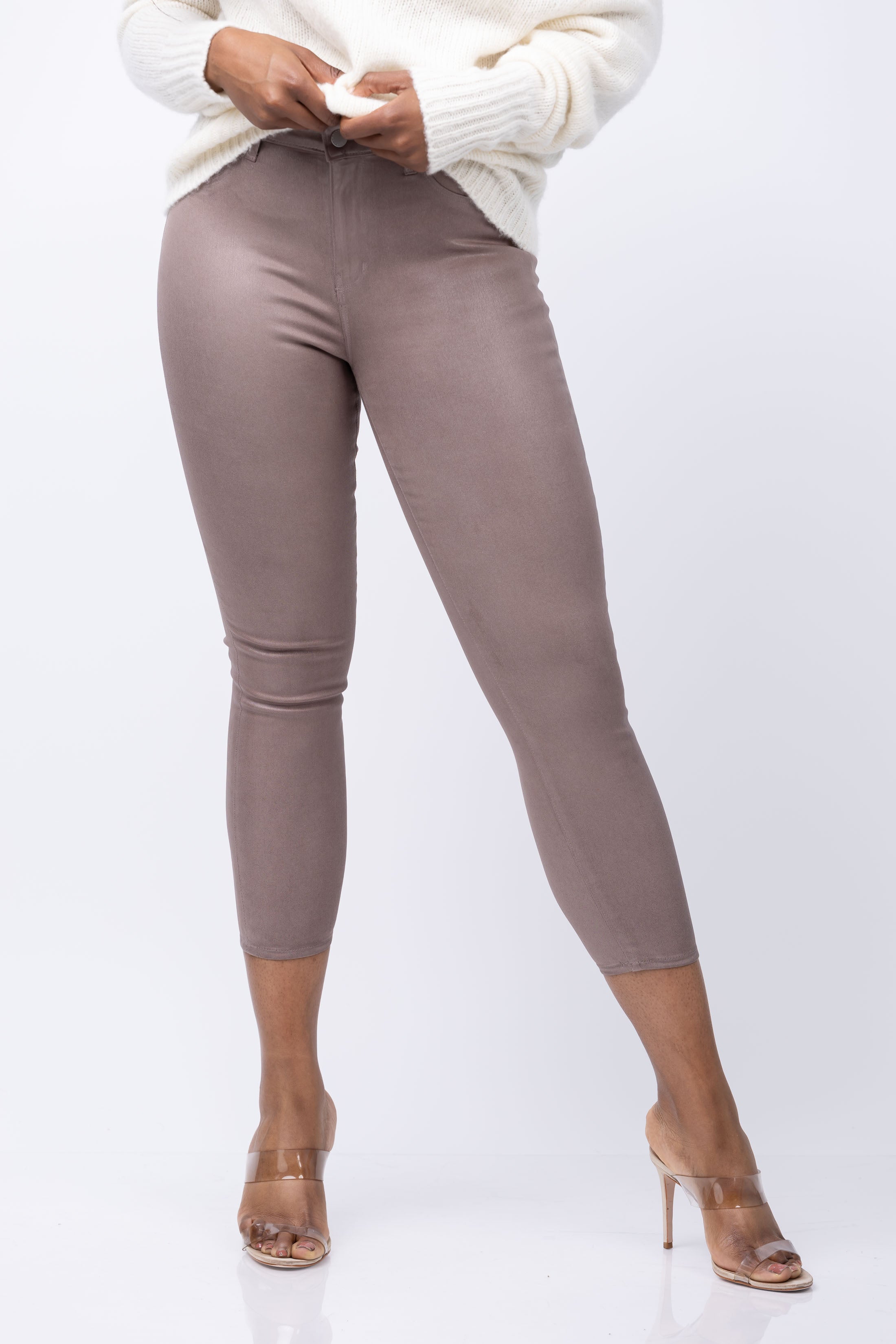 L'AGENCE Margot Coated Skinny Jean in Deep Taupe Coated