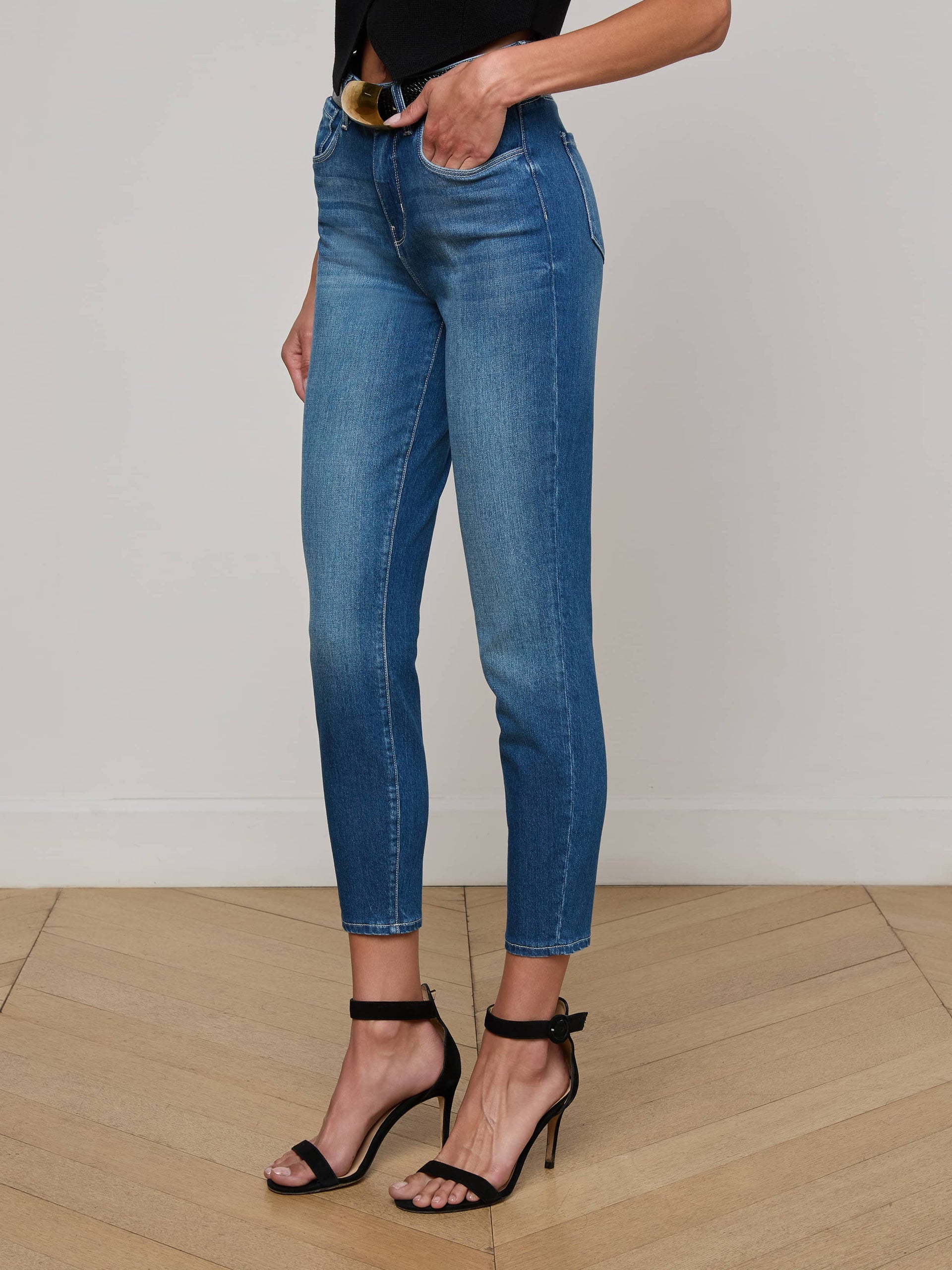 The L'Agence Margot High Rise Skinny Jean in Baja redefines comfort and style with its soft stretch denim that moves with you all day. Featuring a high-rise contoured waistband, these jeans offer a flattering fit that stays secure without gaping. The classic 5-pocket design and zip fly with button closure deliver timeless style, while the aged medium wash adds a versatile, worn-in look. Perfect for any occasion, these skinny jeans will quickly become a wardrobe staple.