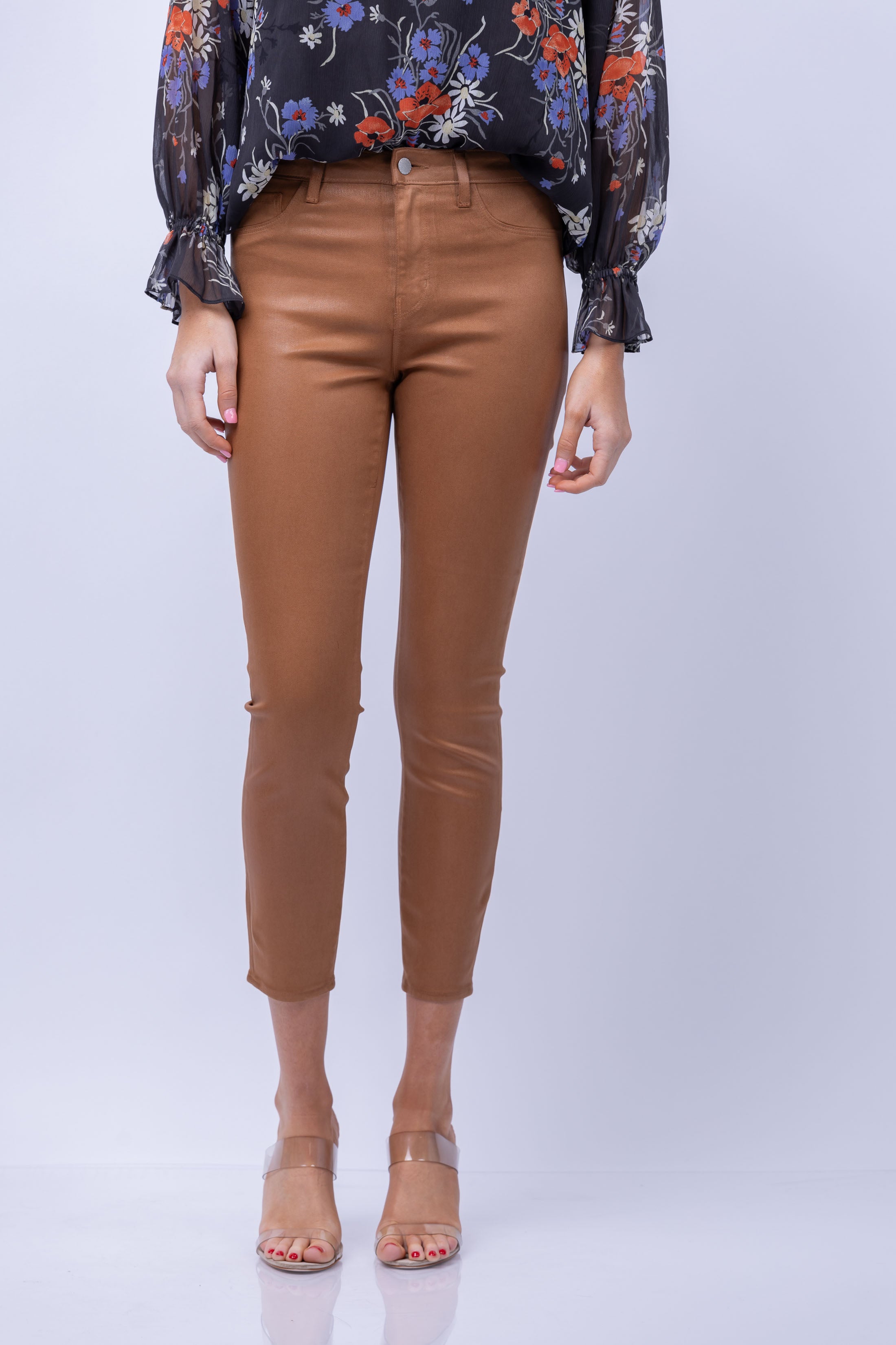 The beloved Margot with a subtle, yet stunning sheen in a warm tan color. The tapered leg hugs from hip to ankle, while the contoured waistband defines and slims the natural waist. A lightweight, light-catching coating is added to our premium stretch denim for an element of statement-making sophistication.