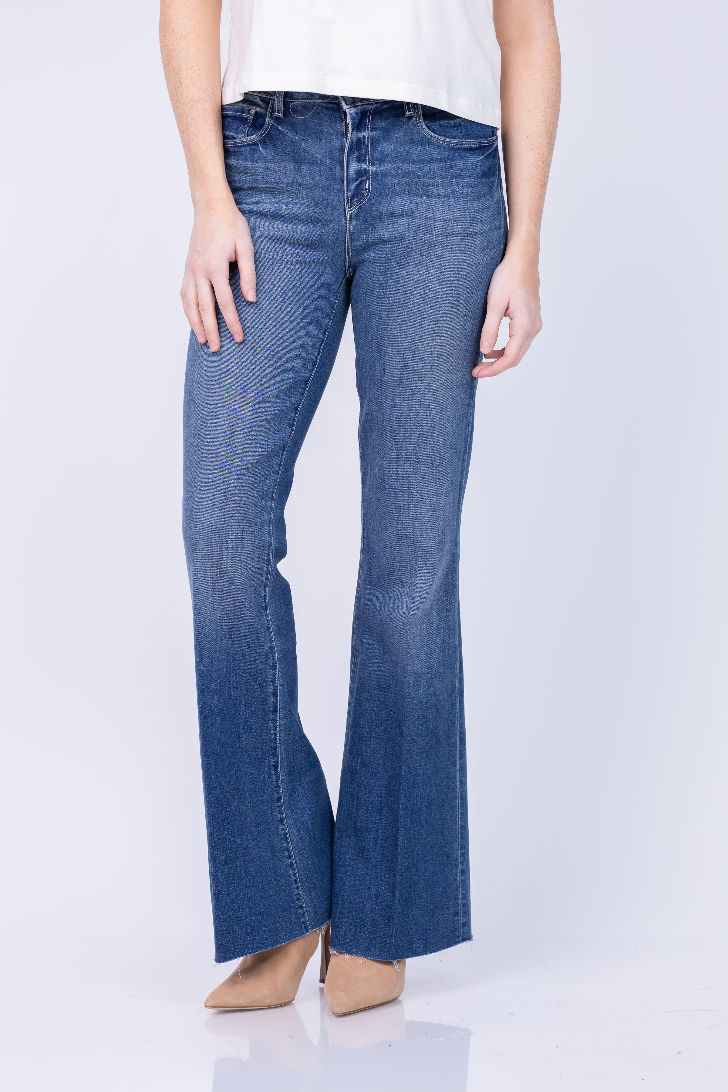 Elevate your style with L'Agence's Sera High Rise Sneaker Flare! Made with premium stretch denim, this high-rise flare-leg jean offers a comfortable and flattering fit. The 5-pocket design and raw hem add a touch of modernity to this classic silhouette. Perfect for everyday wear, this versatile piece is a must-have in every fashion lover's wardrobe!