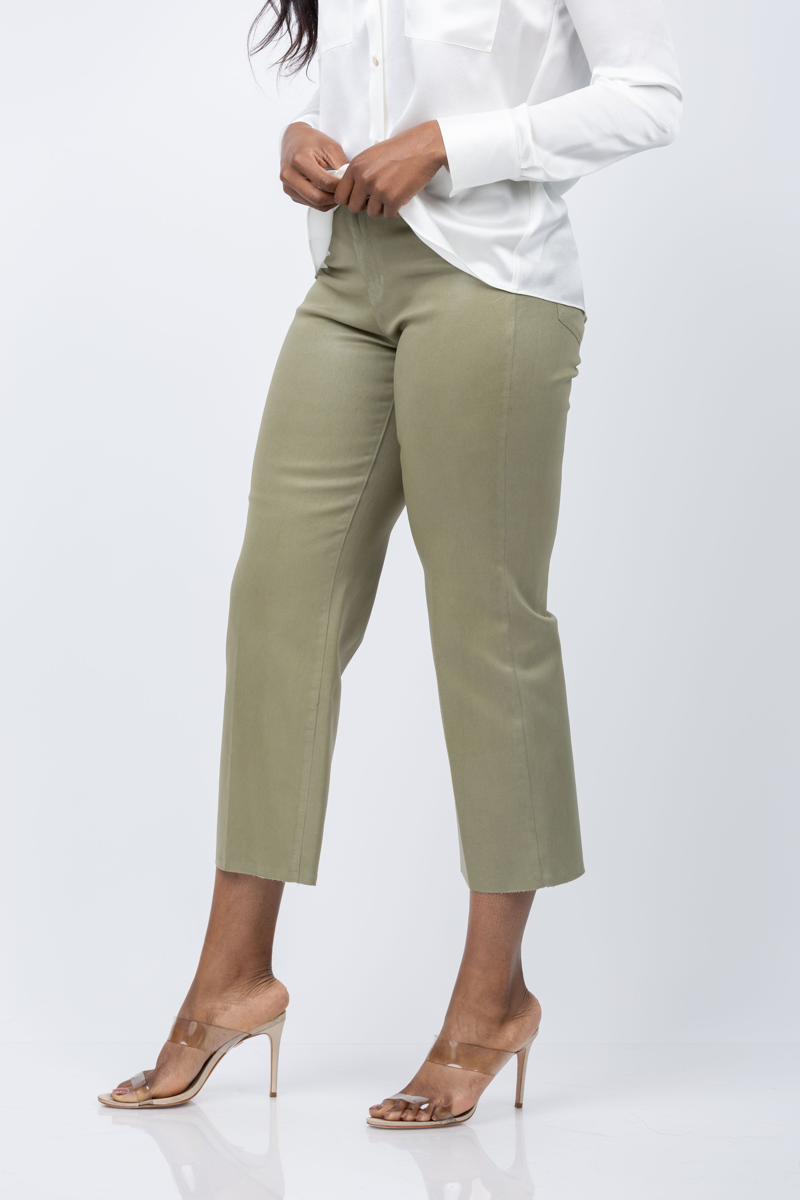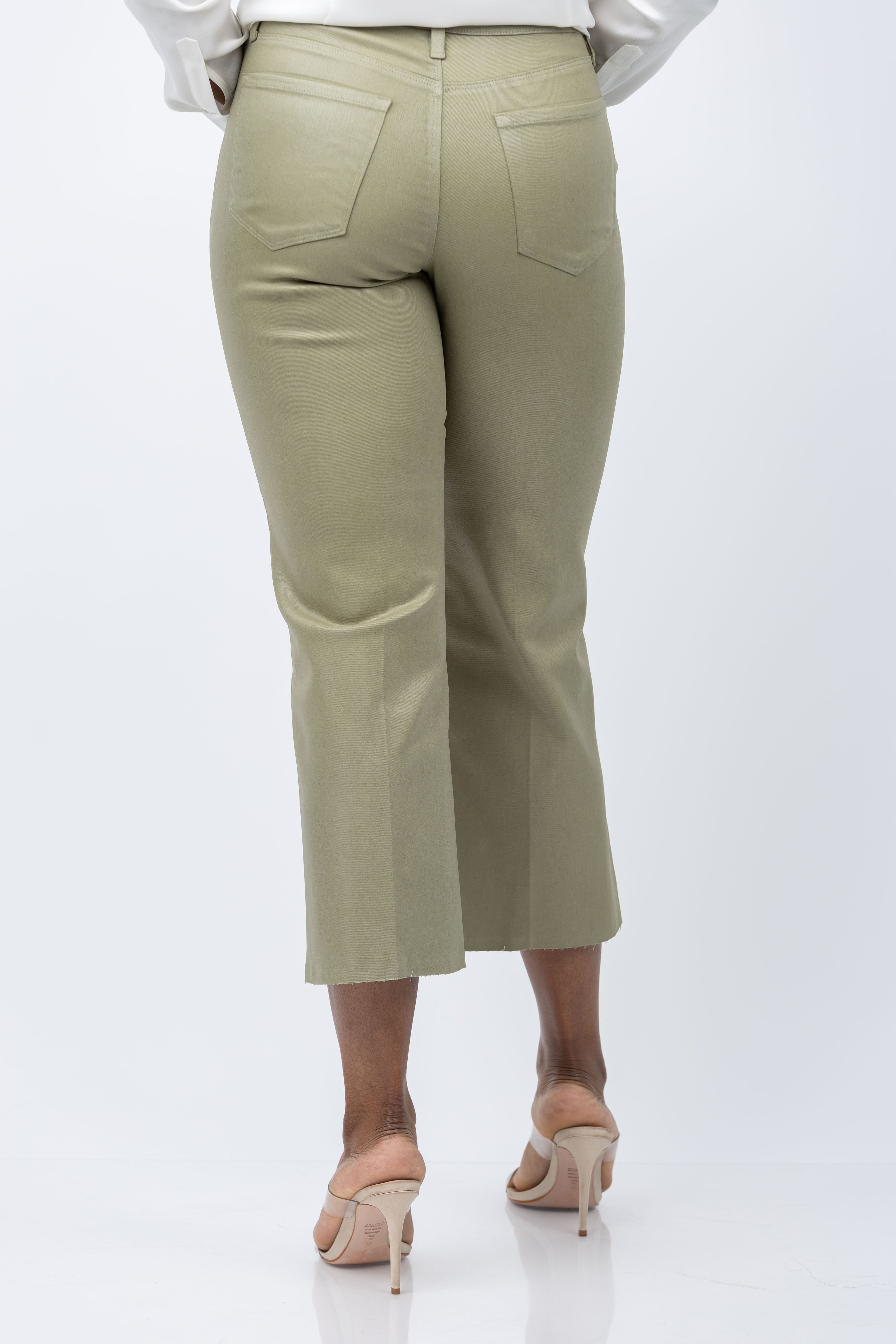 L'AGENCE Wanda High Rise Crop Wide-Leg Jean in Oil Green Coated