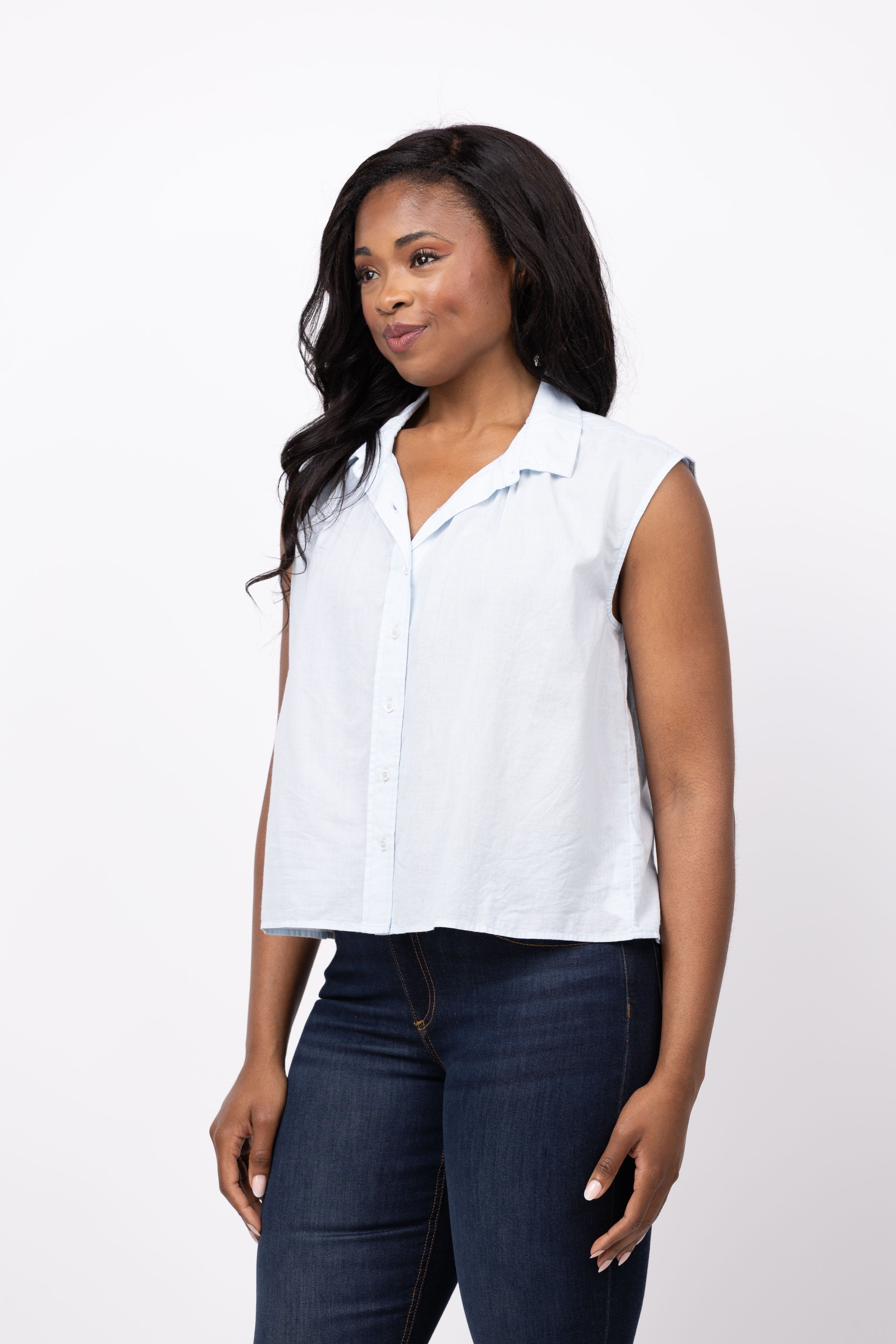 Elevate your summer style with the Lilla P Short Sleeve Button Down in Bluewash. Made from lightweight Cotton Summer Voile, this breezy essential features extended shoulders, a small feminine collar, and delicate shirring for a relaxed yet chic look. The semi-sheer fabric adds a sun-washed effect to the vibrant colors, perfect for your warm weather wardrobe. Pair it with our Air Textured Cotton bottoms for a tonal look or mix and match for endless styling possibilities.