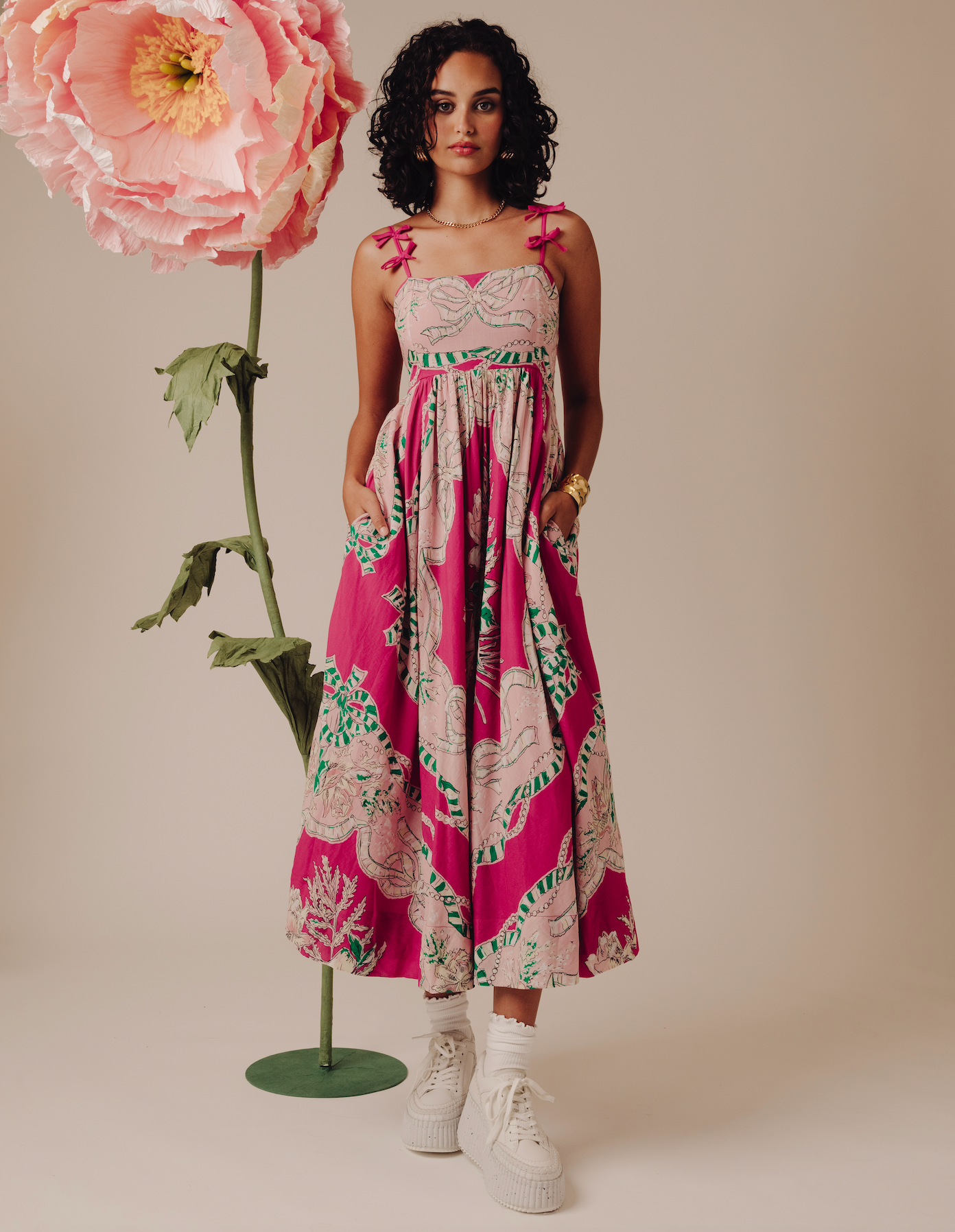 Indulge in the romantic elegance and charm of the Love The Label Ryah Dress. The delicate bow-inspired floral print adds a whimsical touch to the soft, flowing fabric, creating a flattering hourglass silhouette. Perfect for garden parties or romantic evenings, this dress effortlessly exudes sophistication and beauty.