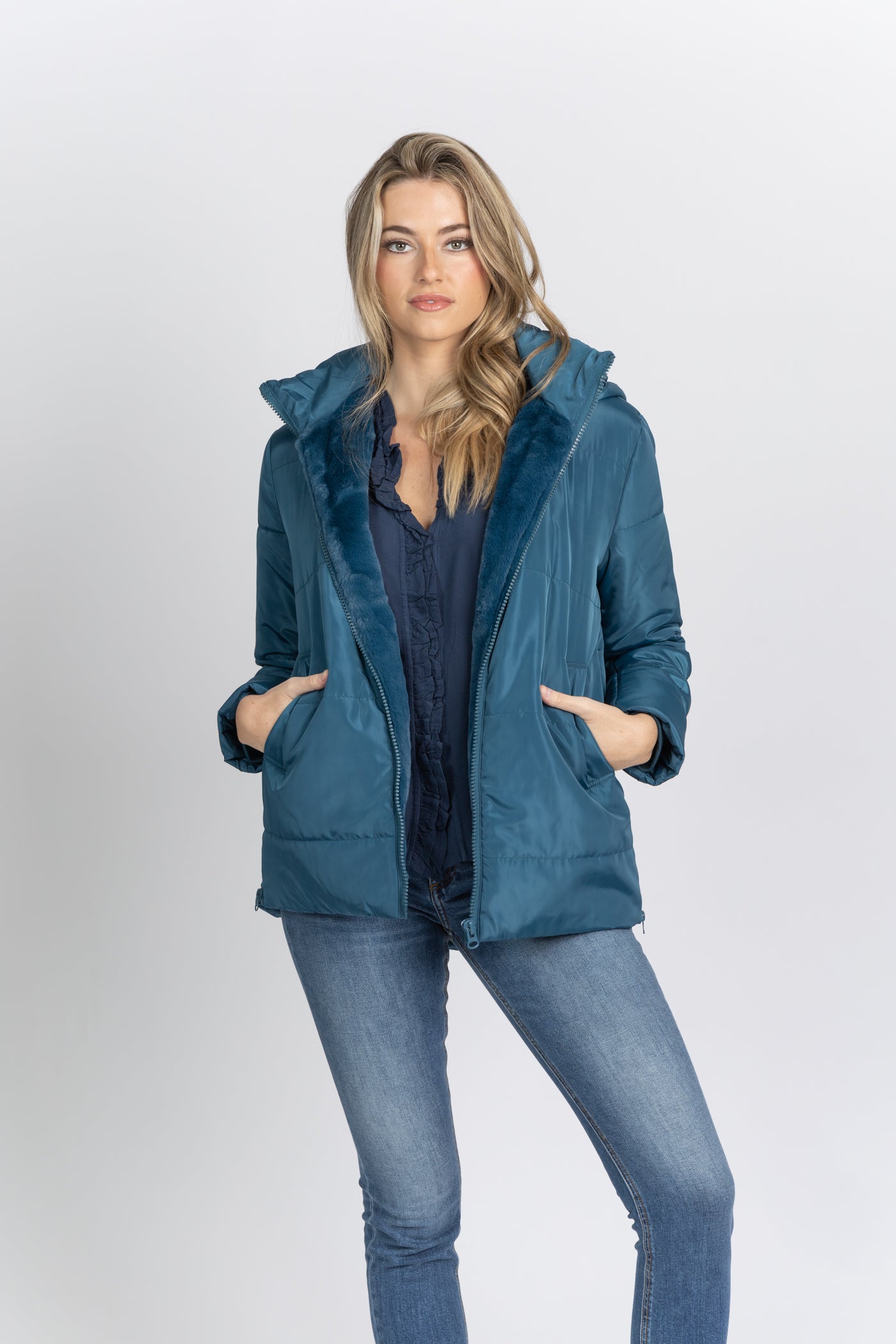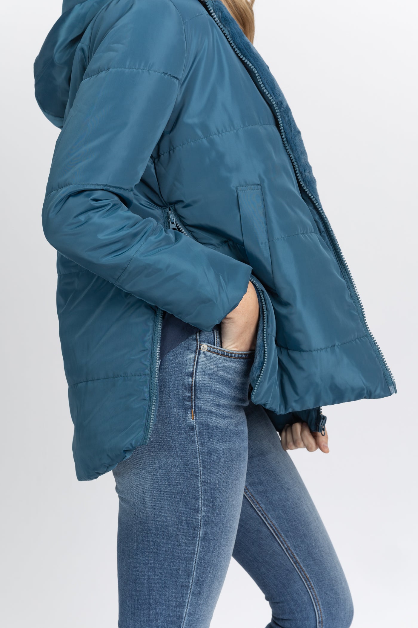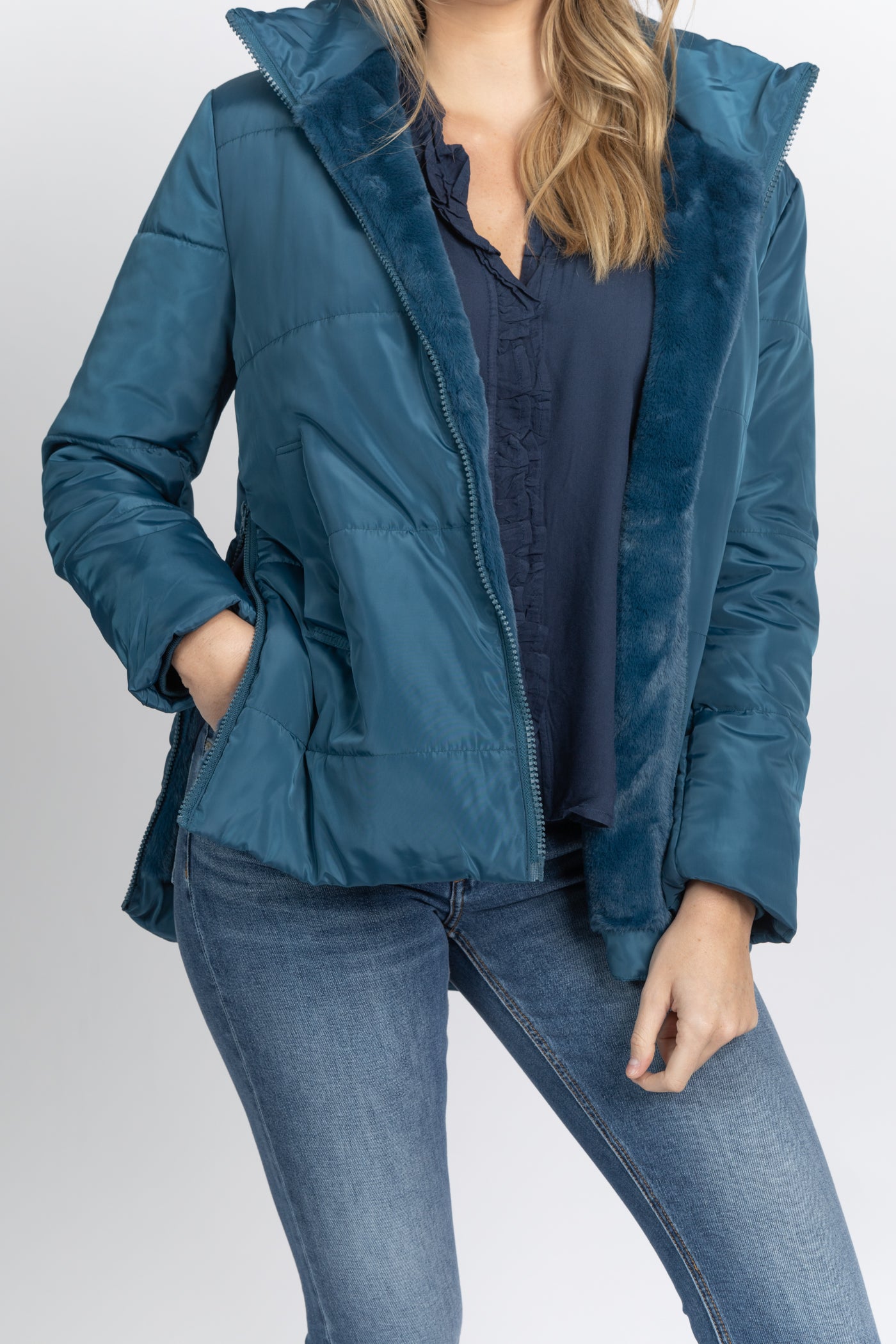 The great look! Your favorite windbreaker with a cozy faux fur interior. Hooded with 2 working slit pockets, side slits that can be zippered shut and full zip front.