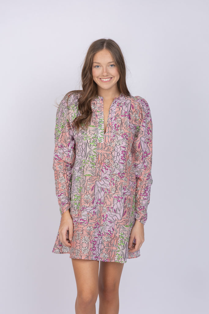 Brighten up your next getaway with the Maria Cher Zapala Lupe Short Dress, featuring a beautiful pink and green pattern perfect for the beach or pool. The tie-back design flatters your figure and defines your waist for an unforgettable look. Step out in style and make a statement!