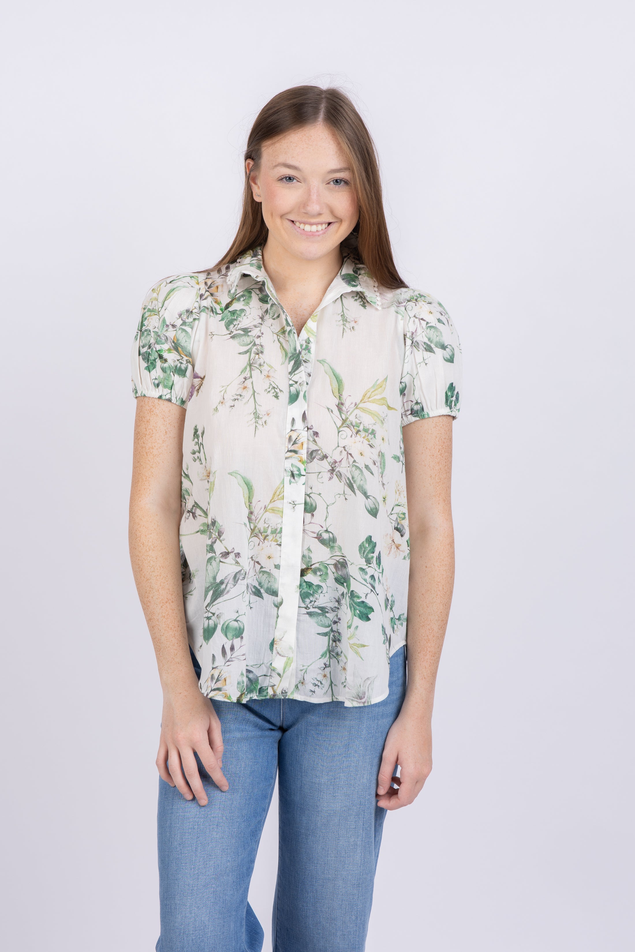 The Mechora Annabella Botanical Top is the perfect addition to your wardrobe! The playful, floral print is perfect to dress up jeans or a pair of dress pants. Stand out in this unique and fashionable top!