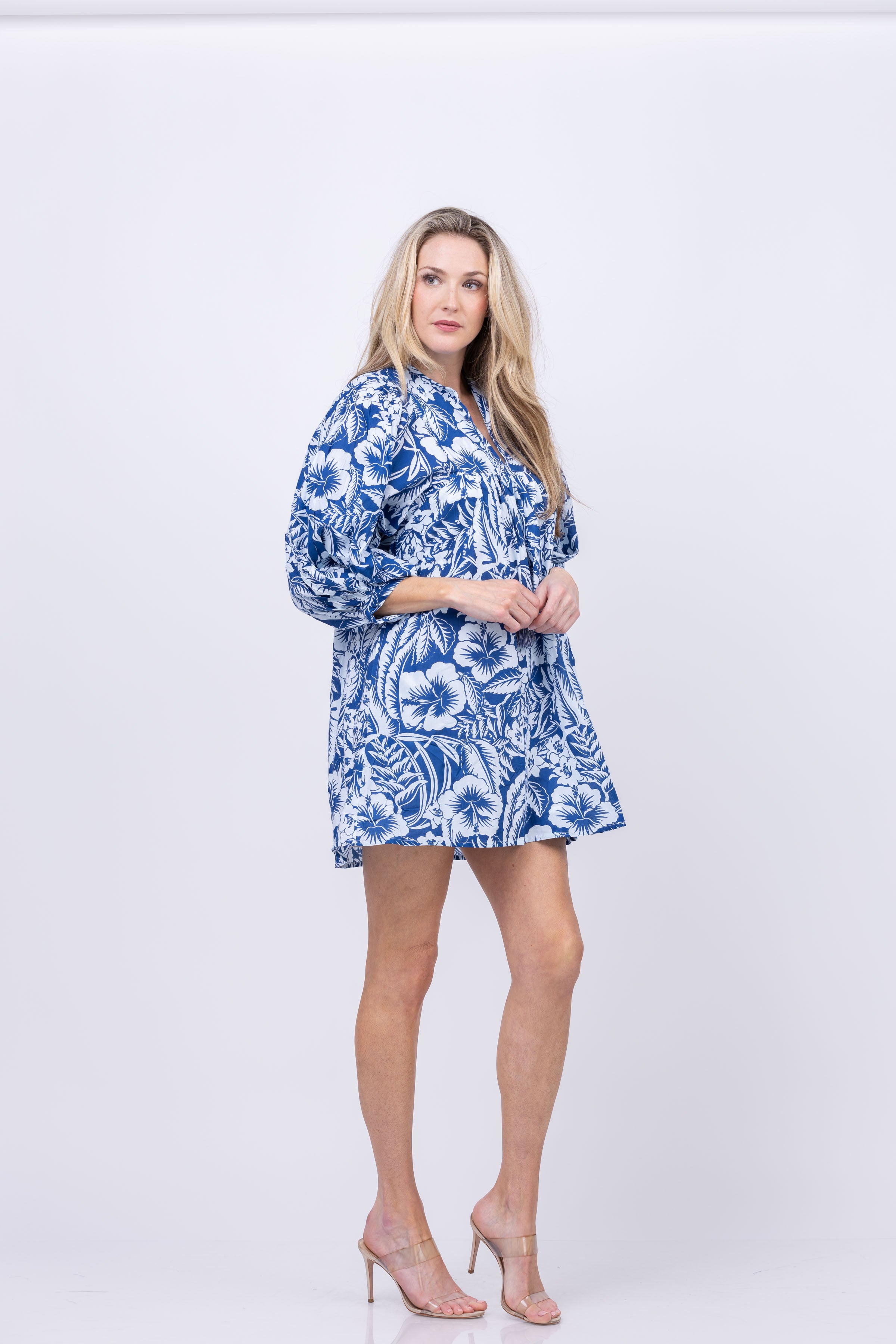 Twirl and dance in the Millie Daisy Dress's billowy sleeves and casual cotton fabric! This dress also features front ties for added charm. Embrace the breeze of summer in the Blue Hibiscus print.