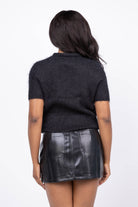 Discover the Milly Bow Fuzzy Sweater in Black, a cozy short-sleeve piece designed with a striking satin bow at the neckline. Perfect for elevating your desk-to-dinner look when paired with sleek trousers, or effortlessly chic with denim for weekend outings. This sweater blends comfort with a distinctive style that makes every outfit stand out.
