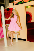Discover the perfect dress for any occasion with the Milly Draped Poplin Sleeveless Mini Dress in Pink. Designed for versatility, this mini dress features a high neckline, elastic waist, and self-tie detail for a flattering silhouette. With its pull-on design and functional button closure, you'll look and feel effortlessly stylish.