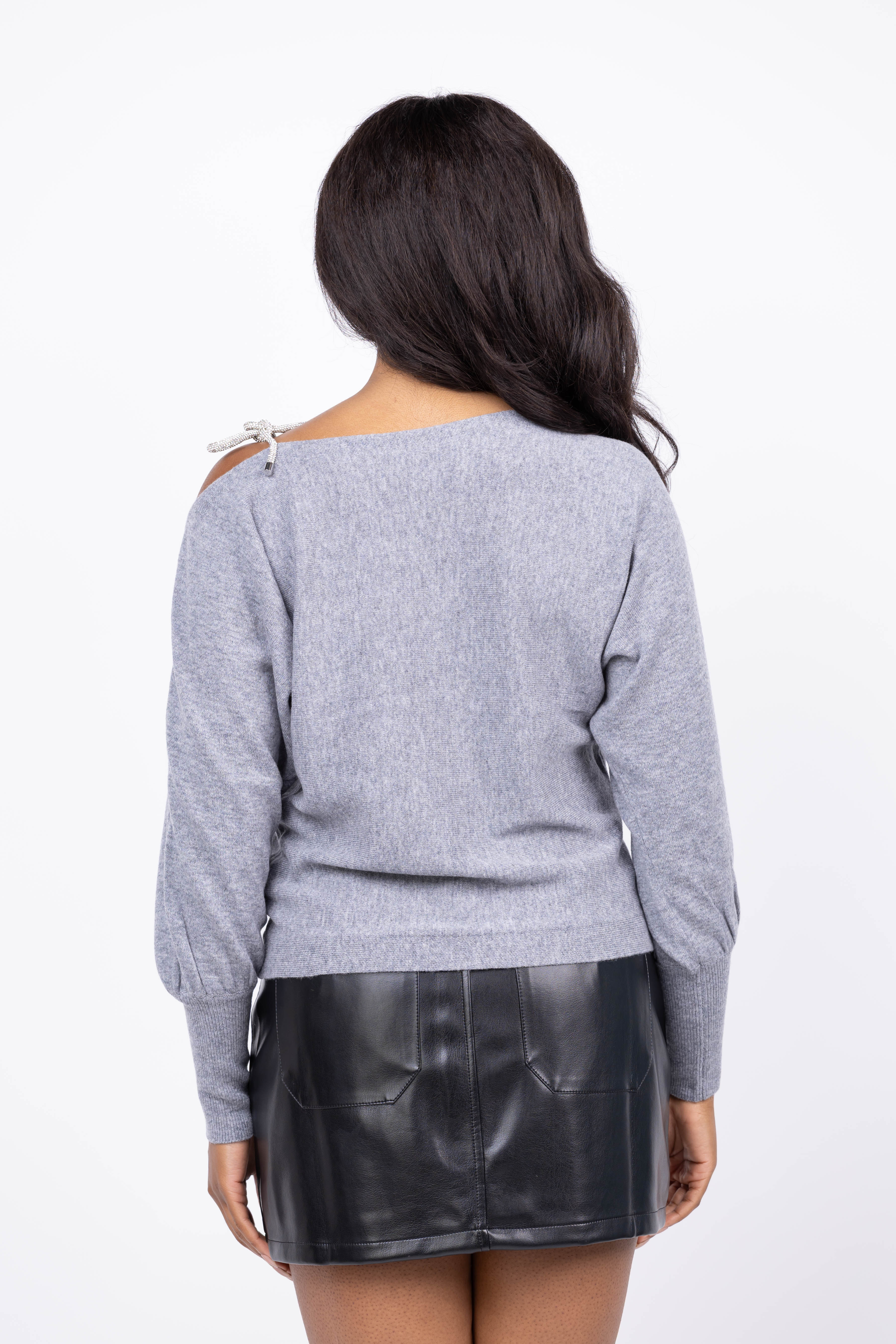 The Milly Ida Crystal Tie Sweater in Grey Heather redefines cozy elegance with its relaxed silhouette and softly voluminous sleeves. Finished with ribbed cuffs, this sweater adds a polished touch to any outfit. Transition seamlessly from professional settings with tailored trousers to casual weekends in denim, making it a versatile must-have for sophisticated, day-to-night style.