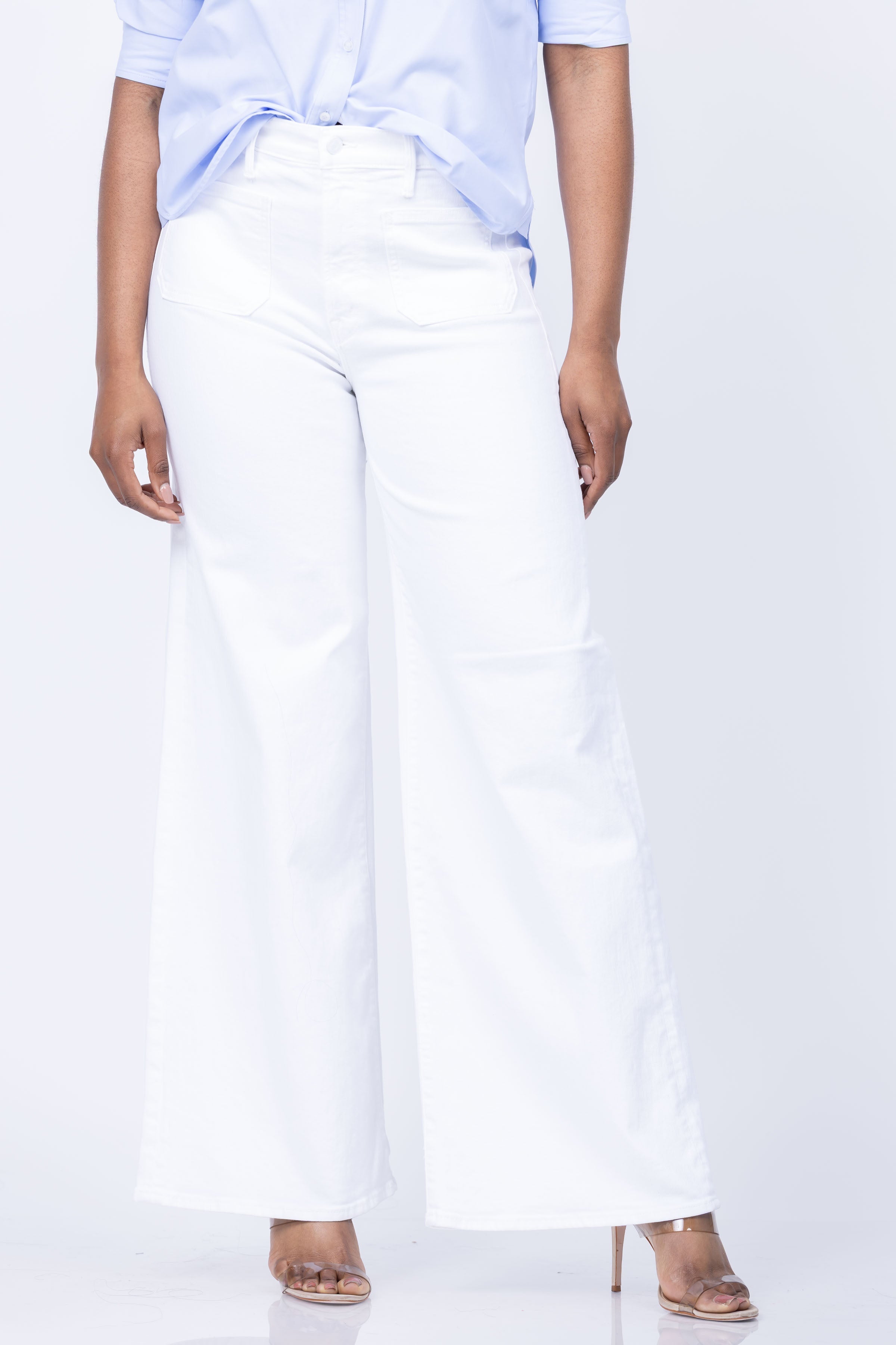 Behold the Mother Patch Pocket Undercover Sneak! With a mirror-like shine, these wide leg pants give a comfortable high rise and a 32-inch inseam, perfect for everyday wear. Plus, the stretch fabric and patch pockets make them our bestselling white denim, fit for any fairest of them all!