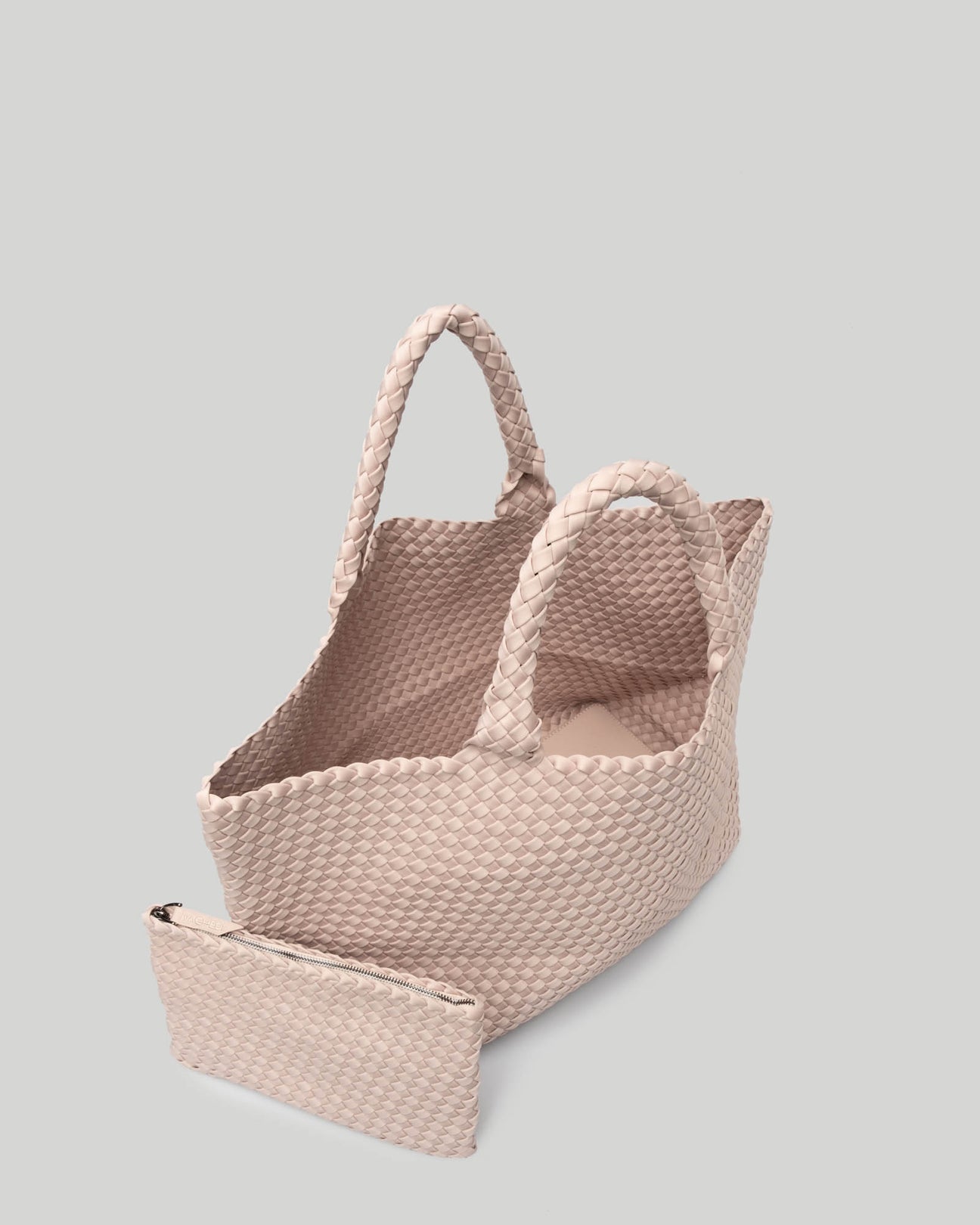 The Naghedi St. Barths Large Tote is the ideal accessory. Lightweight and spacious, you can fit all your essentials without weighing you down. Crafted from handwoven neoprene, this chic tote is sure to be a favorite!