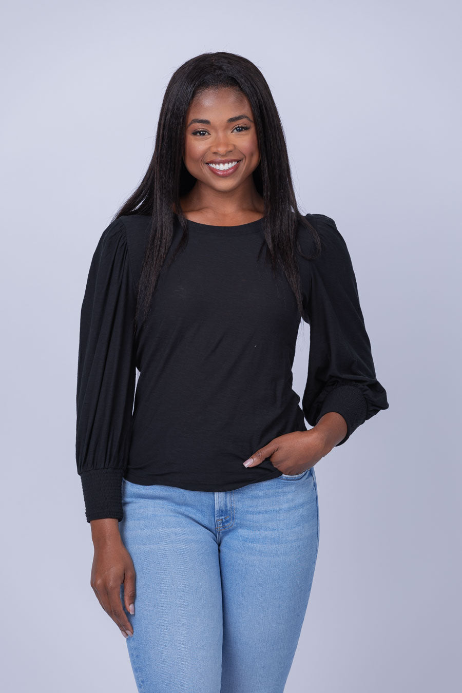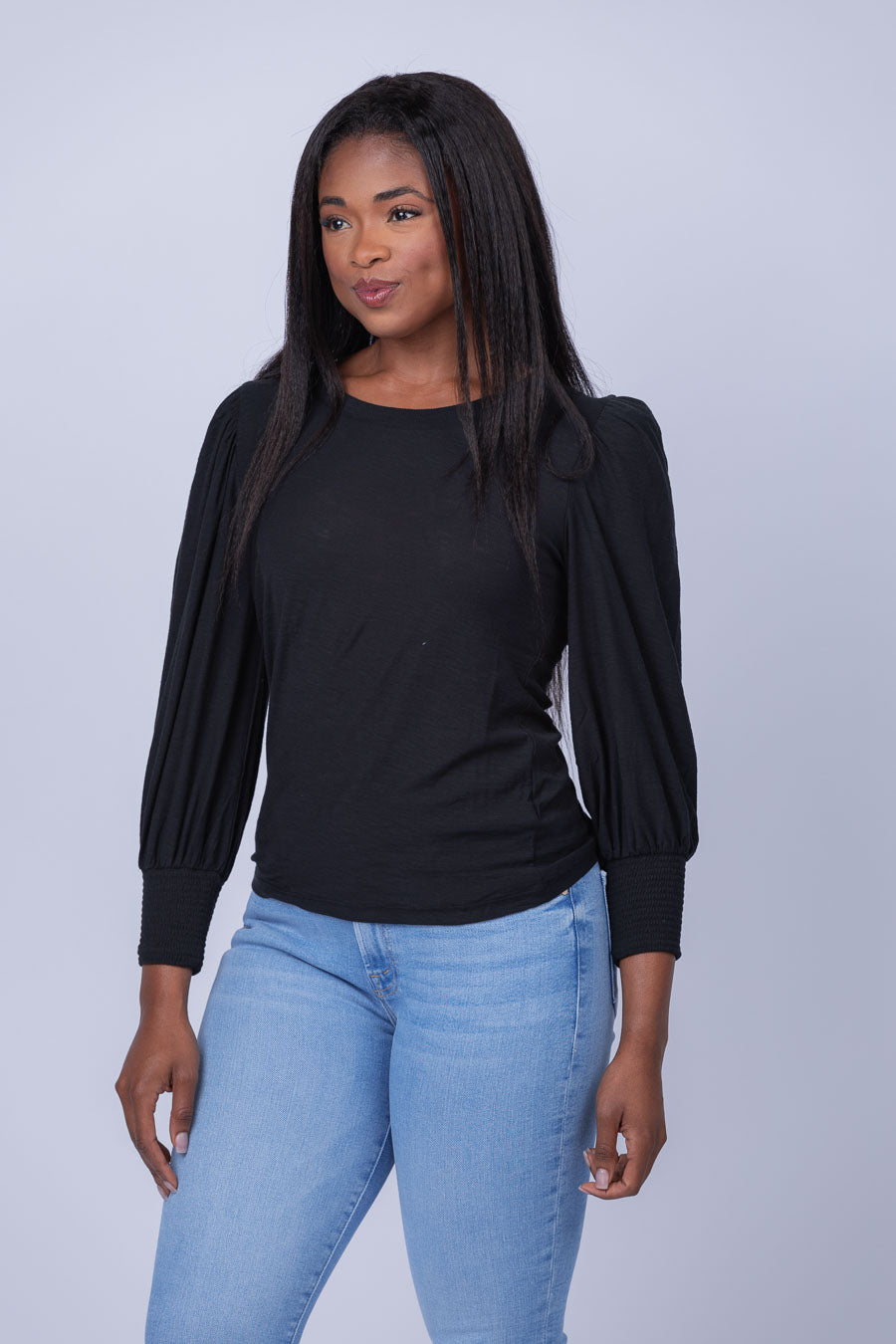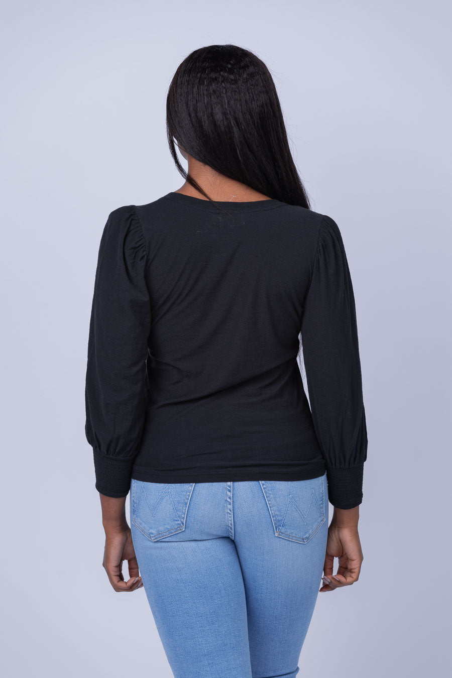 Nation Ltd Loren Smocked Peasant Top in Jet Black
