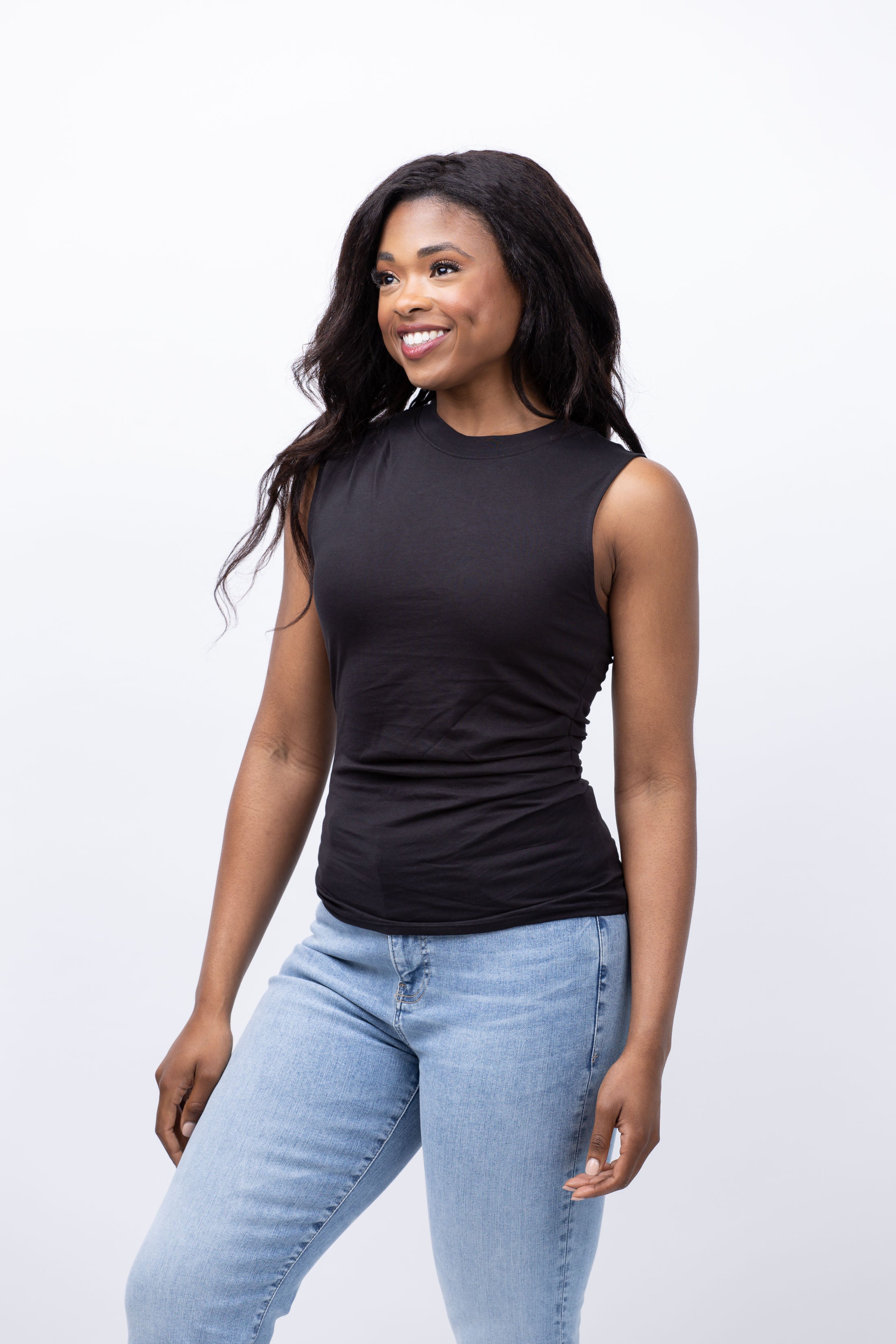 Elevate your everyday look with the NATION LTD Paz Draped Muscle Tee. A stylish twist on the classic muscle tee, this top features a pintucked shoulder for added texture and a flattering draped fit. Perfect for effortlessly accentuating your silhouette. Available in Black. Get yours now!