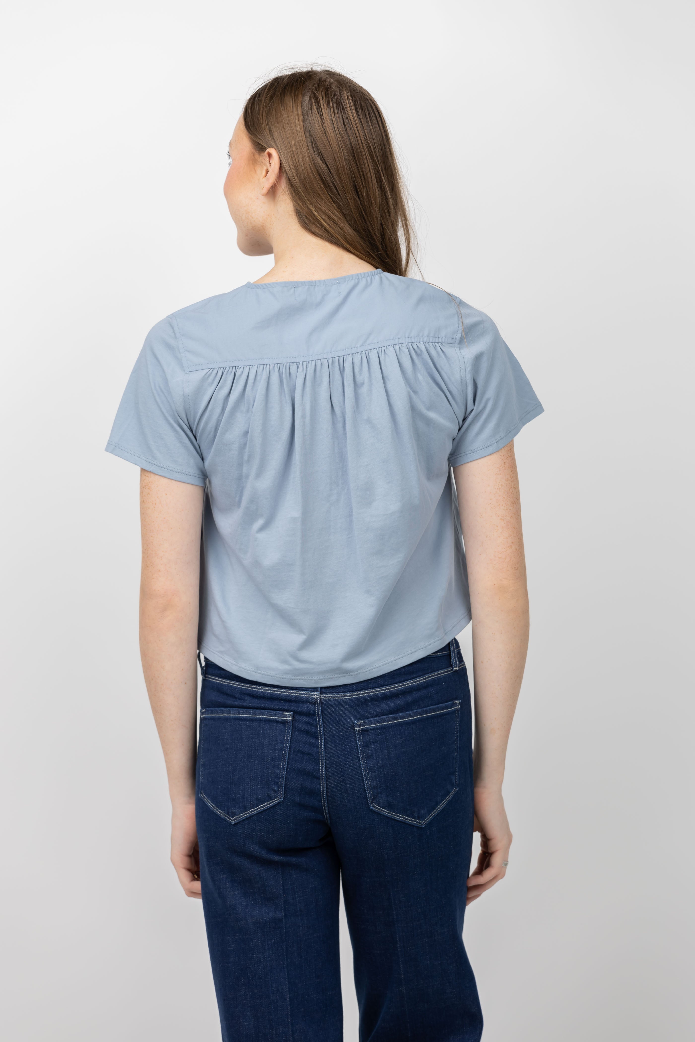 NATION LTD Robin Tie Front Tee in Faded Denim