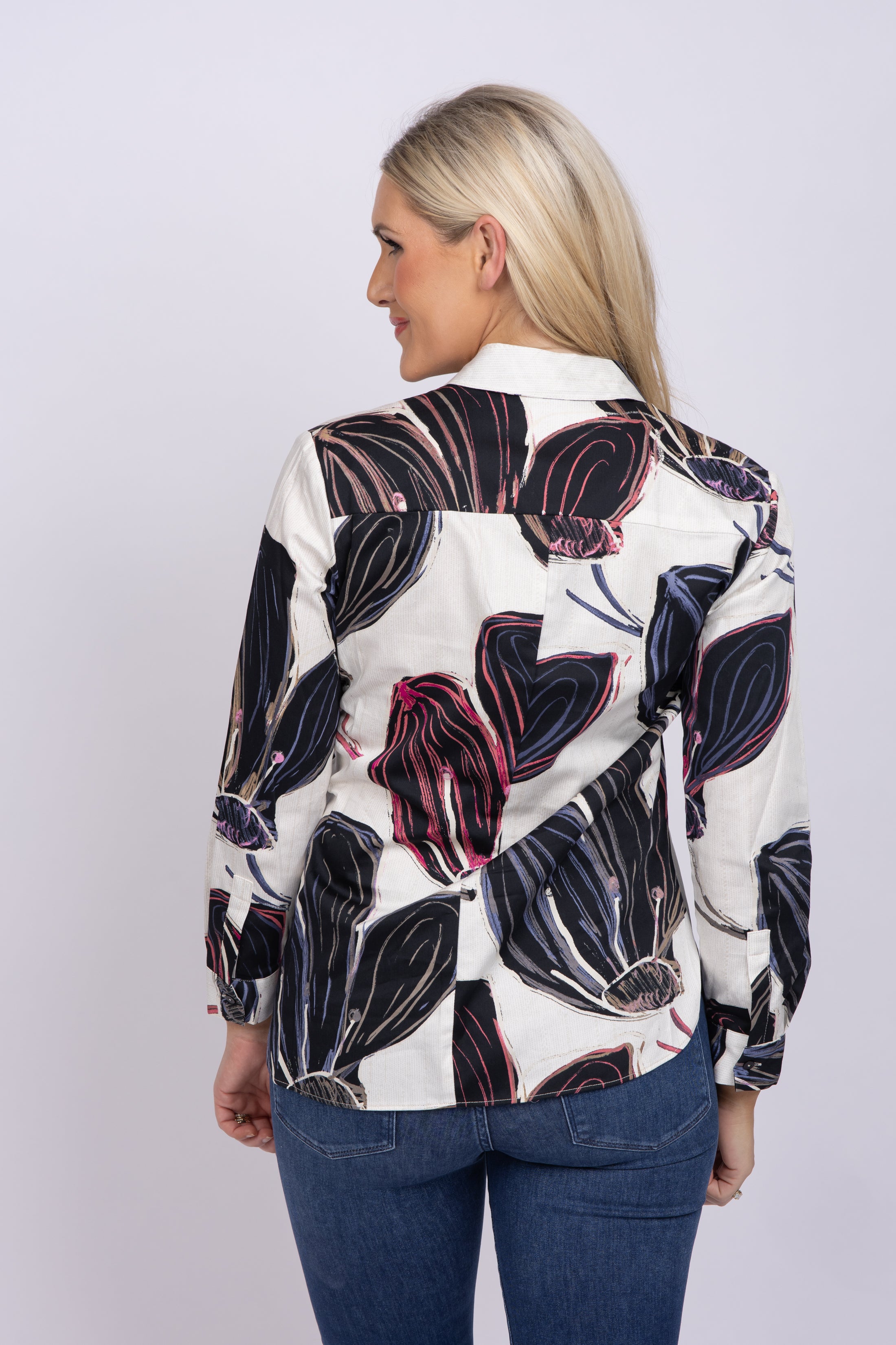 Be your stylish best with the Nic+Zoe Stamped Flowers Shirt: a classic button-up silhouette with full sleeves and a flattering regular fit. Crafted with comfort in mind, this 97% cotton top is spiced up with 3% spandex for a hint of stretchiness. Tuck it in or keep it loose for a hip-grazing silhouette. A timeless classic with a modern twist!