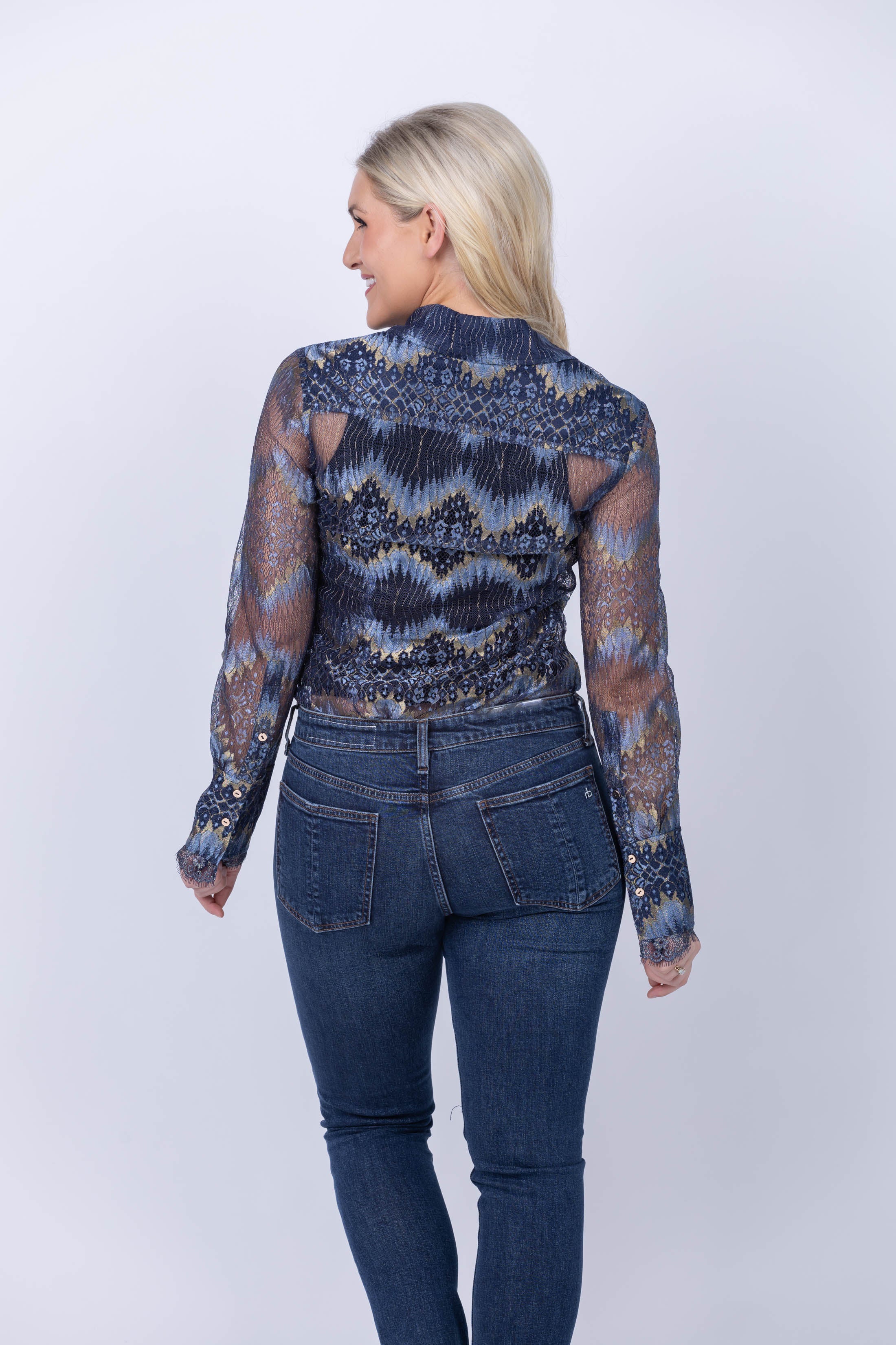 Brighten up your wardrobe with the Ramy Brook Nora Top. Featuring a luxe chevron lace design, this button-down blouse is sheer perfection and the perfect way to add a touch of glamour to any look. Instantly transform your style with this top; simply swap out your denim and tuck into statement skirt for an elegant finish. Want to make a statement? The Nora Top is the answer!