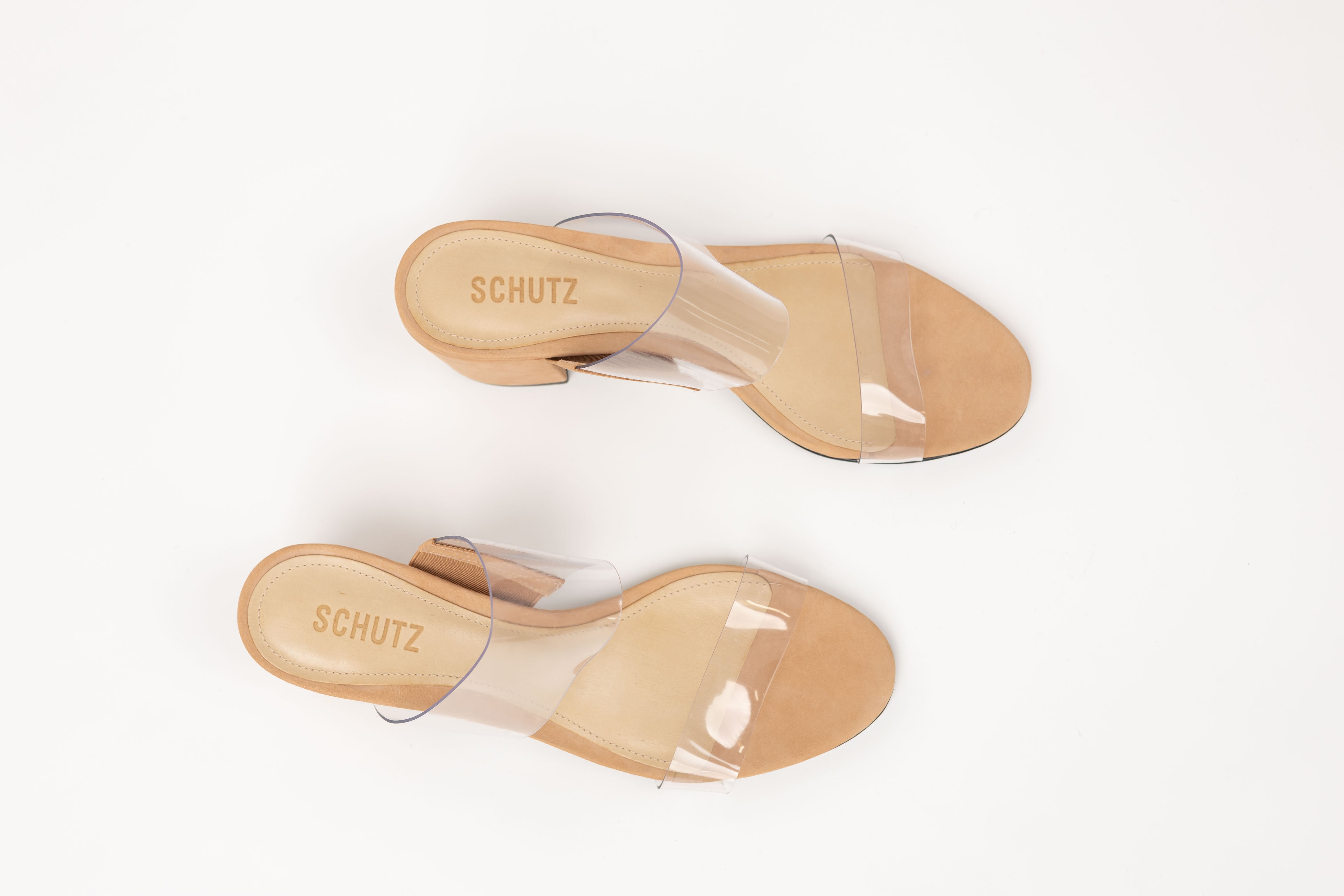 Elevate your style with the Schutz Victorie Sandal in Nude/Honey Beige. Embrace the clear chunky straps and effortless elegance of this season's must-have mule sandal. With a comfortable block heel, versatile styling options await - pair with jeans, skirts, and jackets for endless fashion possibilities!