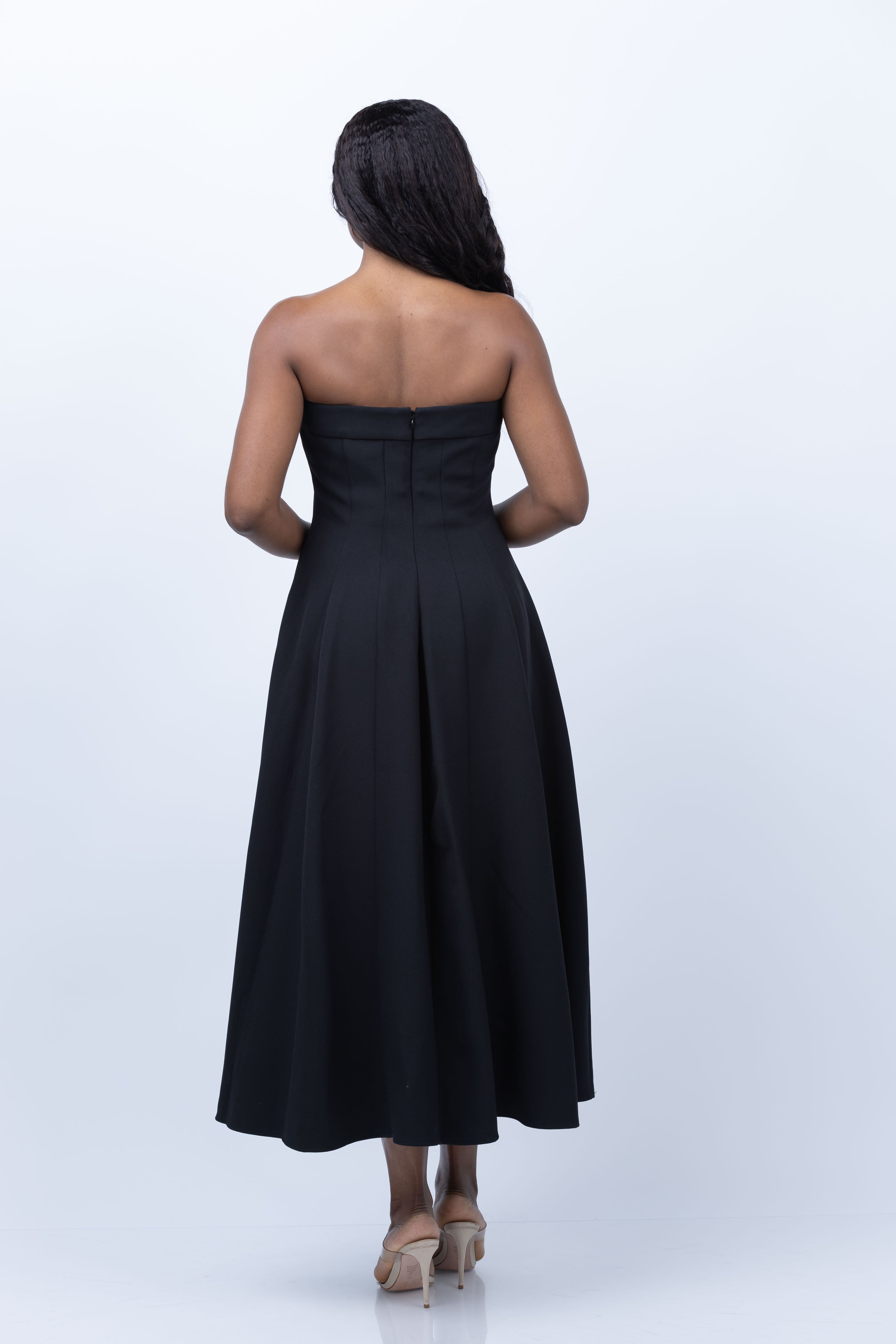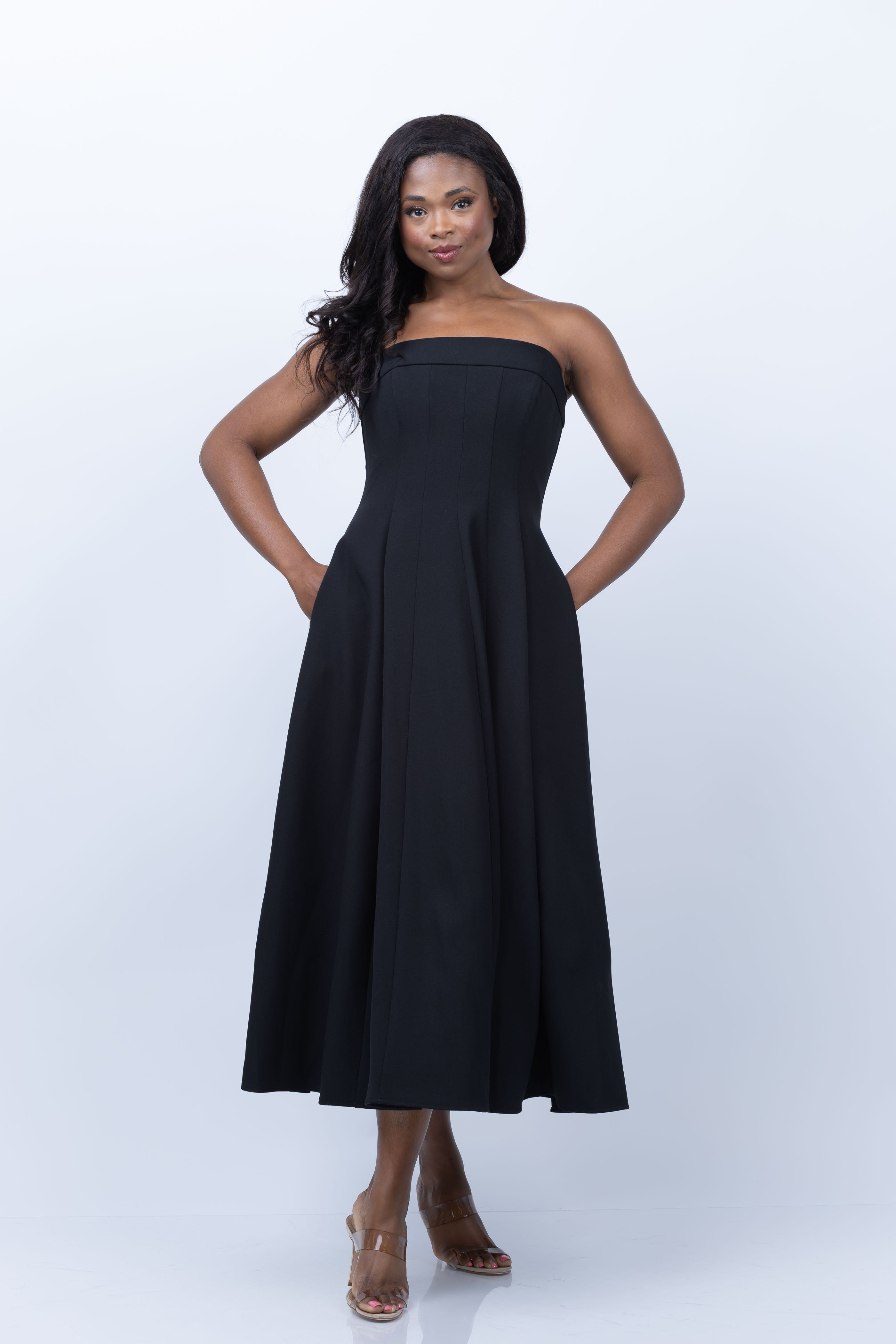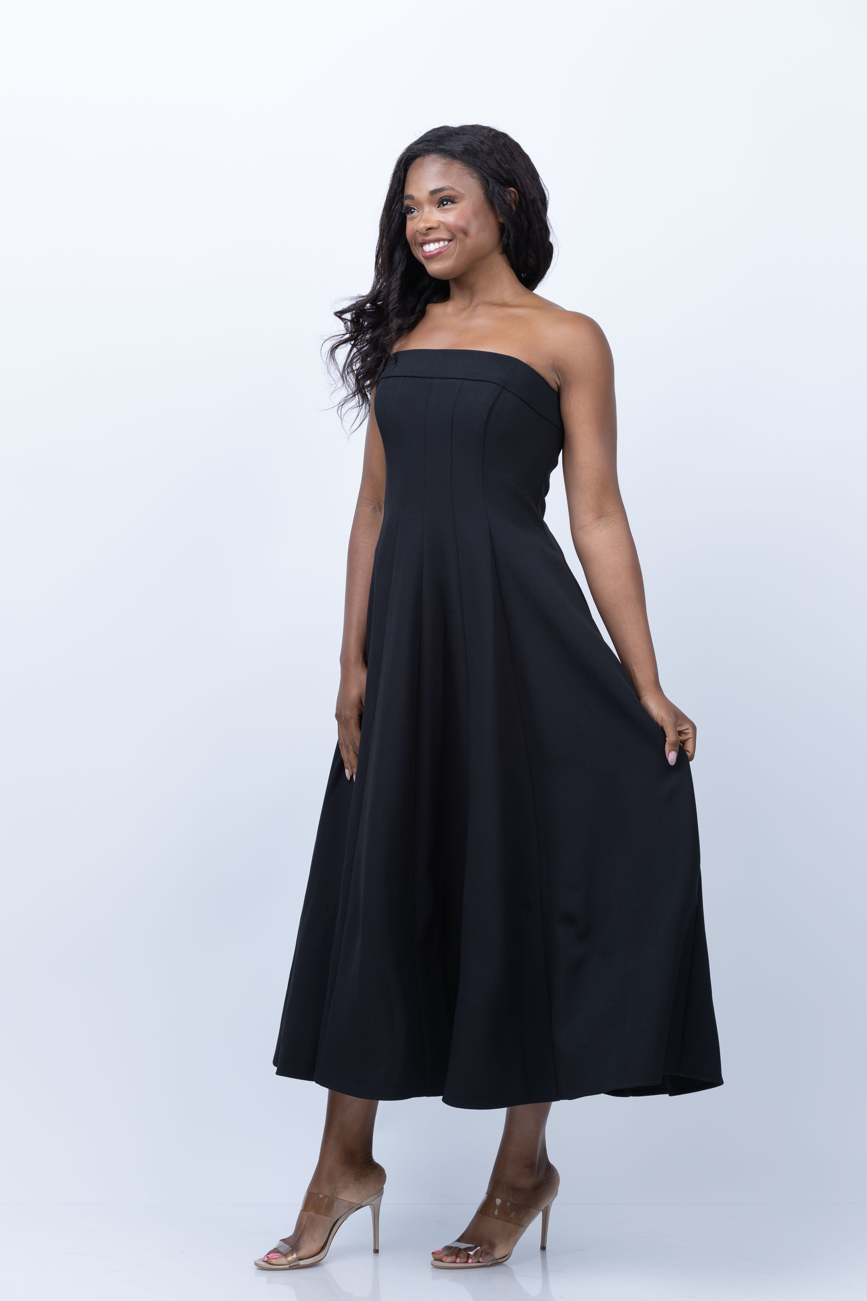 Dazzle in the elegant Shoshanna Alto Dress in Jet! Made of stretch crepe, this cocktail dress features a strapless neckline and form-fitted bodice with engineered seam lines for a stunning silhouette. The full bustier construction inside ensures a secure fit while the hidden back zipper adds a touch of sophistication. Perfect for any special occasion!