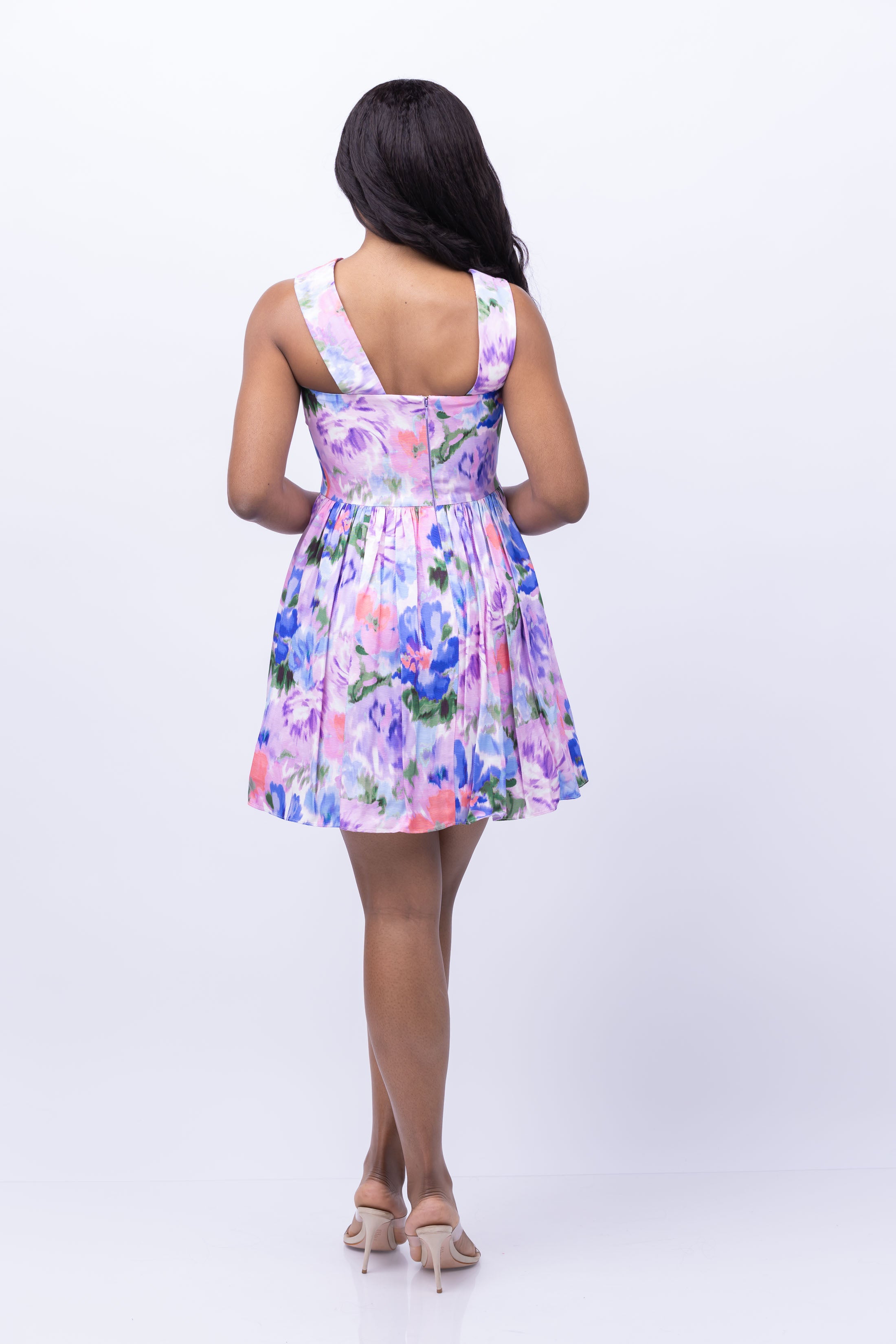 Experience effortless elegance with the Shoshanna Cadey Dress in Lavender. The lightweight non-stretch faille fabric provides comfort and flow while the asymmetrical neckline and ruched bodice add a touch of sophistication. The gathered skirt and beautiful floral print make this dress a must-have for any special occasion. Transform into a vision of beauty and grace in this stunning dress.