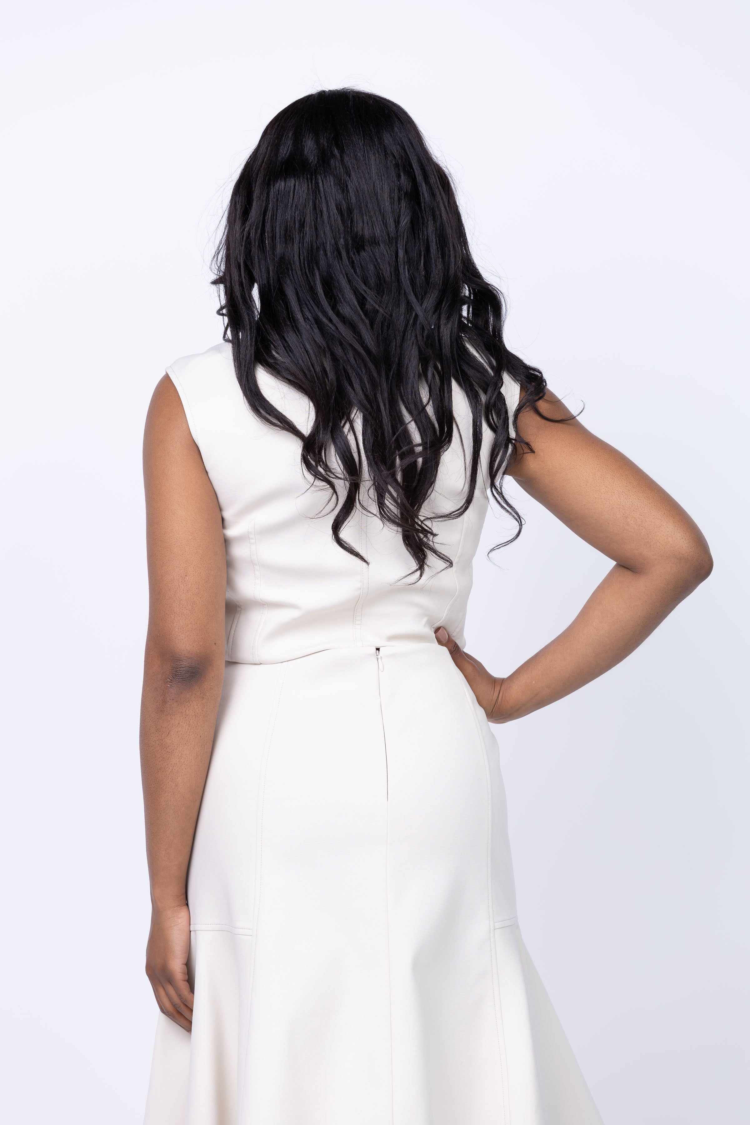 Introducing the Alix Top in Ivory! Made with inside-out suiting fabric, this sleeveless zip-up offers a modern twist on traditional tailoring. Elevate your style and make a statement with this unique and chic top.