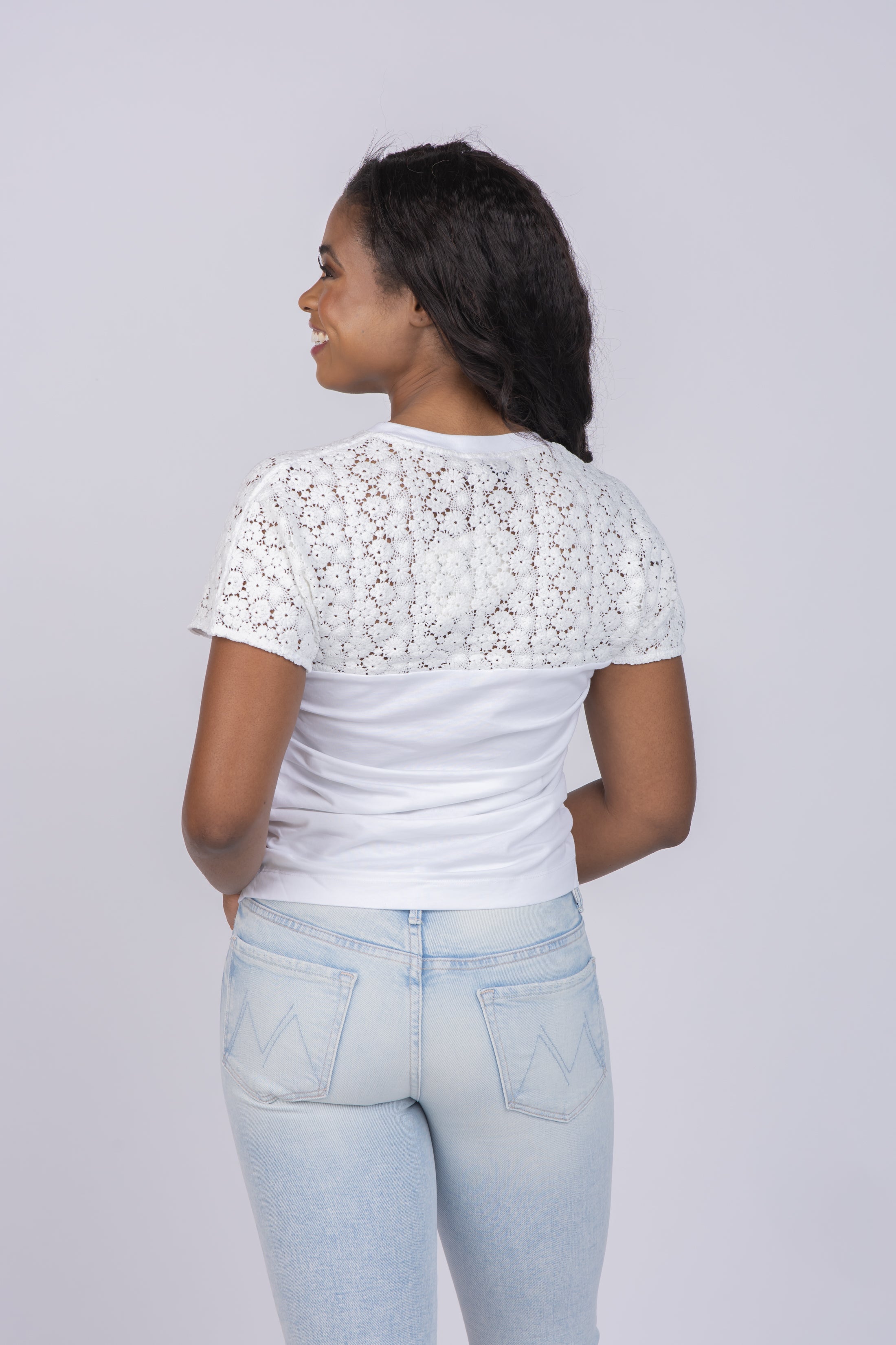 A classic t-shirt silhouette gets a feminine update in the Akira top. Featuring an embroidered neckline, arching at the bust for a bustier-inspired look, Akira was designed to make a subtle yet artful statement.