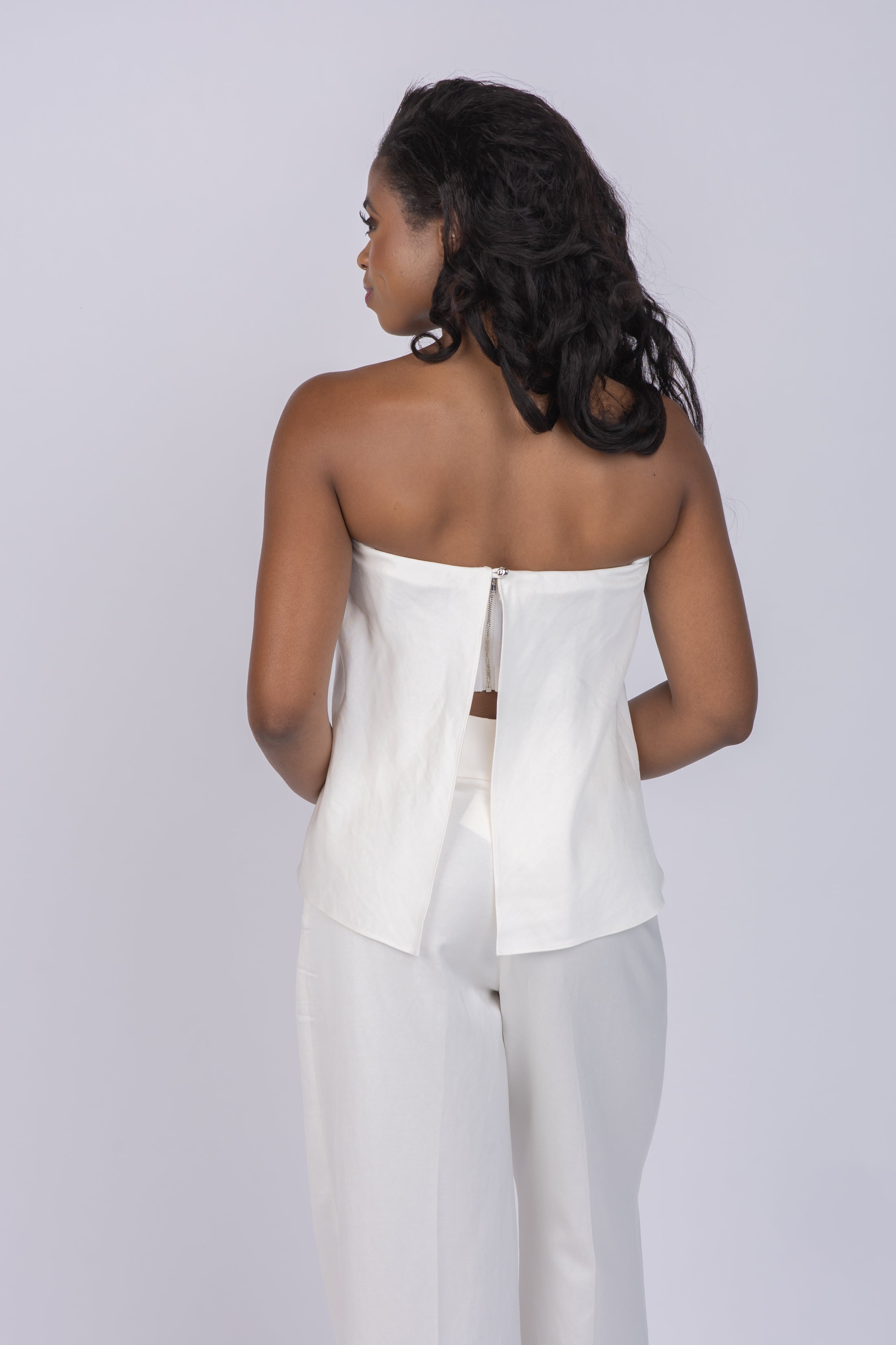 Designed in a lightweight recycled satin, Weston is the newest event-ready silhouette. Featuring a strapless bodice with a flowing hem and mesh interior bustier, Weston is a statement top for the Summer season.