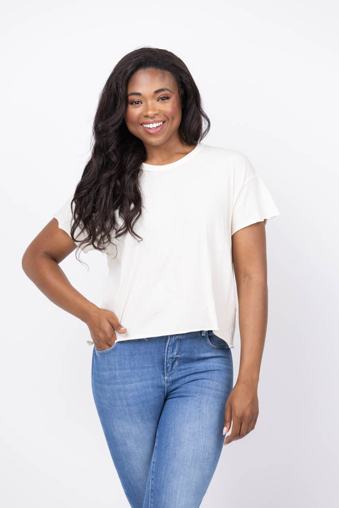Experience effortless style with The Great's Crop Tee in Washed White. Crafted from super soft cotton with a lived-in wash, this cropped, boxy top offers comfort and a relaxed fit. Perfectly pairs with high-rise jeans, feminine skirts, or layered under a lightweight jacket for versatile looks. Handcrafted locally in Los Angeles, each tee is uniquely made, ensuring you own a one-of-a-kind piece that stands out. Elevate your wardrobe with this must-have staple that blends casual ease with distinctive charm.