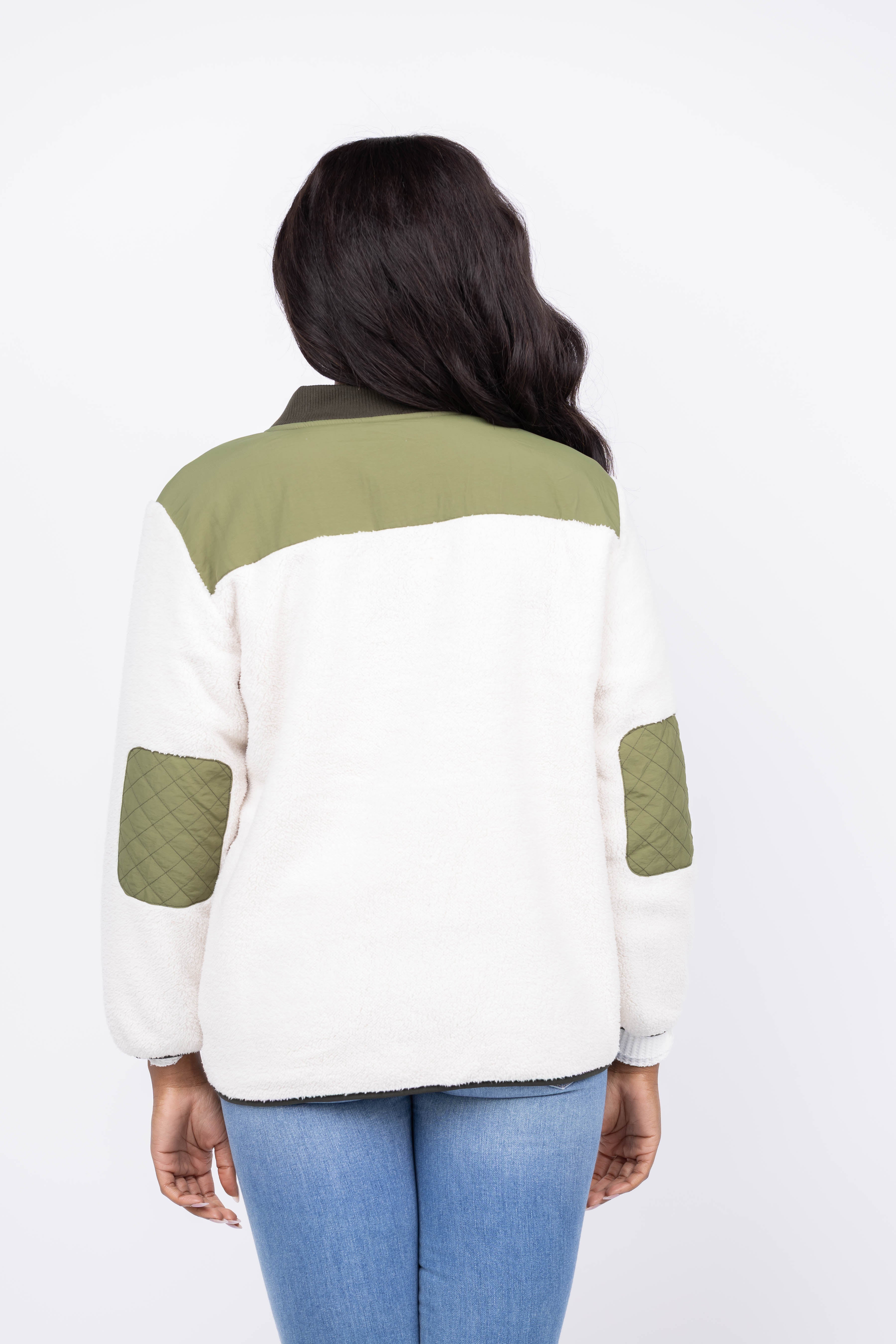 The Great. The Plush Tundra Jacket in Cream & Army