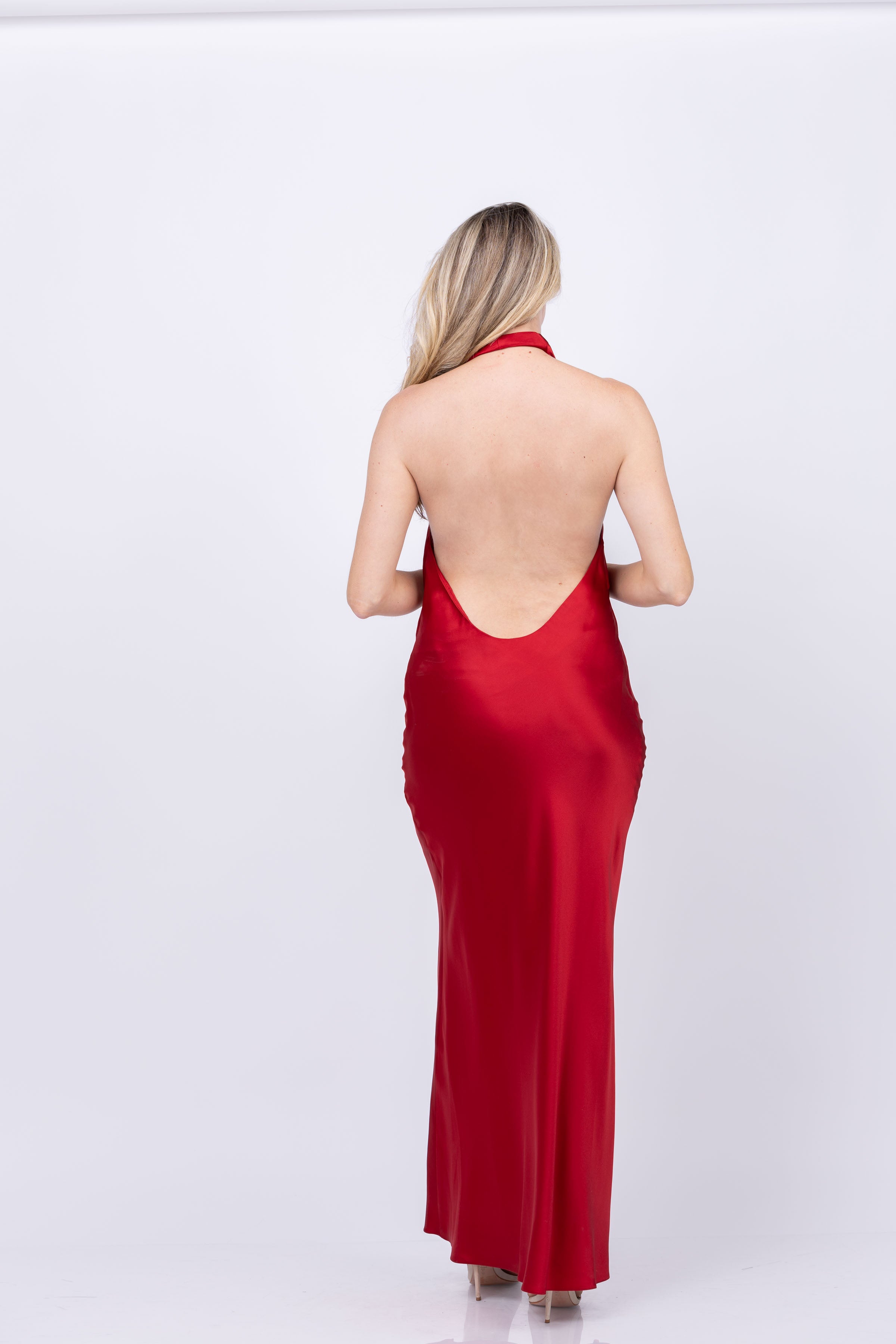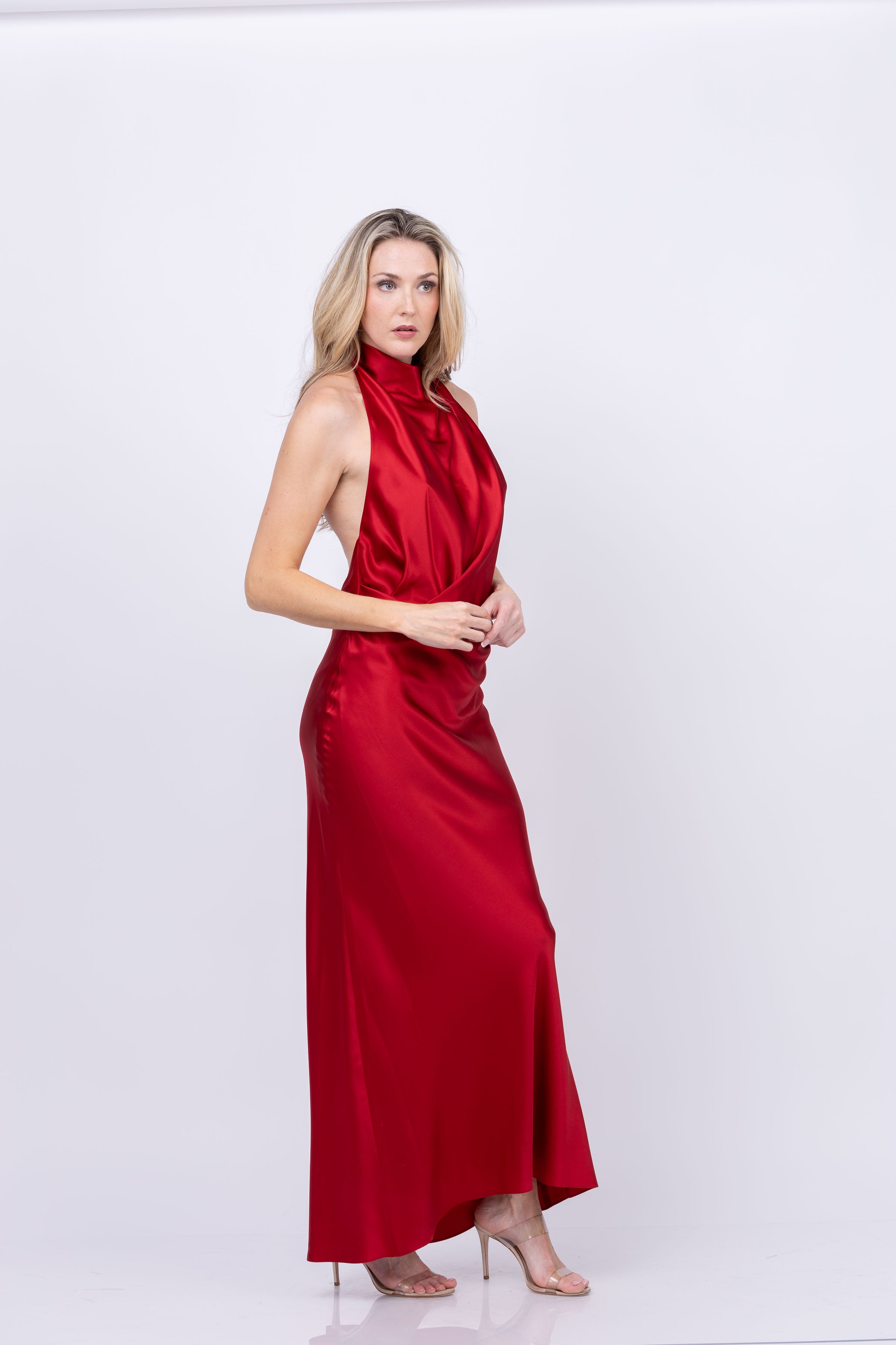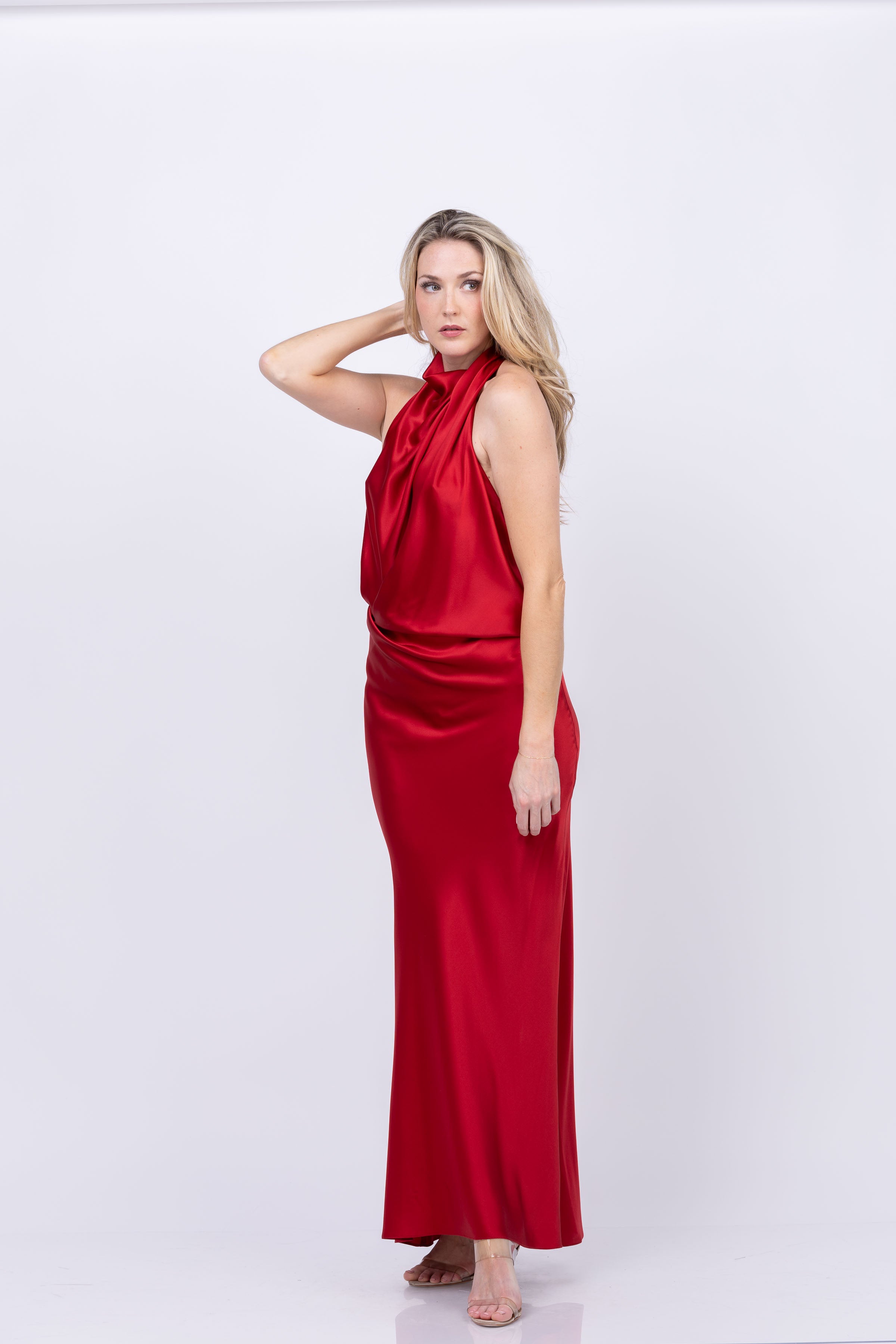 Be effortlessly elegant in The Sei Halter Drape Bias Gown. Its 100% silk fabric and halterneck styling effortlessly drape over your silhouette, while the open back and back button loop closure add a touch of allure. Perfect for any occasion, this midweight gown is both luxurious and versatile.