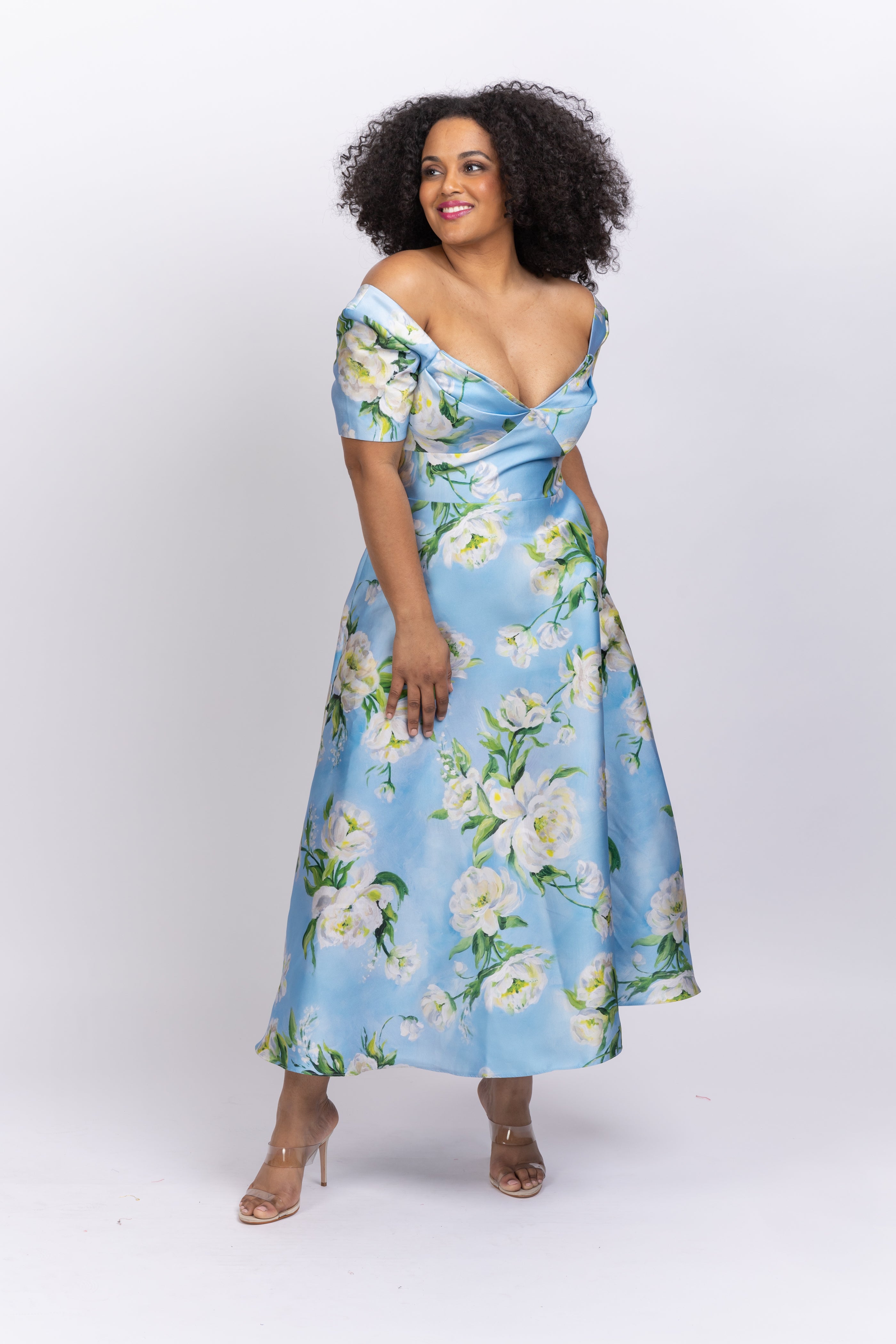 The Anisa dress makes a grand entrance with exquisite fabrications. Crafted with Mikado, its silhouette obtains structure while its canvas has an elegant yet subtle shine. Inspired by views of the French countryside, its prints showcase a stunning array of floral artistry.