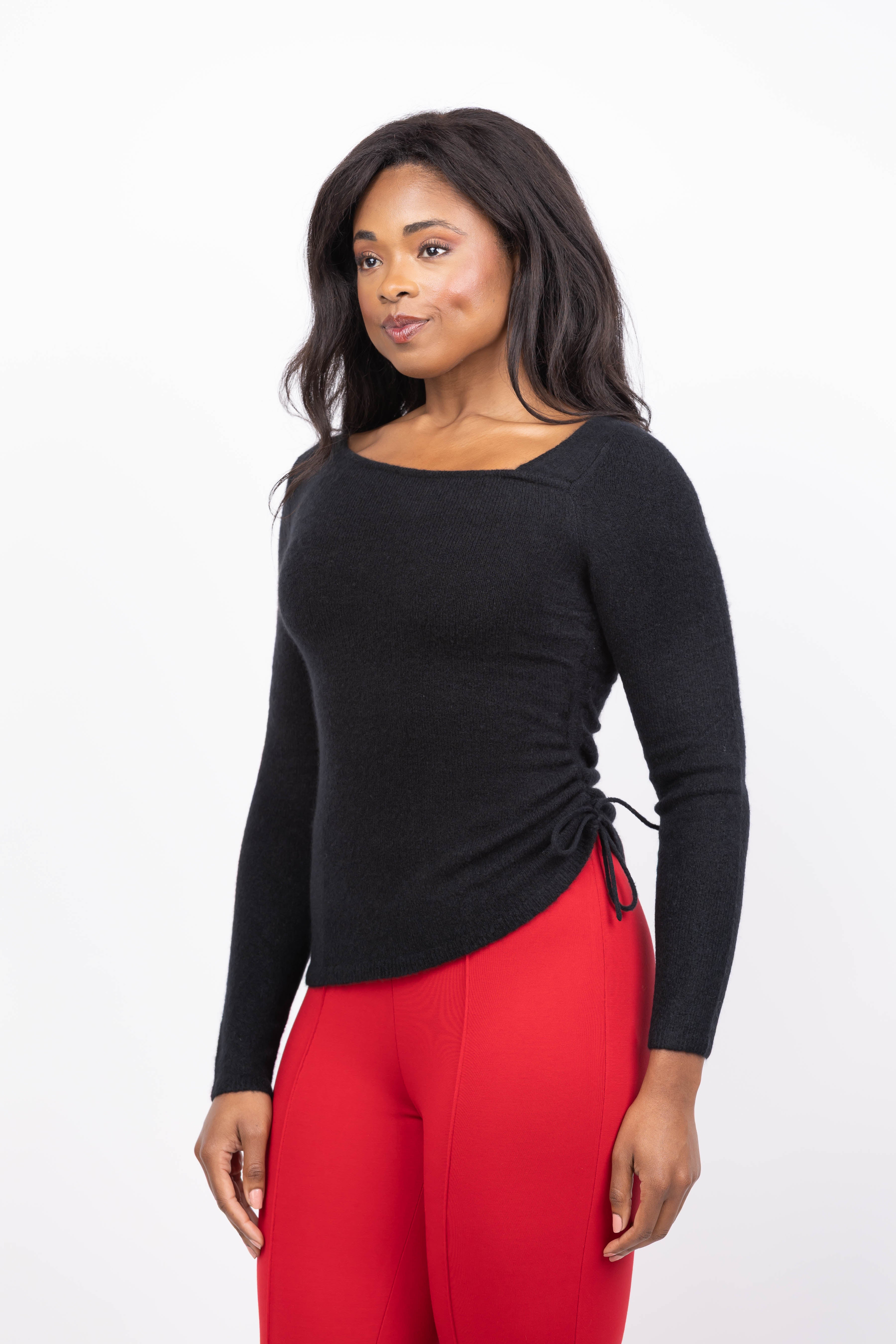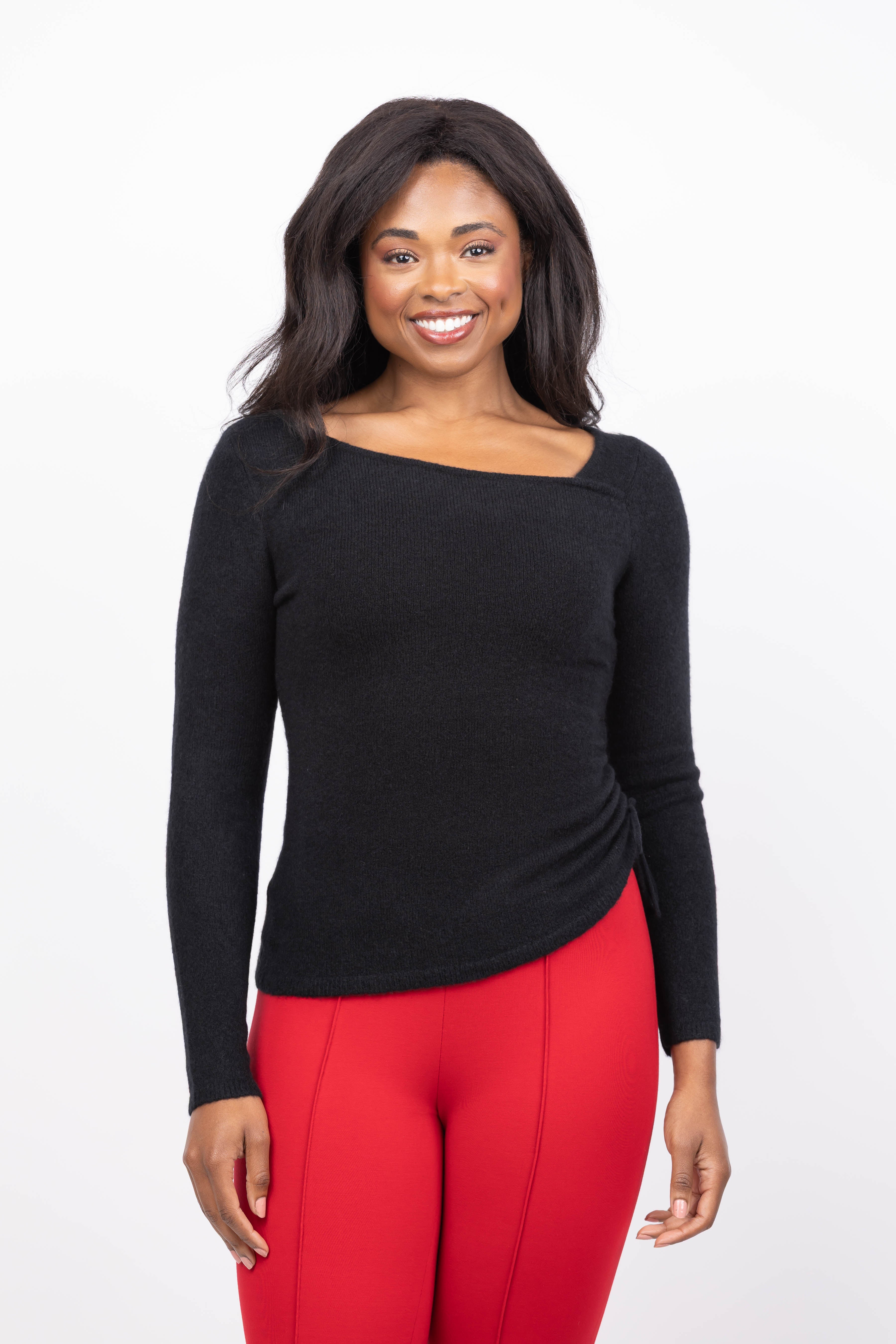 Elevate your wardrobe with the Theory Asymmetric Top in Black. Featuring a stylish asymmetric neckline and long sleeves, this pullover offers both comfort and a modern edge. The adjustable ruching on one side allows you to customize the fit, enhancing your silhouette effortlessly. Perfect for making a sophisticated statement with ease.