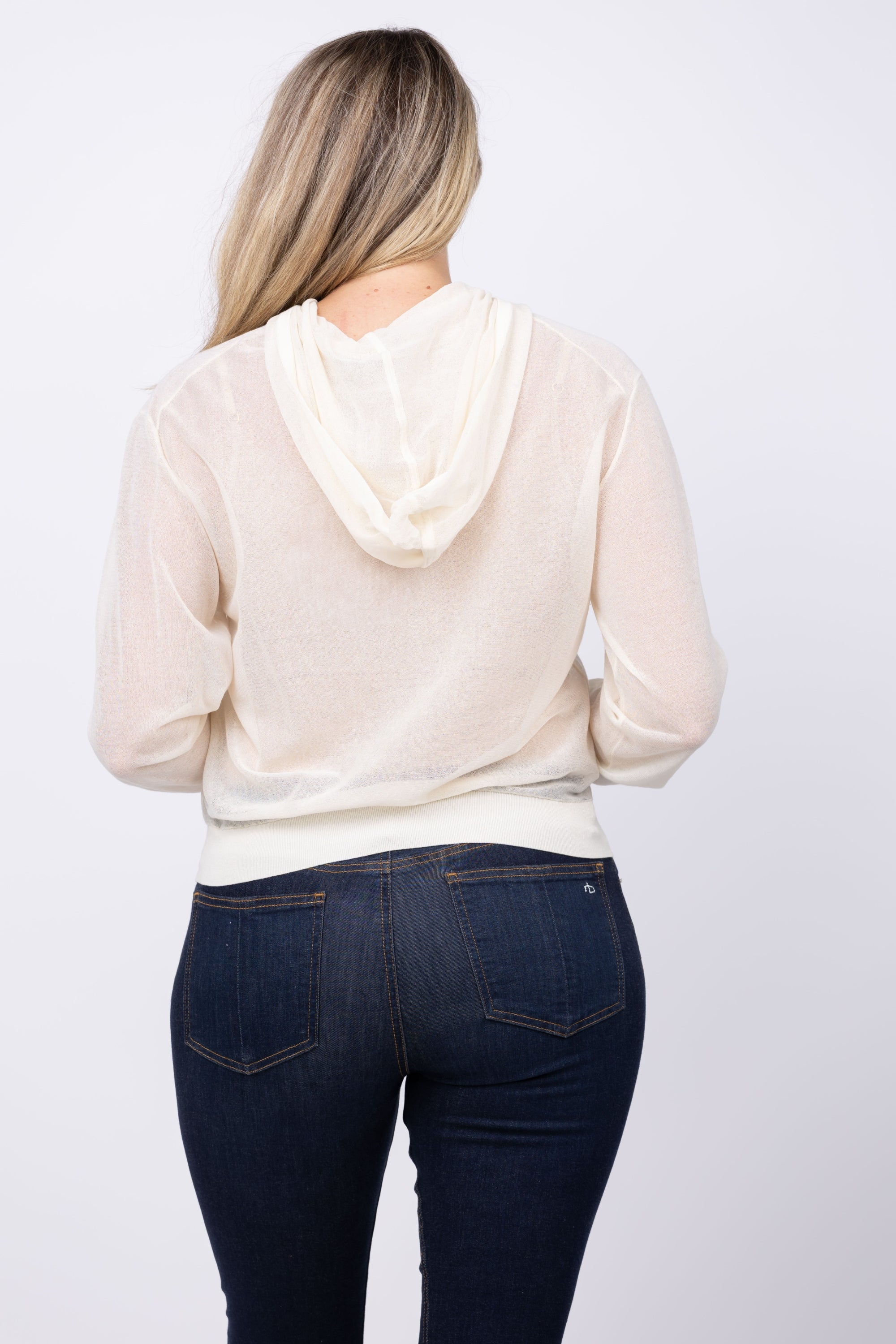 Theory Blouson Hood Sheer Top in Cream