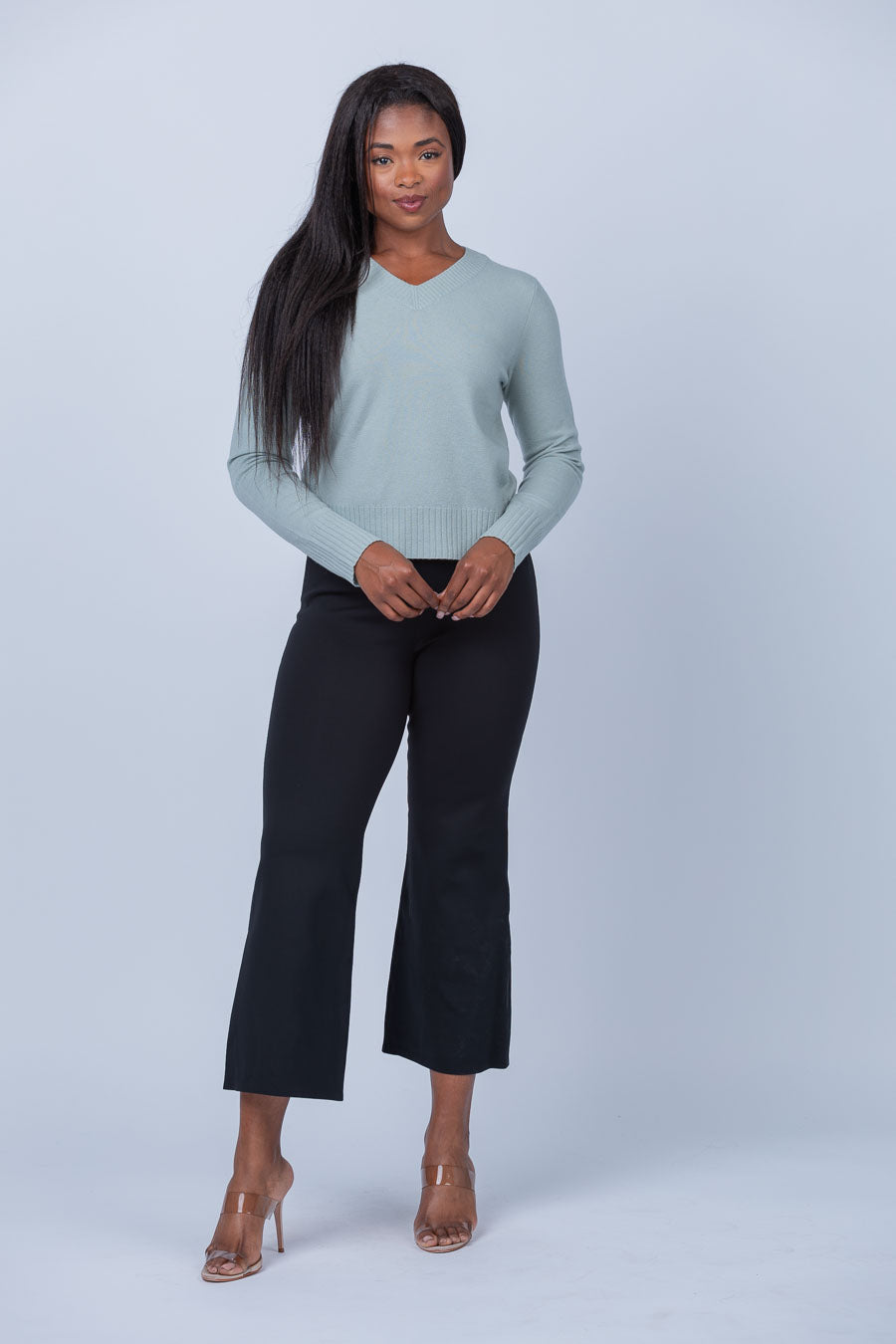 Pressed along the front to accentuate a cropped flare silhouette, this mid-rise style is tailored without a waistband to achieve a streamlined fit. Crafted from an ultra-soft Italian scuba with four-way stretch for a flexible fit that retains its shape over time. Made from 87% recycled polyamide using post-consumer waste, this pull-on style resists wrinkles, wicks moisture, and dries quickly.