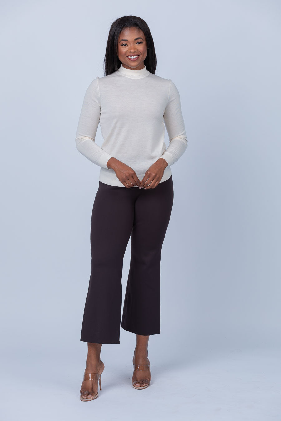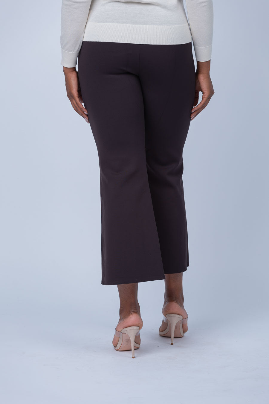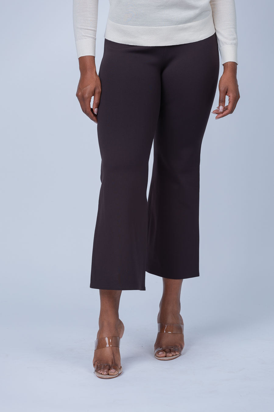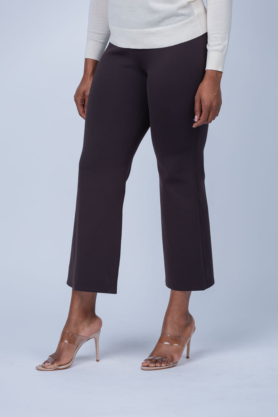 Pressed along the front to accentuate a cropped flare silhouette, this mid-rise style is tailored without a waistband to achieve a streamlined fit. Crafted from an ultra-soft Italian scuba with four-way stretch for a flexible fit that retains its shape over time. Made from 87% recycled polyamide using post-consumer waste, this pull-on style resists wrinkles, wicks moisture, and dries quickly.