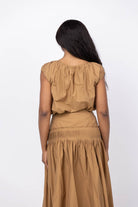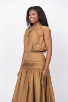 The Theory Easy Tie Top in Bronze features a flattering scoop neckline with a charming keyhole tie detail and comfortable raglan cap sleeves. Its relaxed fit and elegant design make it a versatile addition to your wardrobe, perfect for effortlessly stylish looks from day to night.