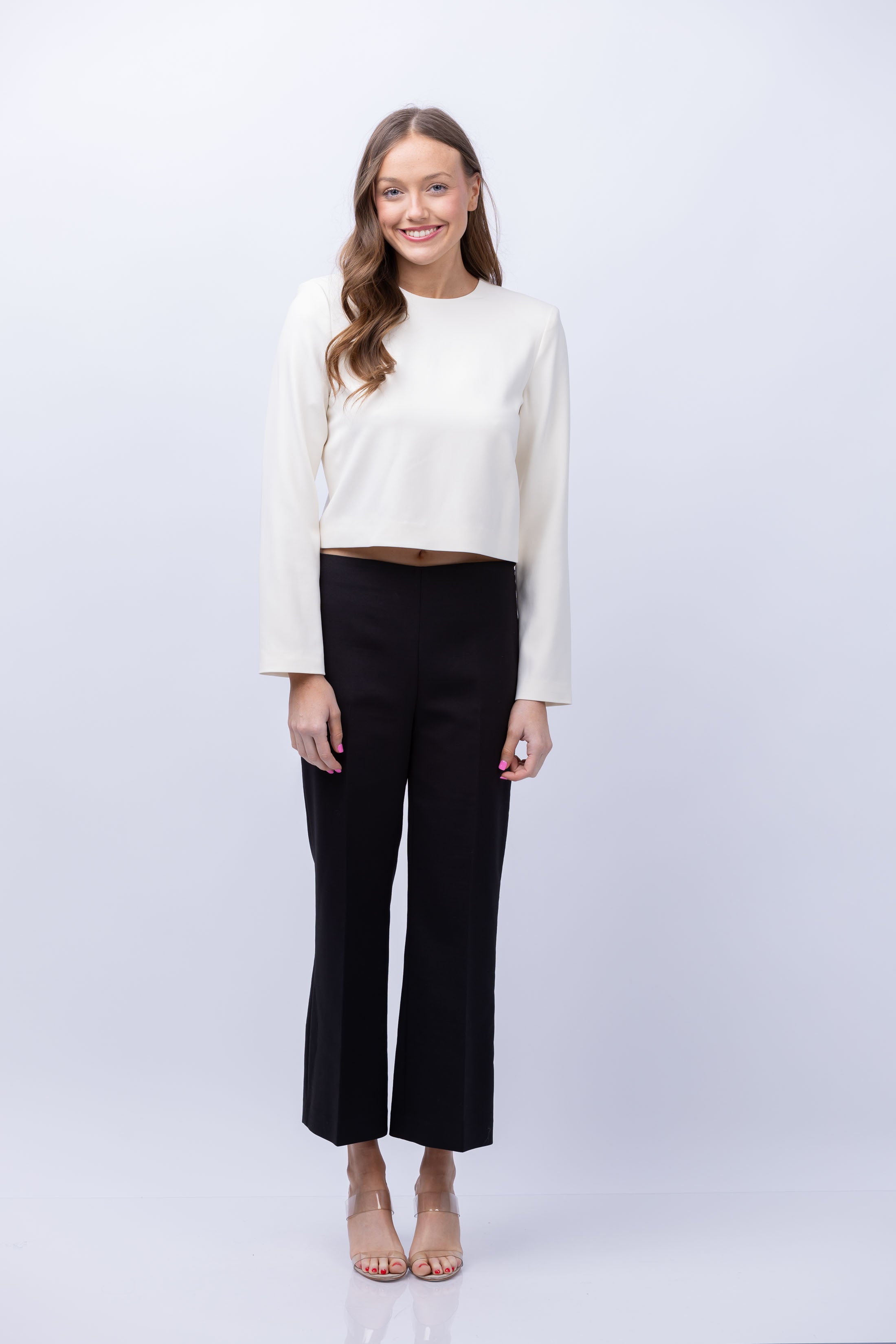 Streamline your look with the Theory Kick Pant. Made from a heavyweight double weave fabric, the pressed front and cropped flare silhouette add a touch of style to this mid-rise design. The zippered side and tailored fit without a waistband offer a clean, modern aesthetic. Elevate your wardrobe with this Japanese mill-crafted piece.