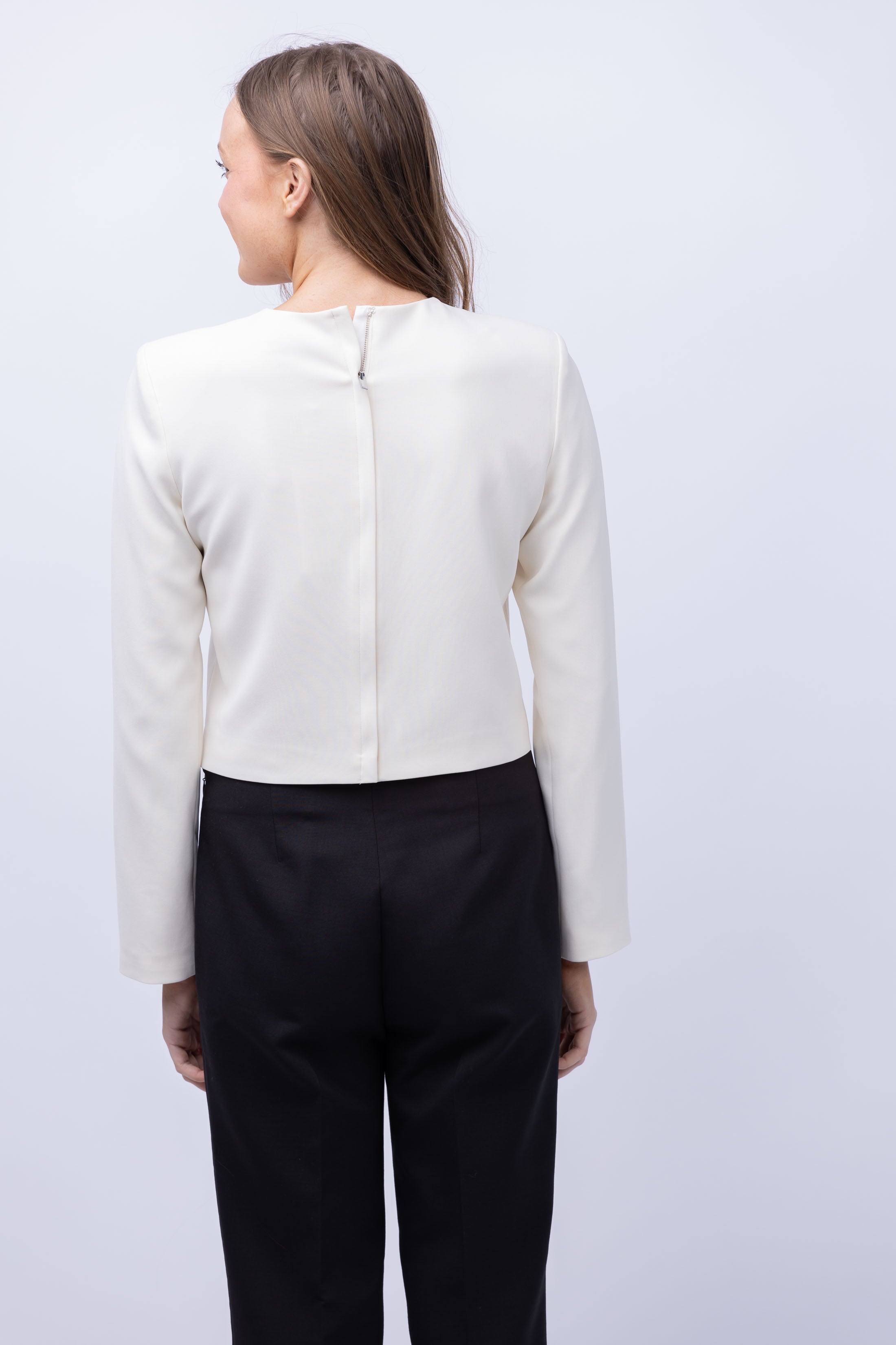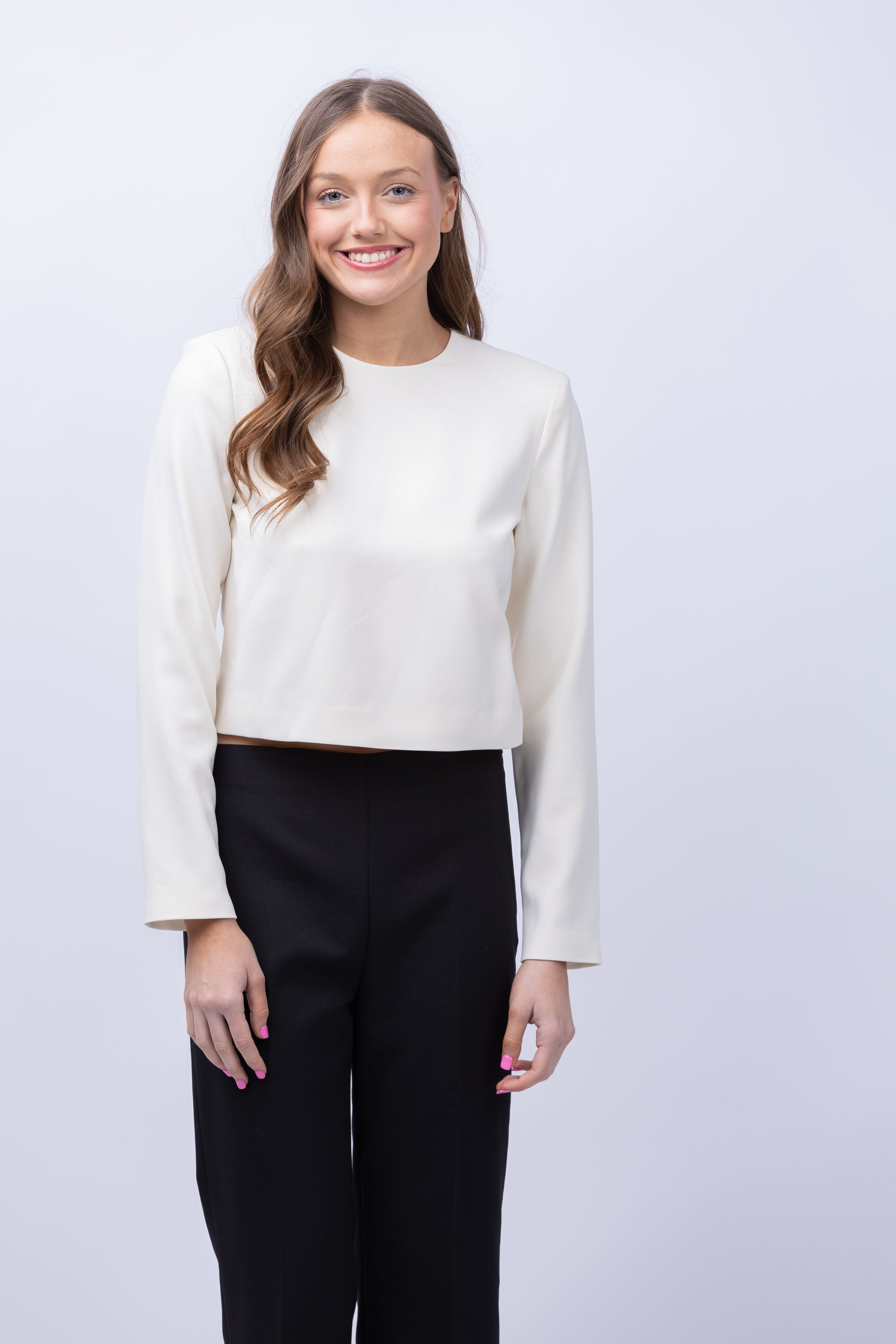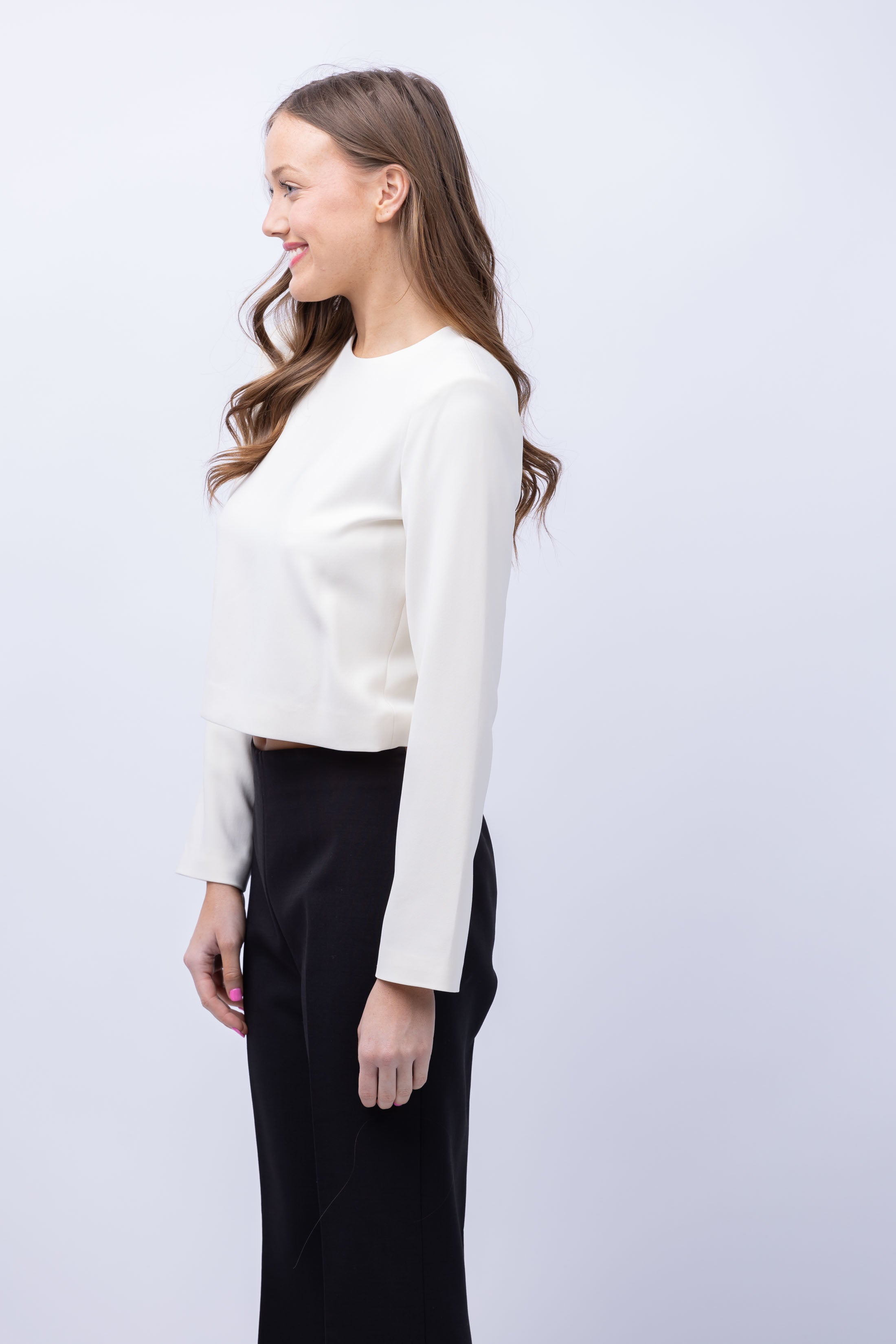 Elevate your wardrobe with the Theory Minimal Top in Rice. This stylish top features a crewneck and long sleeves, accented by light shoulder pads for a flattering fit. The concealed back zip closure and lining add a touch of sophistication while providing comfort. Perfect for any occasion.