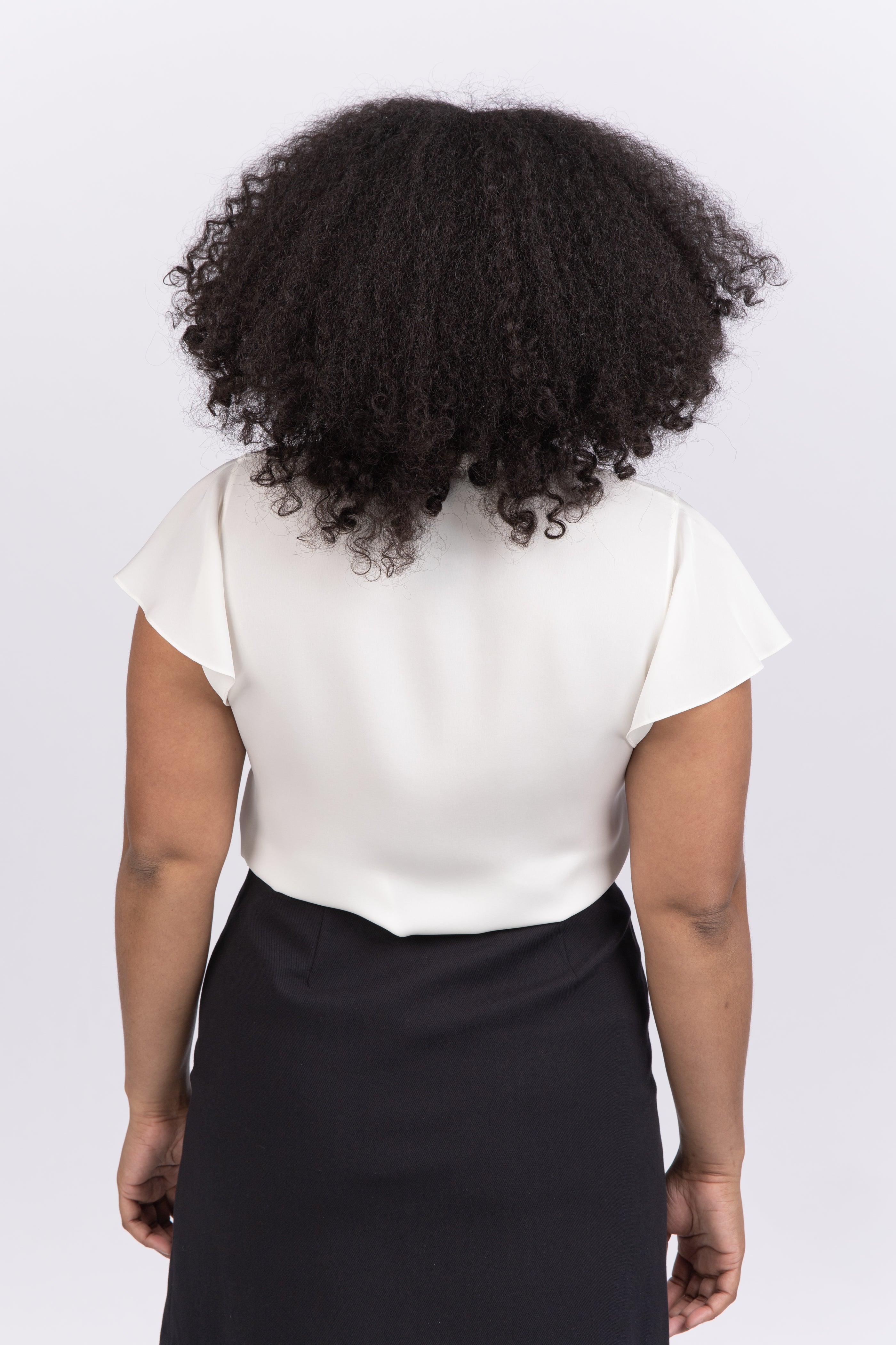 Theory Ruffle Sleeve Top in Silk Georgette Dark Ivory
