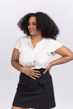 Tailored along a collarless silhouette, our top is ruffled along short sleeves. This relaxed style is crafted in a lightweight, airy silk georgette.