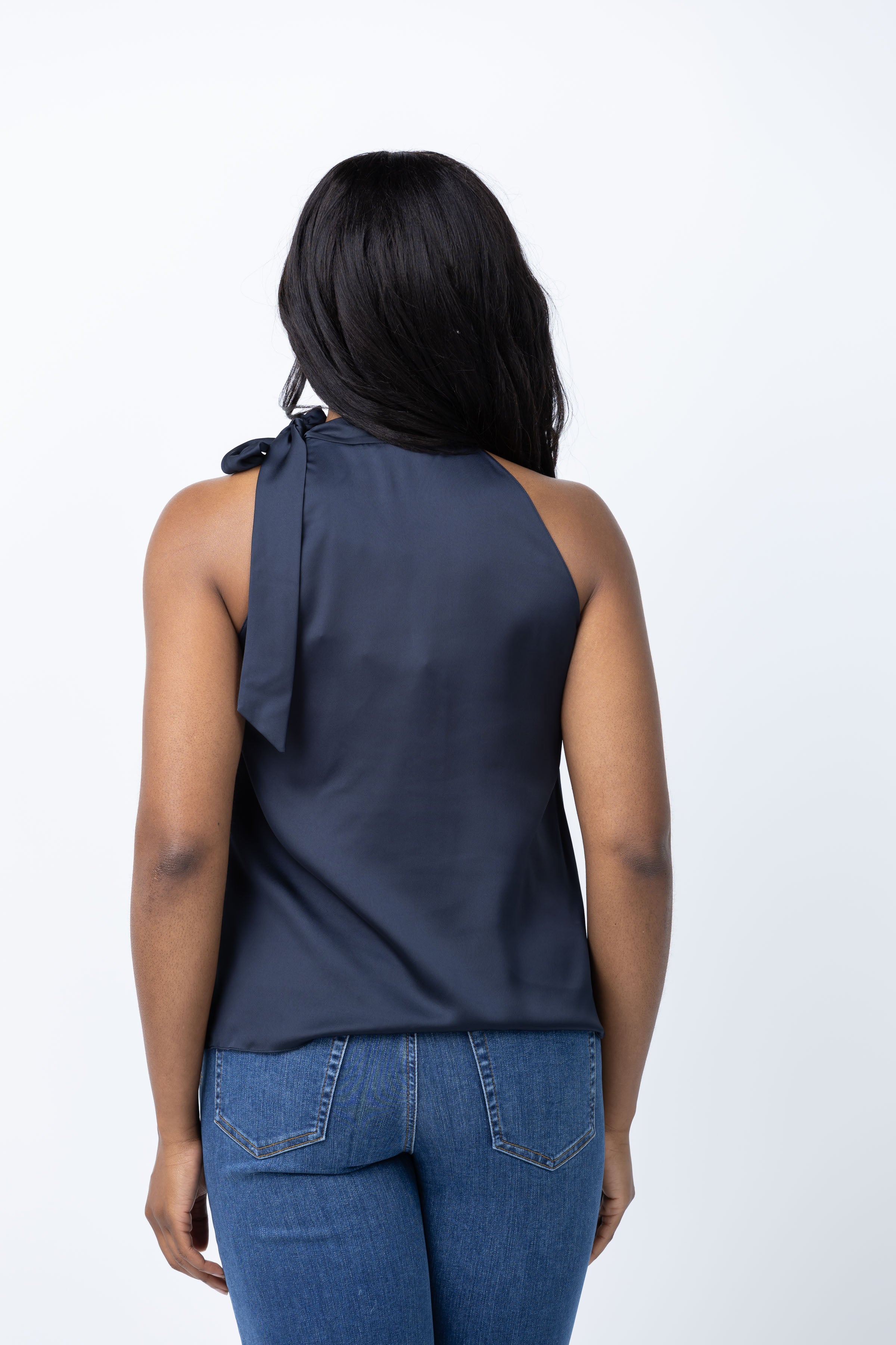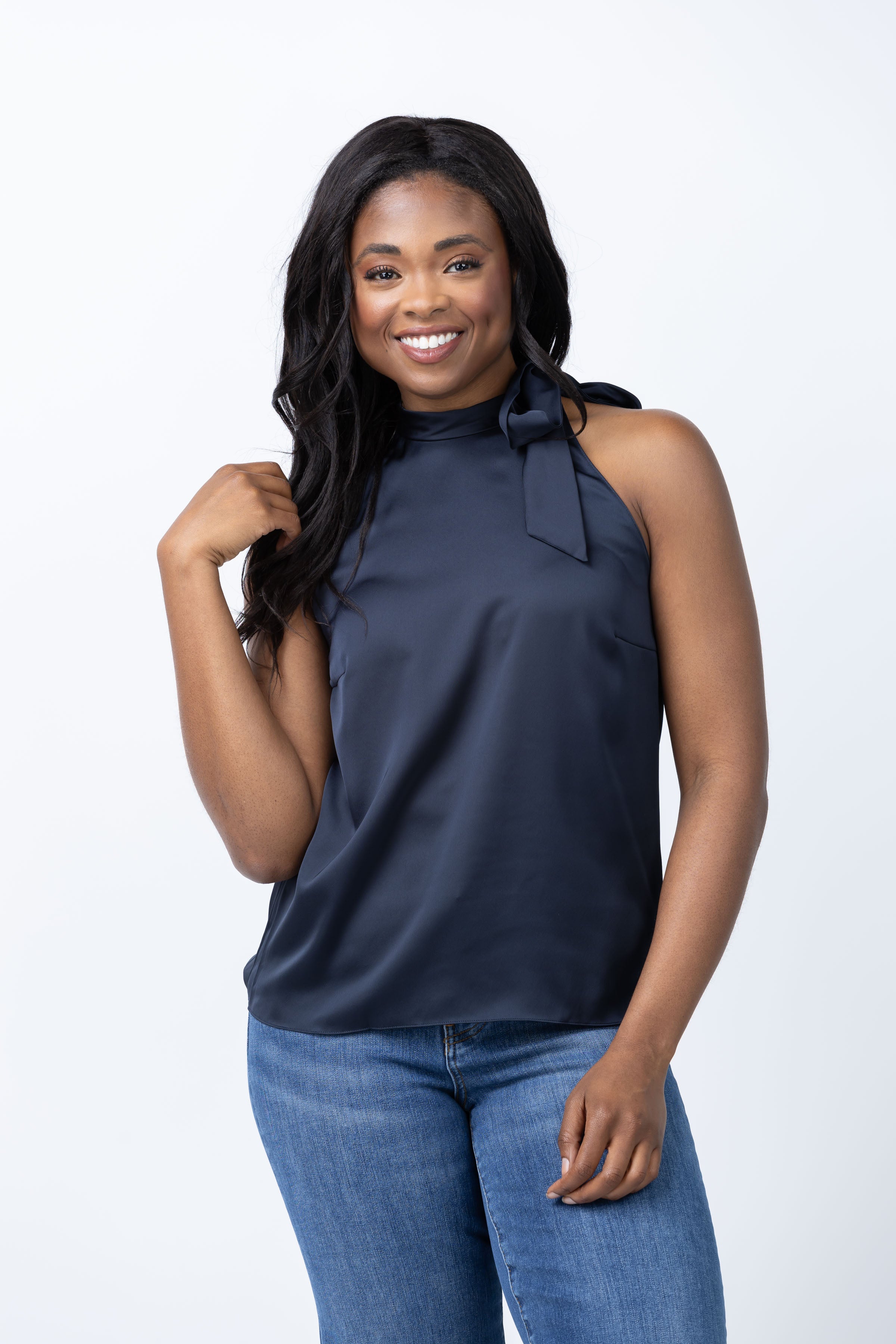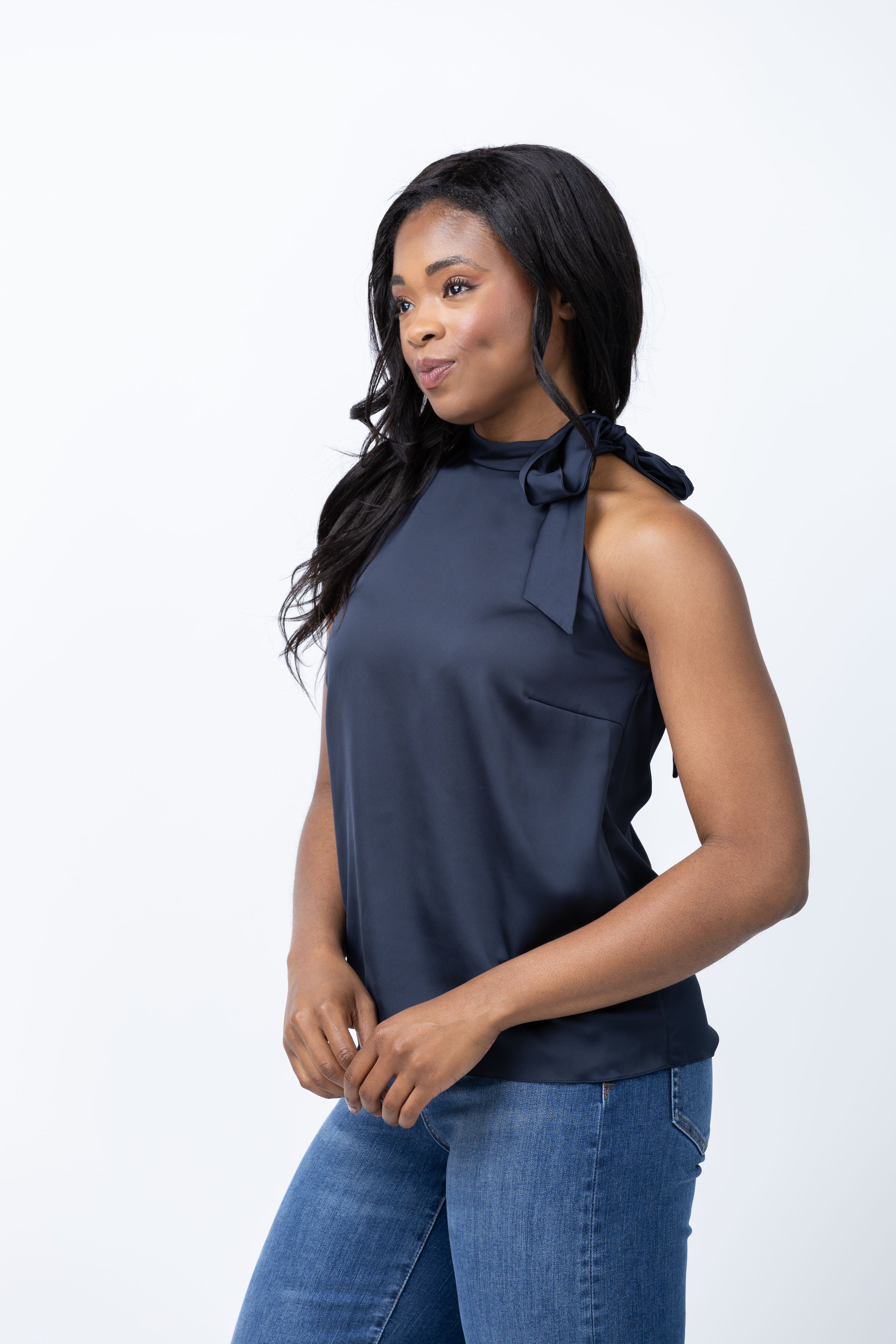 Upgrade your wardrobe with the Theory Side Tie Halter Top. This unique top features a textured satin fabric that gives off a subtle sheen and a luxurious feel. Plus, it's woven from 100% post-consumer recycled polyester, making it an eco-friendly choice. Tie it up for a stylish halter neckline.