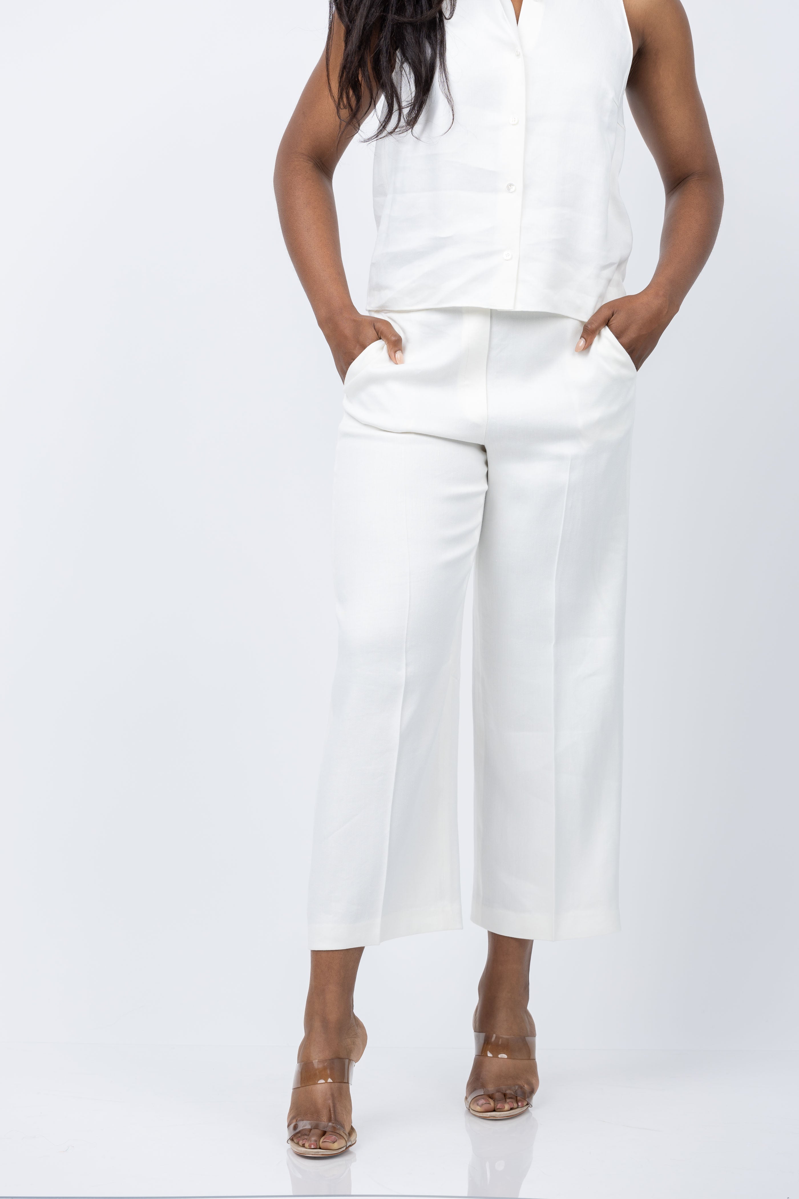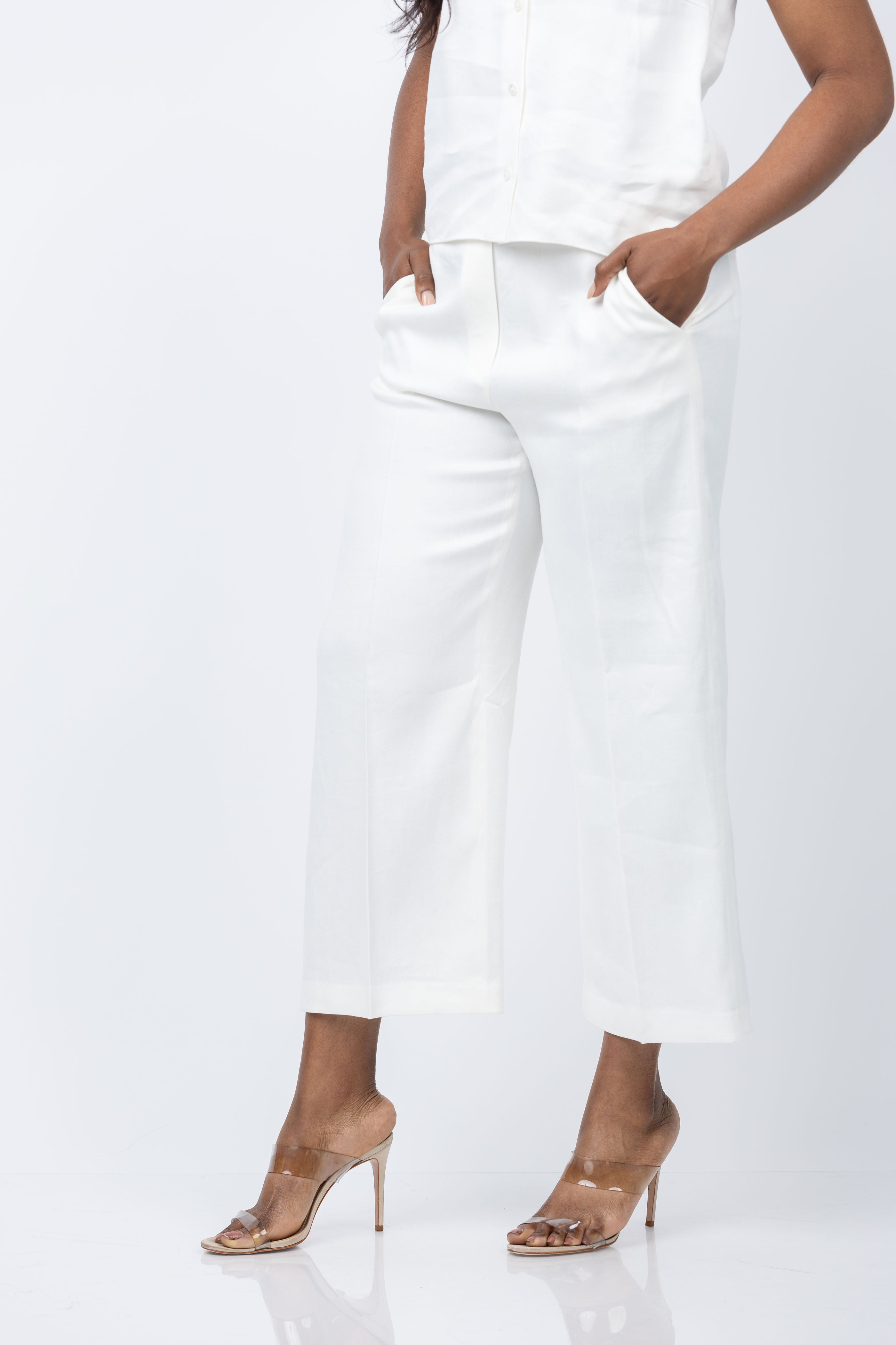 Elevate your summer wardrobe with the Straight Pull-On Pant in Linen-Viscose. Designed for versatility, this cropped pant features a relaxed straight leg and low-slung waist. Made from a luxuriously soft stretch twill sourced from Europe, it offers a subtle shine and sustainable comfort. Dress it up or down for any occasion.