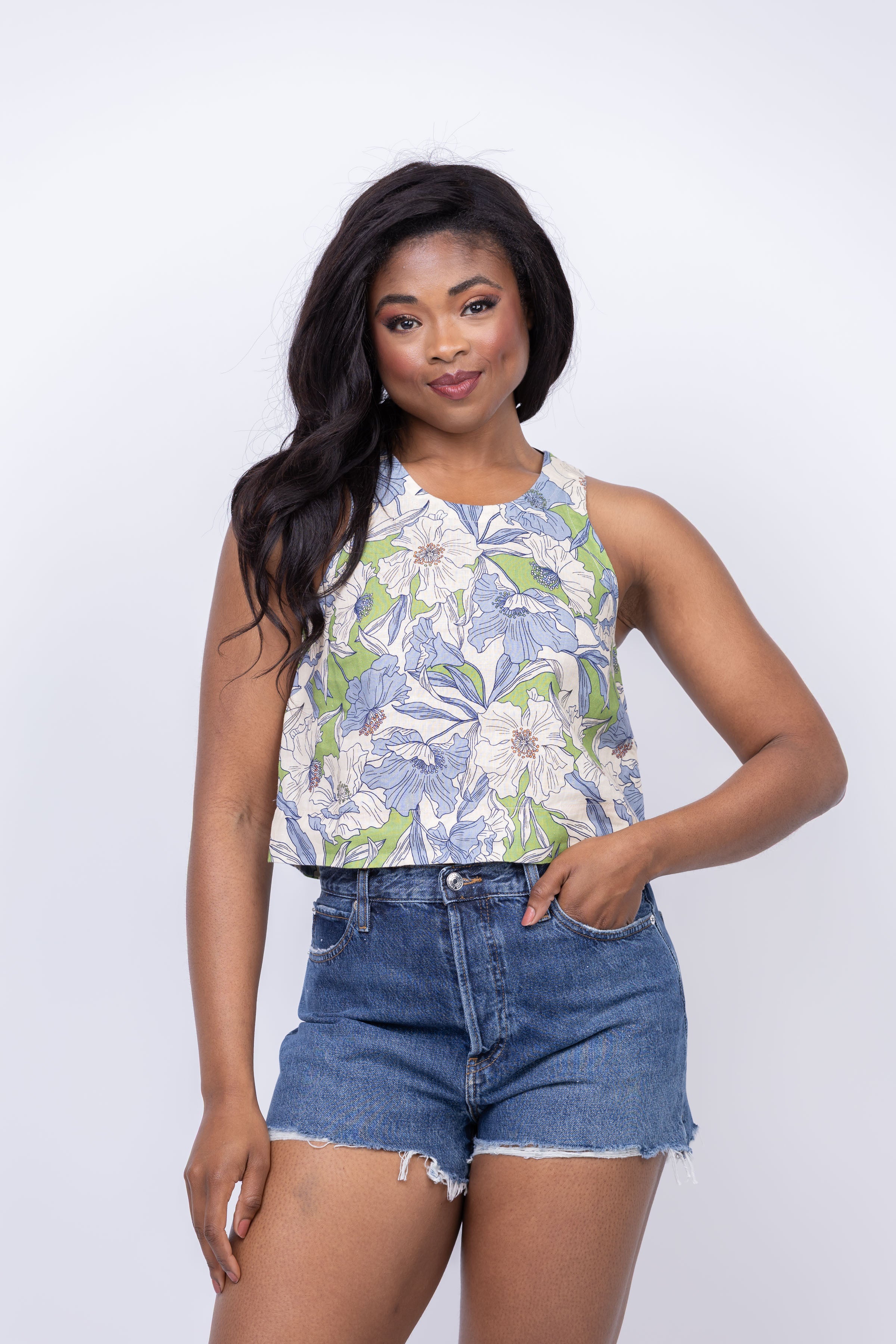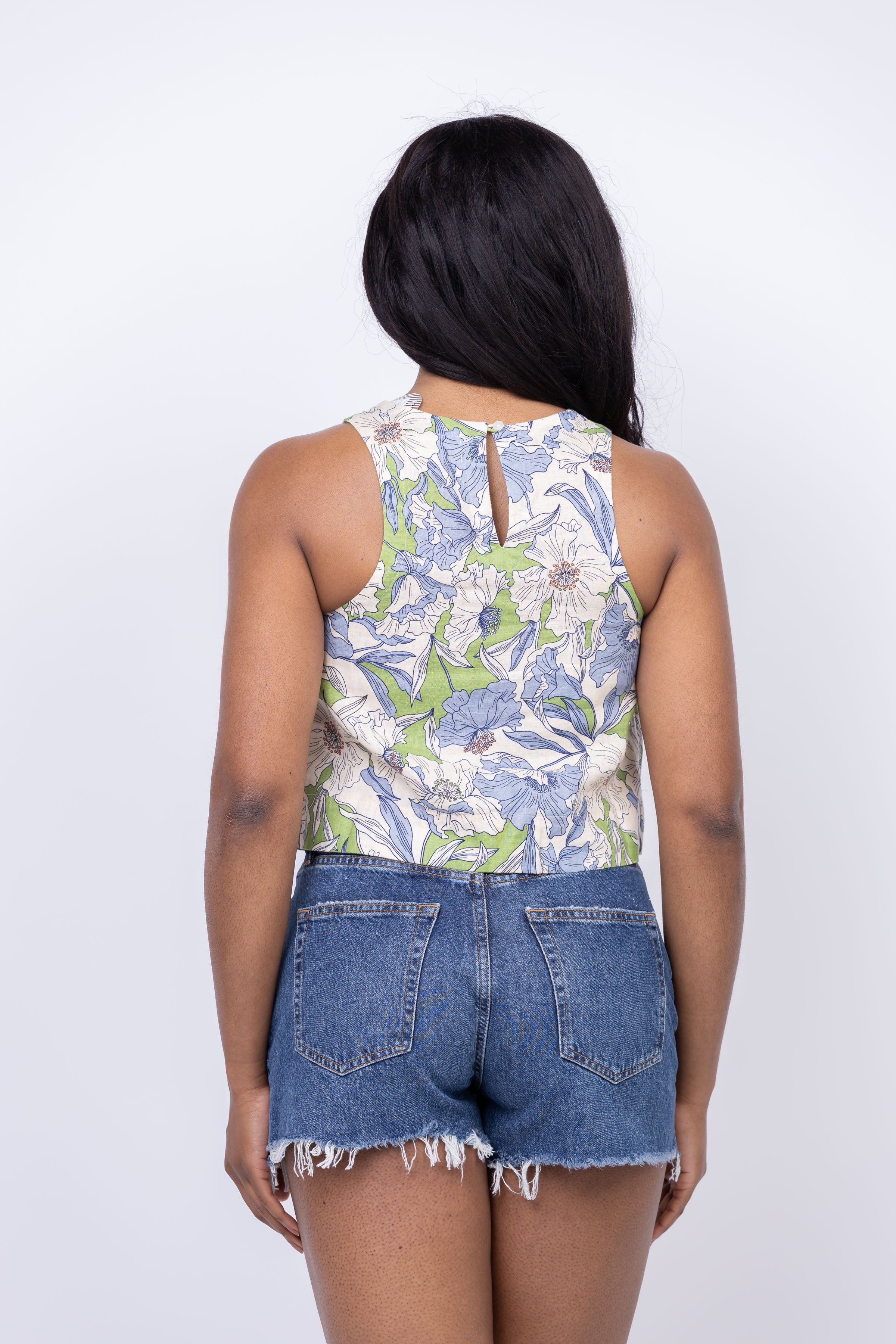 Experience summer in style with the Trovata Esther Tank in Oasis Floral. This modern yet classic tank features a rounded neckline, buttoned back closure, and bust darts for a streamlined silhouette. Made from lightweight Trovata linen, it's perfect for warm weather and can be worn as part of a matching set or paired with loose jeans for a relaxed, polished look. Feel effortlessly chic all season long!