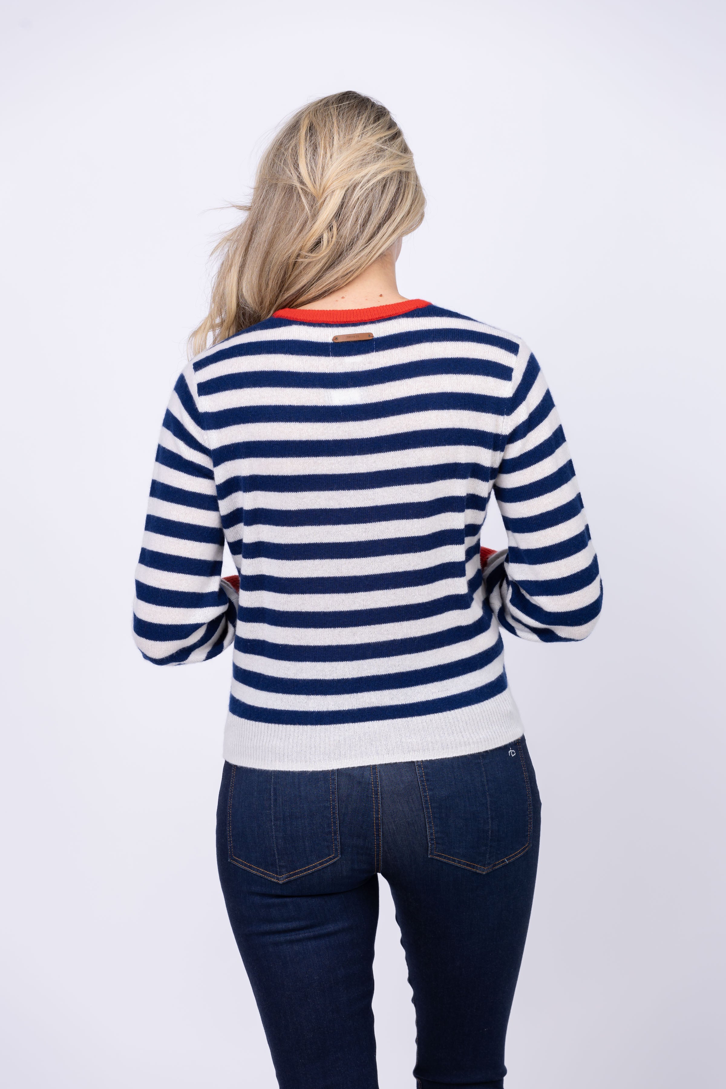 Stay cozy and stylish all year round with the Trovata Ryann Sweater in Navy Stripe Red. Made from soft cashmere, this lightweight crew neck is perfect for any season. Don't miss the fun color combo of navy and red.