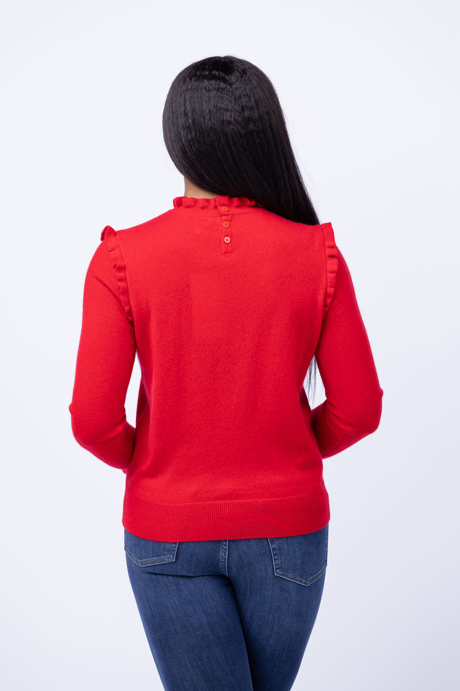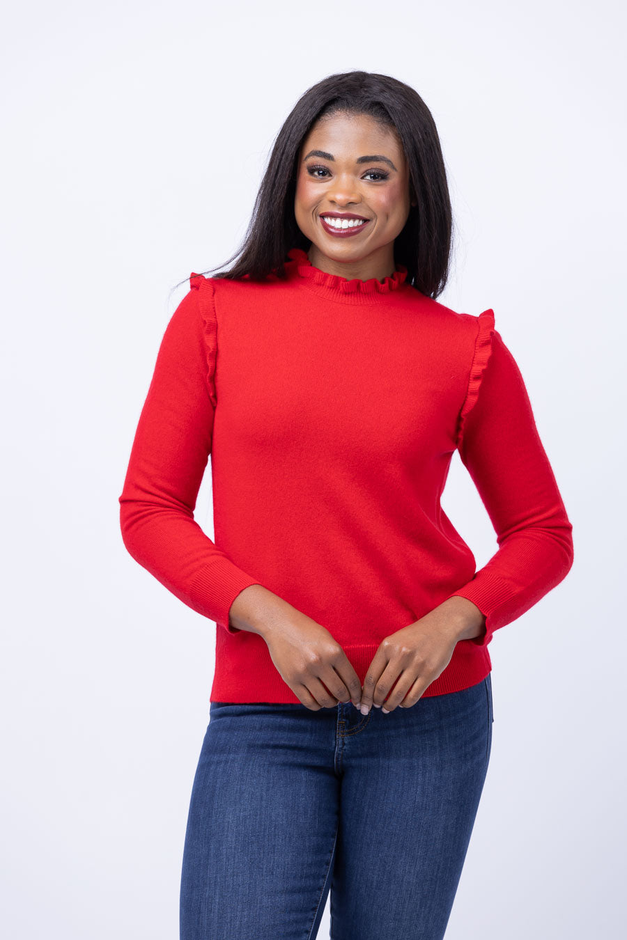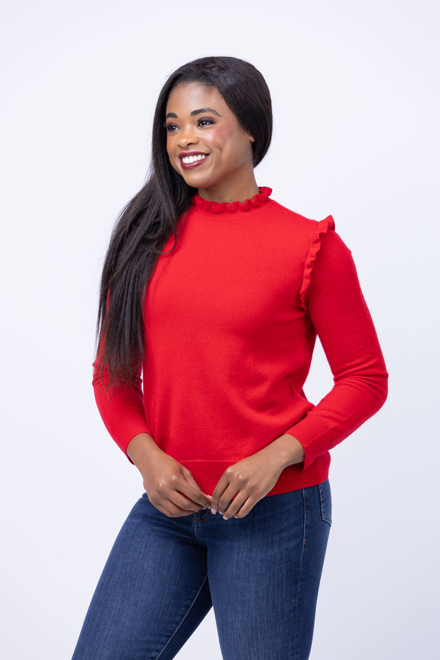 tyler boe Cashmere Ruffle Neck in Bright Red
