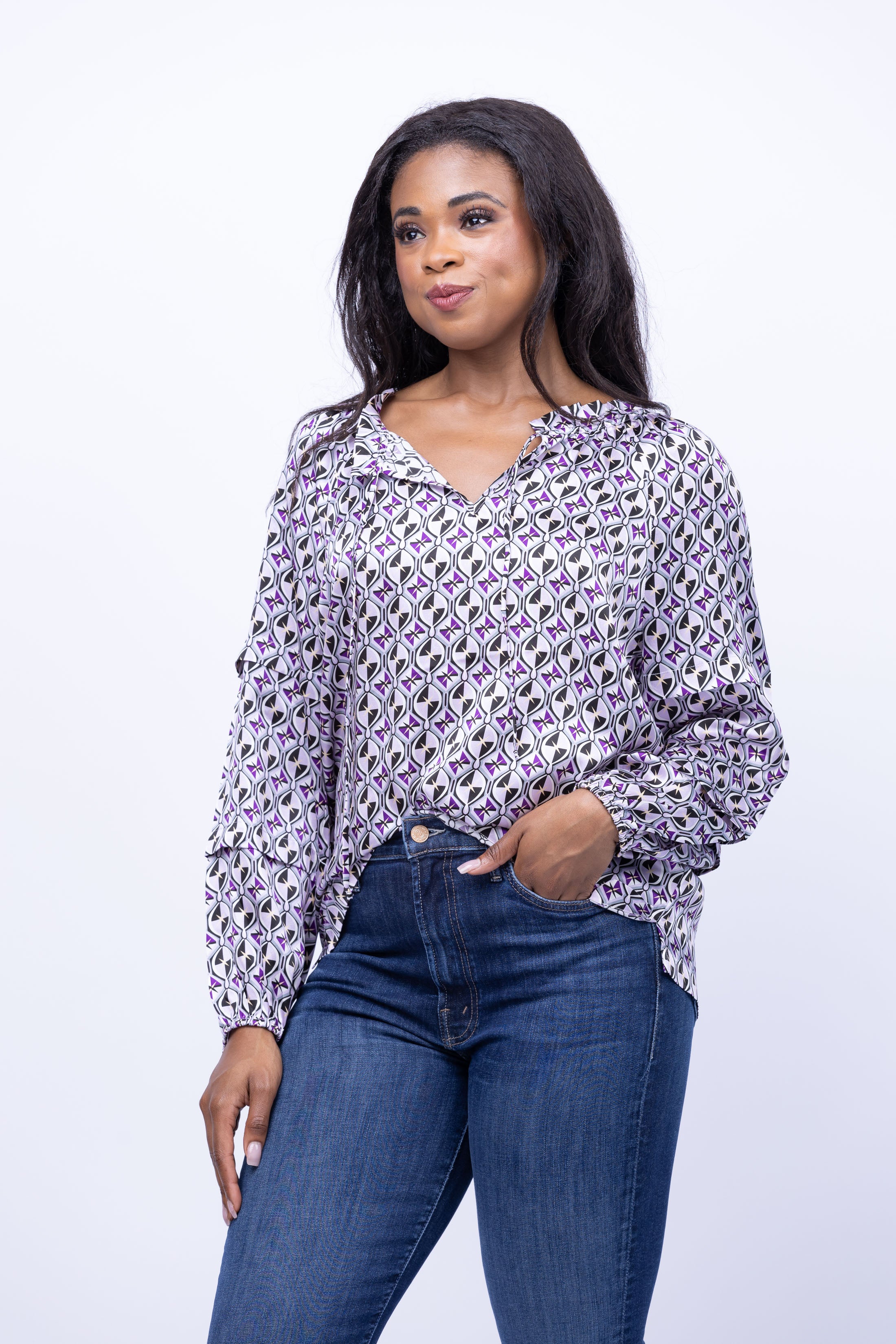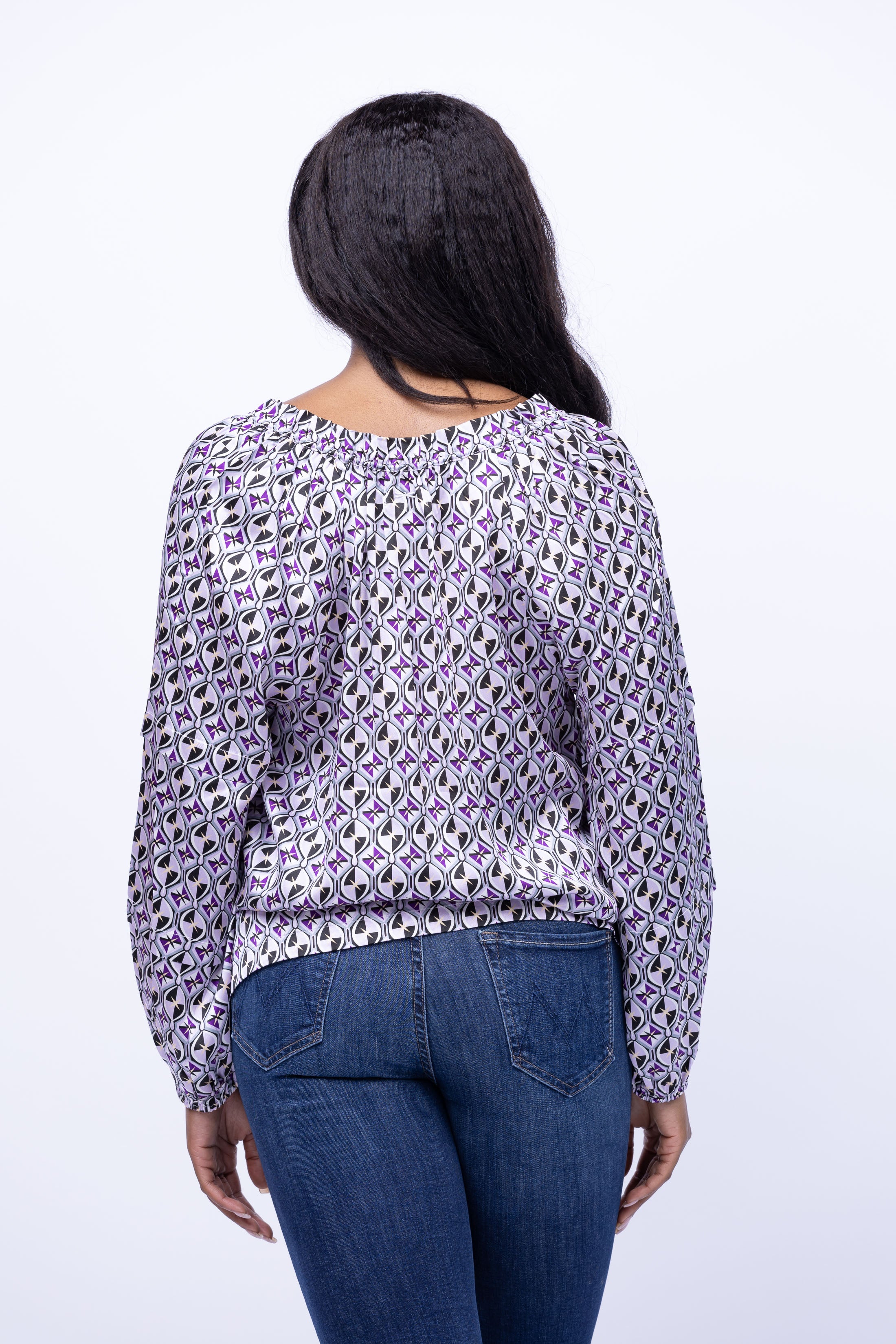 This Tyler Boe Dorothy Charm Geo Top is an instant classic. Crafted with luxurious silk, it's a timeless wardrobe staple that will upgrade any outfit. Its subtle pattern adds subtle sophistication and charm, perfect for dressy and casual occasions alike. Look and feel fabulous!